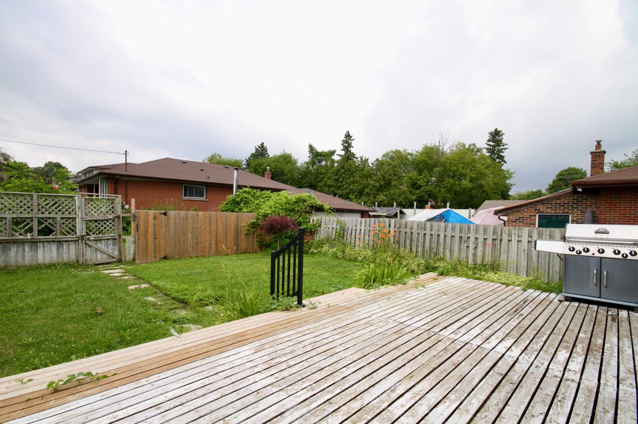 Fantastic Opportunity!! Bungalow located on oversized 40' x 120' corner lot. Very convenient driveway at rear of property on quiet side street. Great potential for detached garage. Spacious open concept living room leads from front door to the large family sized eat-in kitchen. Three spacious bedrooms round off the main floor. Downstairs you'll find 2 more bedrooms, the larger one with a 3pc ensuite washroom, and the laundry room. Outside, the yard is fully fenced with a large custom sundeck, perfect for bbqing and entertaining. Seller is installing new shingles. Buyer can select colour if purchased in time.