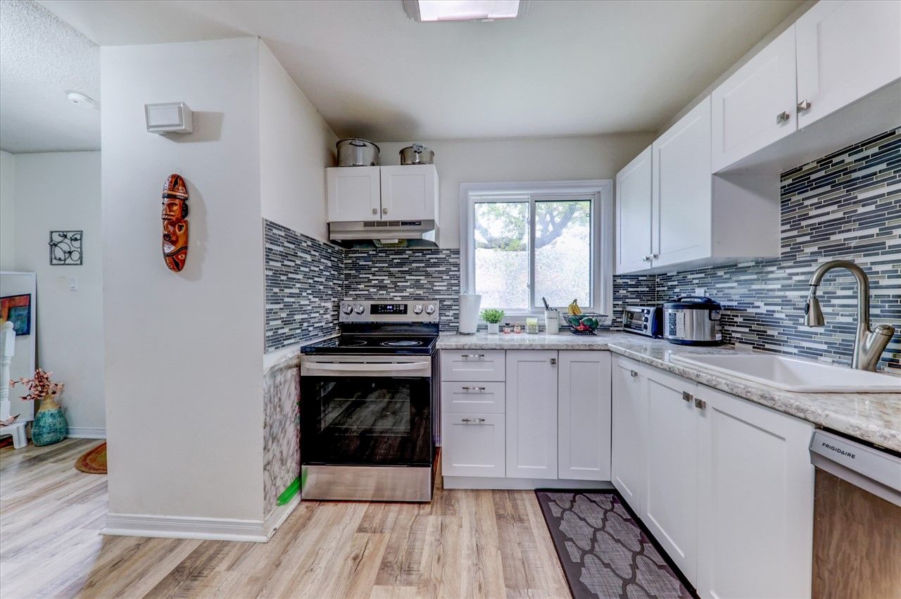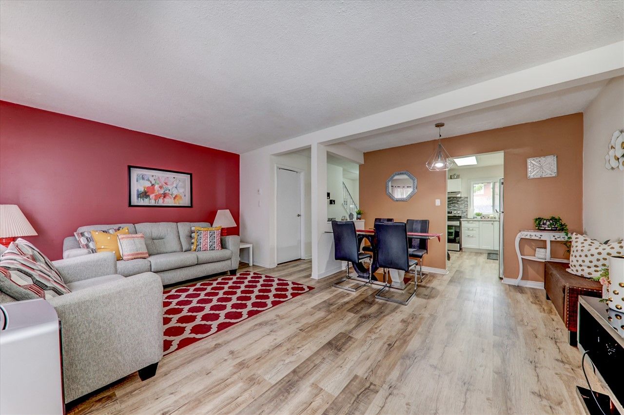 Amazing Newly Renovated Townhome Located In A Family Friendly Area Of Central Oshawa. Move-In Ready With Large Principal Rooms. Completely Renovated Kitchen & Bathroom. New Vinyl Plank Flooring Throughout, Plus Many Upgrades. Enjoy Extra Living Space In Lower Level Rec Rm With 3 Pc Bath. Main Floor Features W/O To Fenced Yard With Open Concept Living/Dining Rm. Main Fee Incl: Snow Removal And Lawn Cutting, Minutes To 401, Go Train, Shopping, Schools, Parks, Universities And Oshawa Centre.ew S/S Fridge, Stove And Dishwasher, All New Light Fixtures, Washer And Dryer. Upgrades: Vinyl Plank Flooring(2021), Kitchen (2021), Windows(2016) Electrical Panel (2015), Oak Staircase, Freshly Painted Throughout, Rental Gas Hwt.