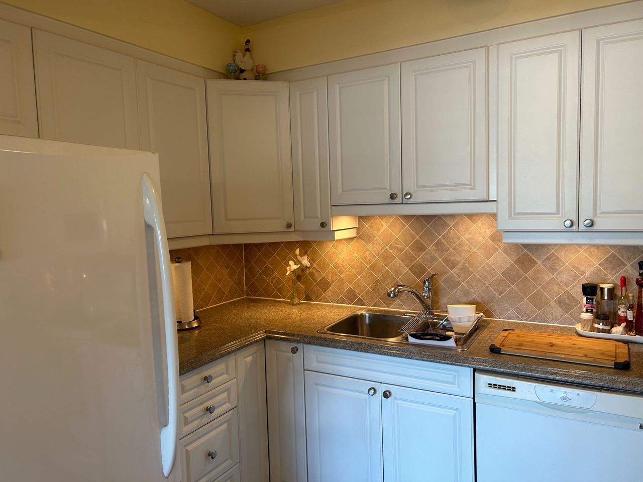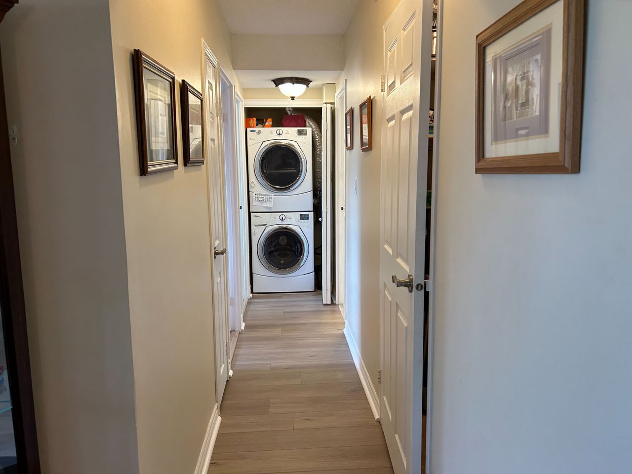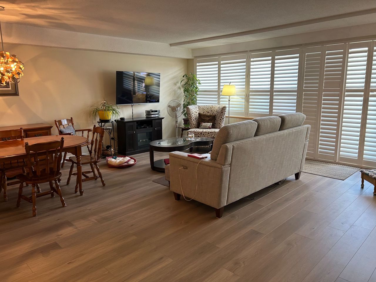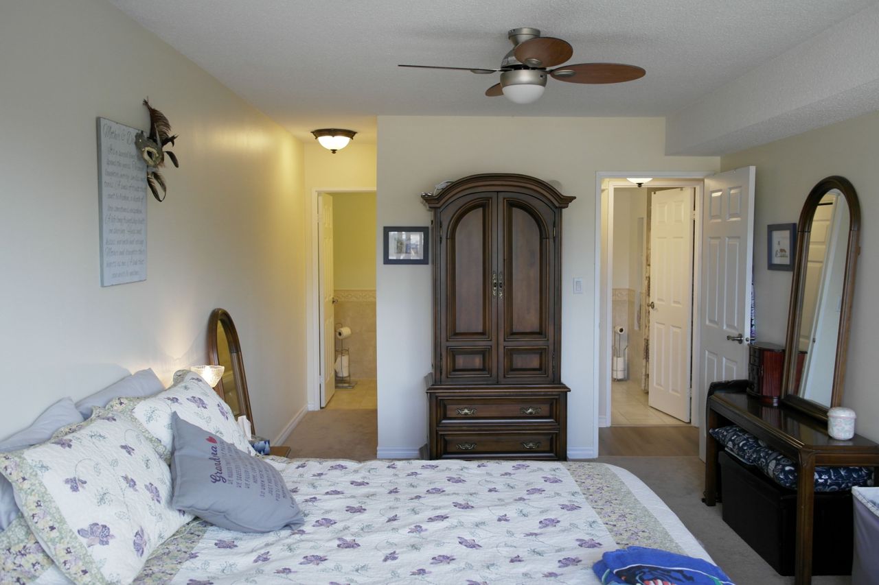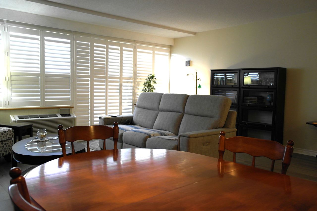 Fabulous kitchen with under cabinet lighting, double sinks, pot drawers and oversize pantry. Spacious LR/DR has recently installed lux vinyl flooring(9/22) & California Shutters. Updated main bathroom has heated porcelain tile floor and therapeutic air jet tub. Large master bedroom has updated 2pc ensuite and W/O to 2nd private balcony. 800 series doors thru out, extra insulation in outerwalls and large W/I storage room. High-speed BellFIBE internet/cable