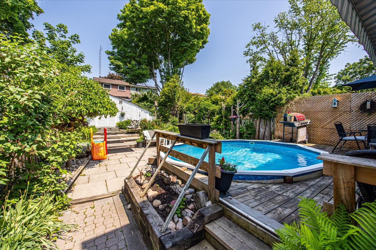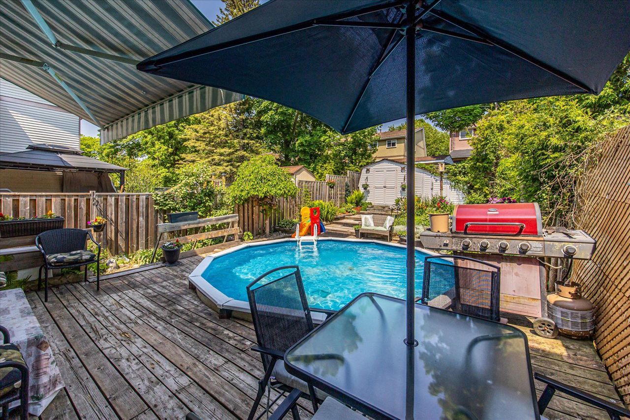 Offers Anytime! This wonderful 3 bedroom semi-detached home located in a family friendly neighbourhood is a perfect move-in ready home! It has a newly renovated eat-in kitchen with stainless steel appliances and Living Room with crown moulding and large bay window allowing tons of natural light. Upstairs you'll find 3 good sized bedrooms & 4 piece bathroom. Basement is finished to give you extra space for whatever you need! The backyard has a good sized above ground heated pool, lots of space for entertaining and trees/gardens for extra privacy! This home is ready for your personal touches and just waiting for your enjoyment this summer!Near Schools, Parks, Shopping, Transit, 401/407, Walking Path.