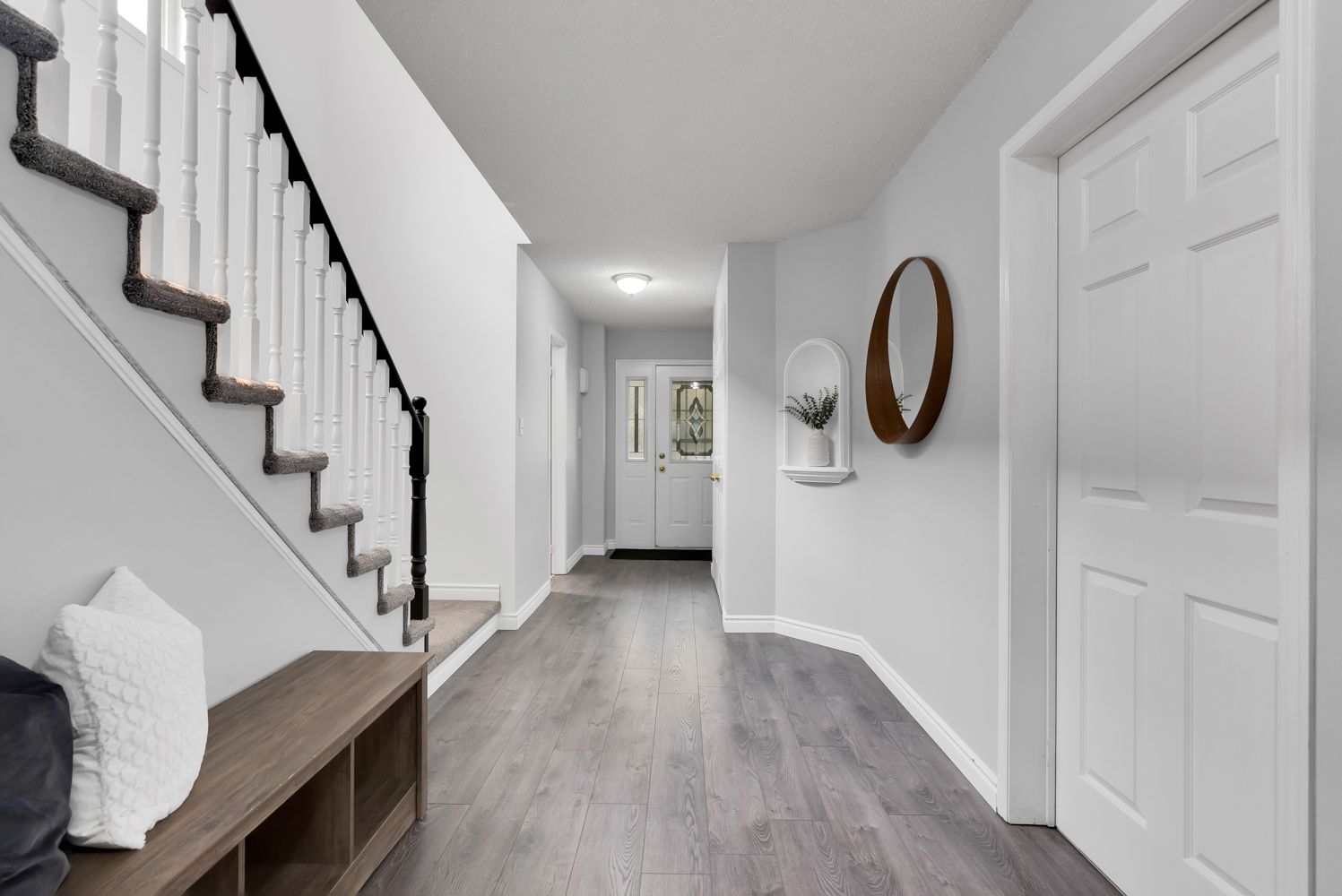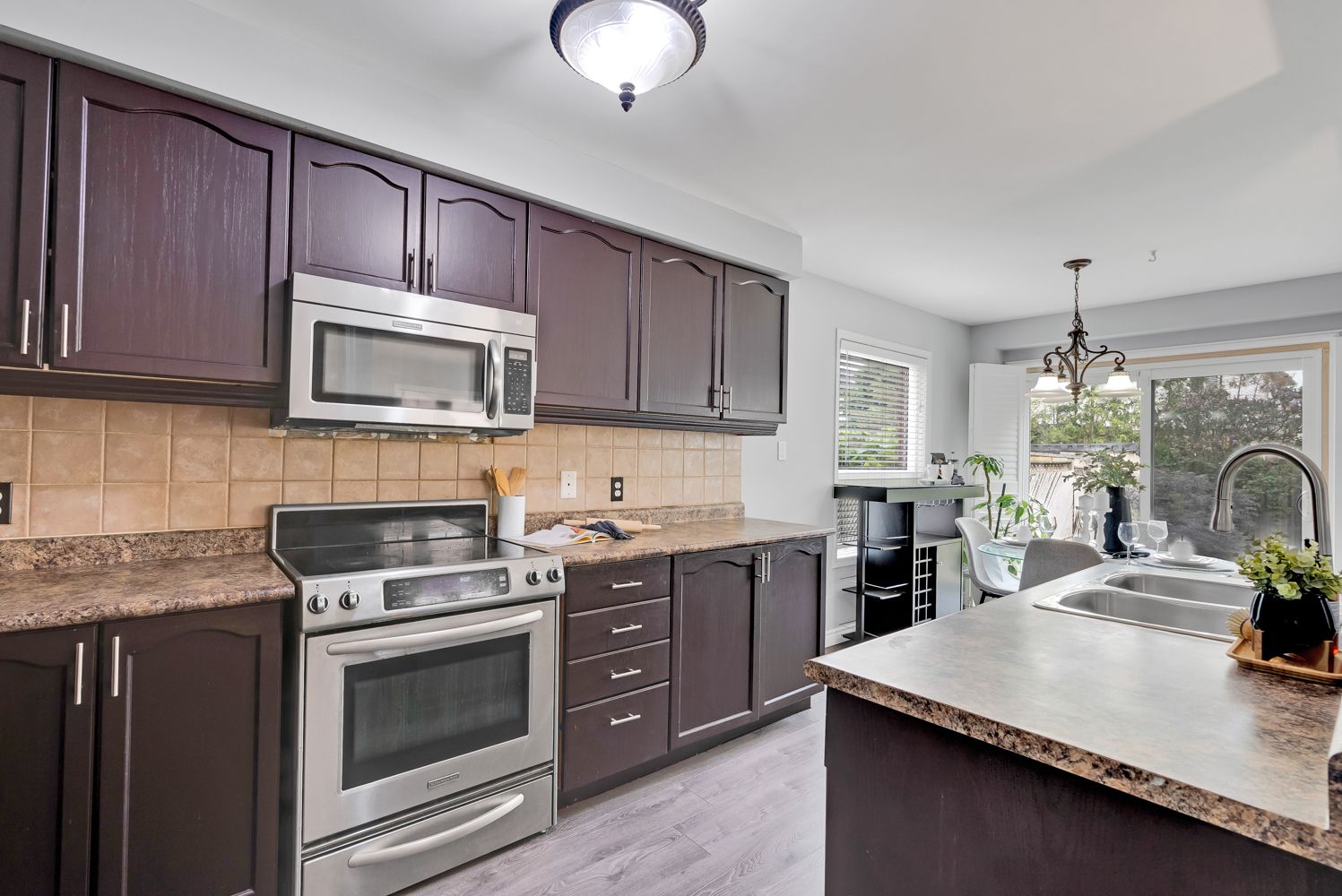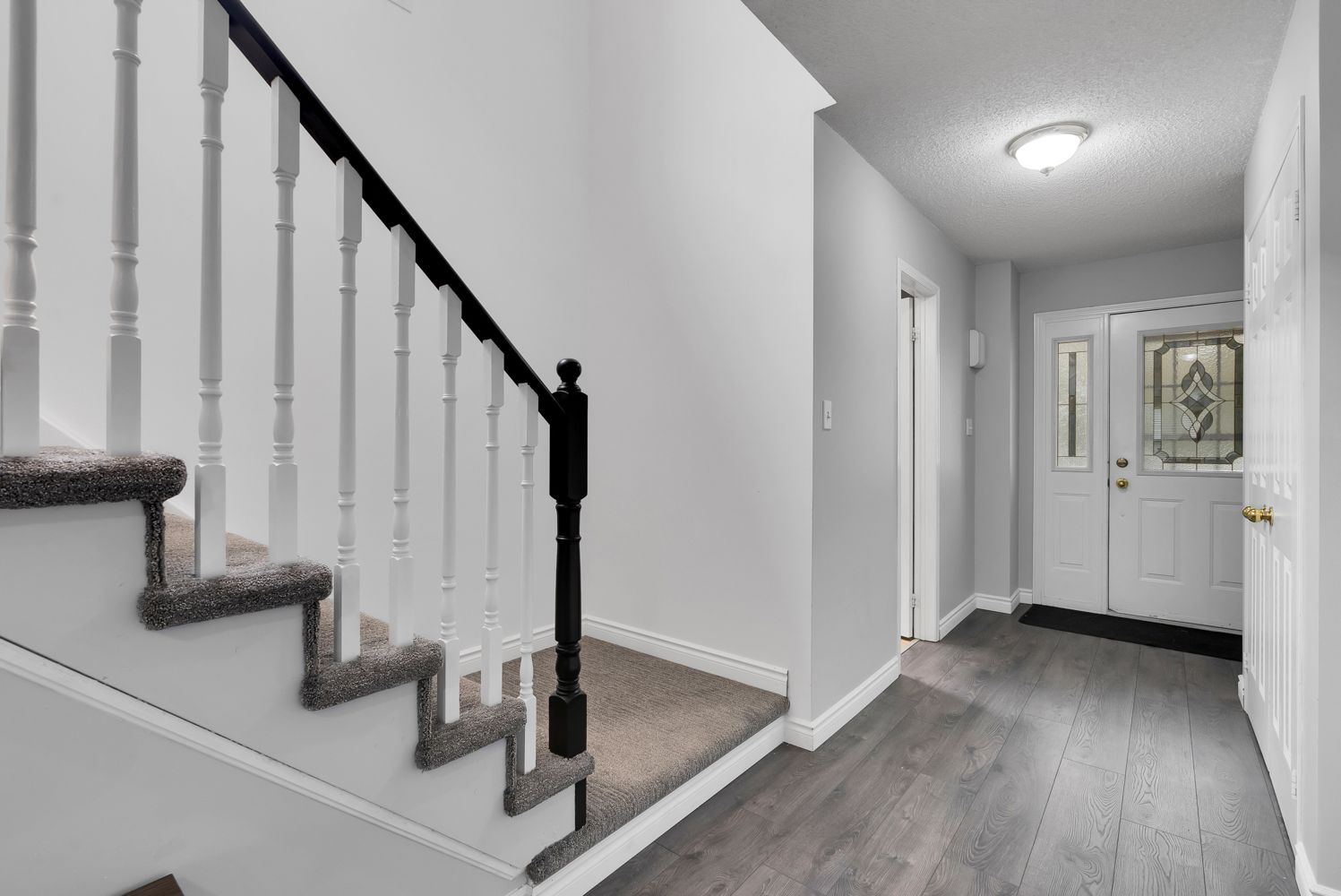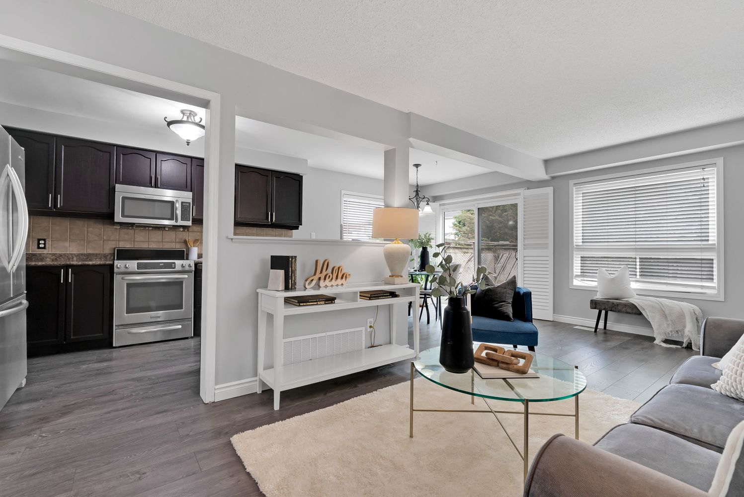 You would never know this beautiful home was a Townhouse! Spacious end unit has room for the whole family. Main floor foyer opens up to bright open concept living room with fireplace, eat-in kitchen with stainless steel appliances, plenty of cupboard space, and walk-out to backyard, with gate access. Upstairs features 3 well-appointed bedrooms, including a very large primary bdrm with walk in closet and 4pc ensuite. Basement features a tastefully finished in-law suite complete with open kitchen, ss appliances, 3pc bath and large bedroom.Upgrades include: Fresh paint throughout (2023), Carpet on stairs (2023), Main & upper flooring (2022), Basement renovation (2017)