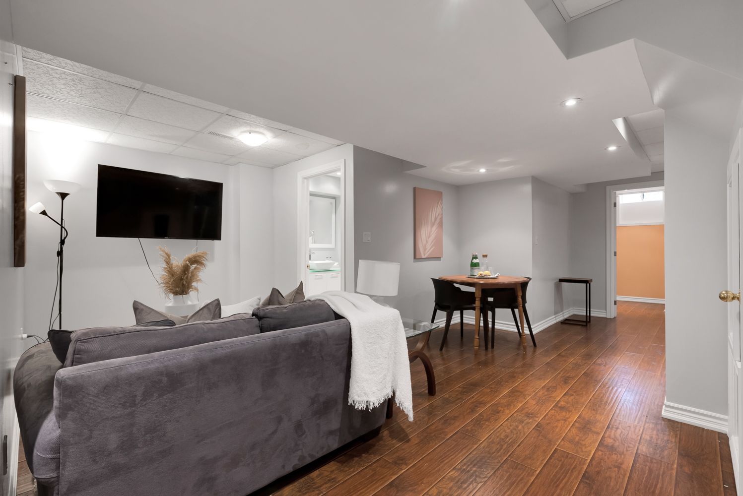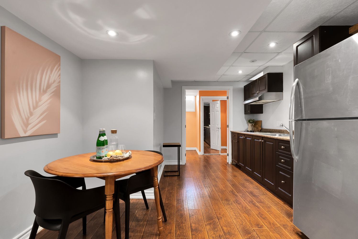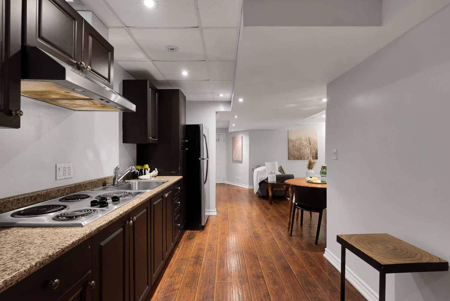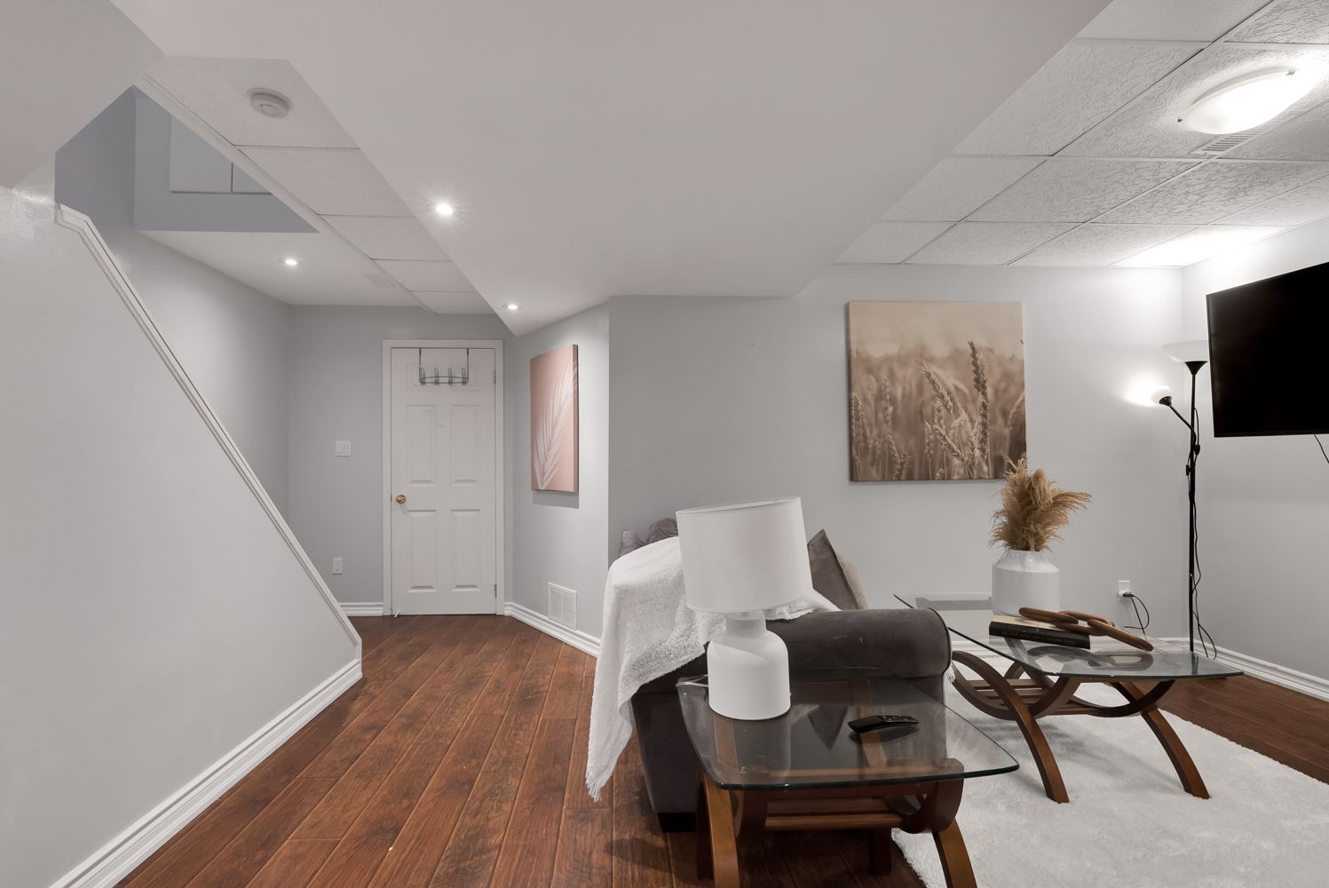 You would never know this beautiful home was a Townhouse! Spacious end unit has room for the whole family. Main floor foyer opens up to bright open concept living room with fireplace, eat-in kitchen with stainless steel appliances, plenty of cupboard space, and walk-out to backyard, with gate access. Upstairs features 3 well-appointed bedrooms, including a very large primary bdrm with walk in closet and 4pc ensuite. Basement features a tastefully finished in-law suite complete with open kitchen, ss appliances, 3pc bath and large bedroom.Upgrades include: Fresh paint throughout (2023), Carpet on stairs (2023), Main & upper flooring (2022), Basement renovation (2017)