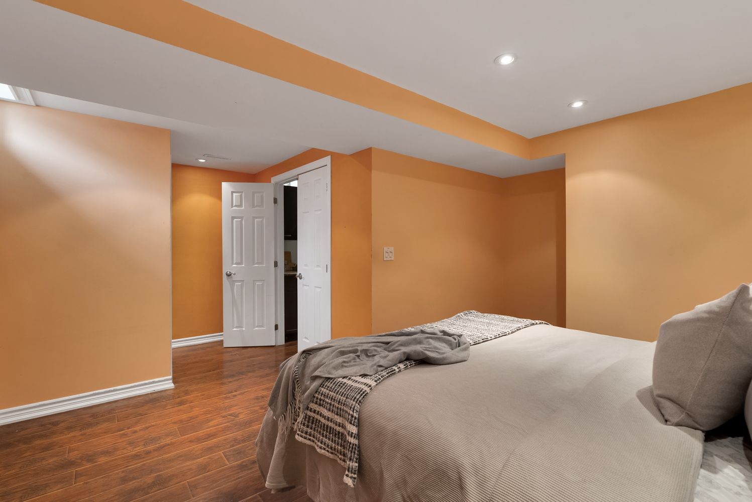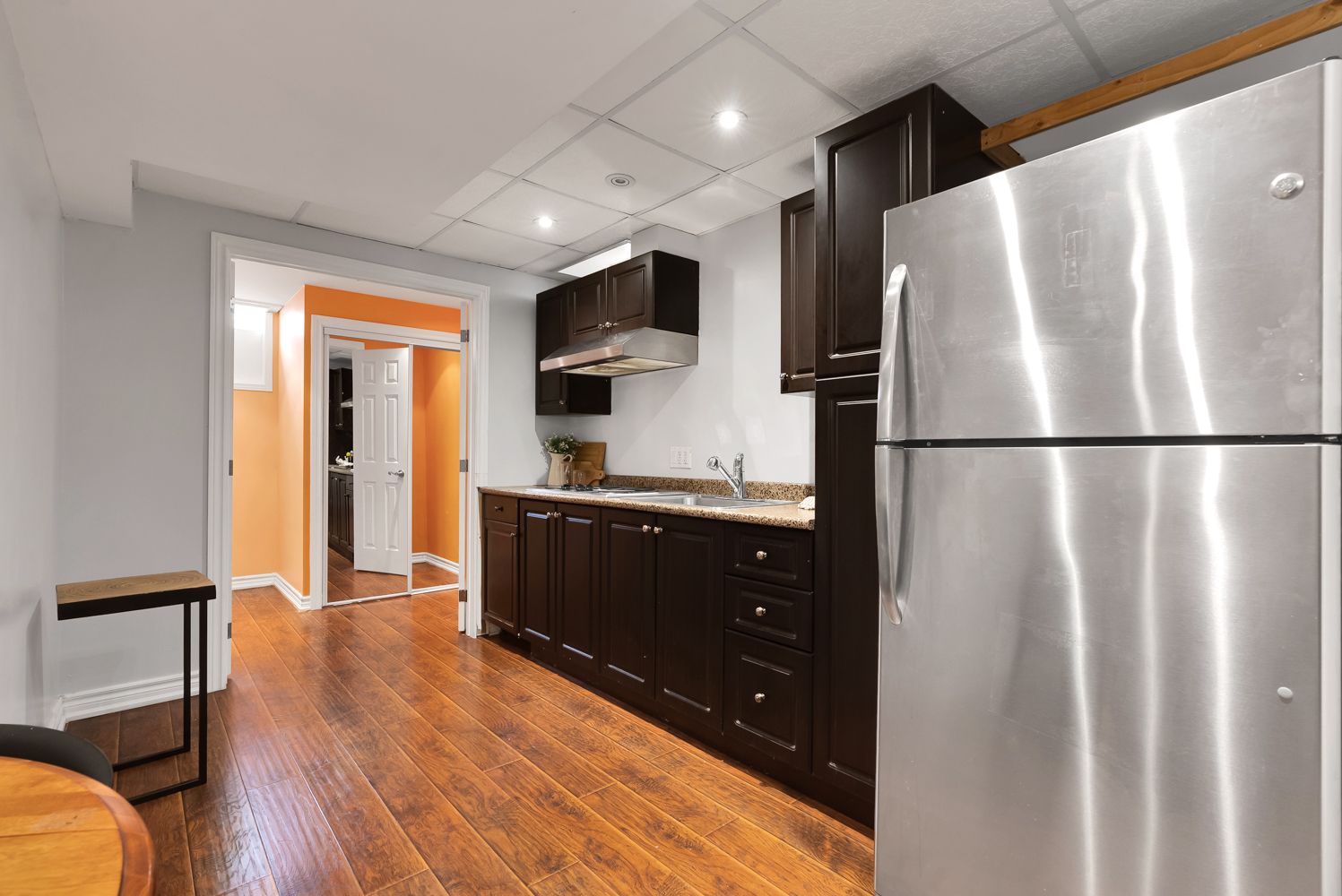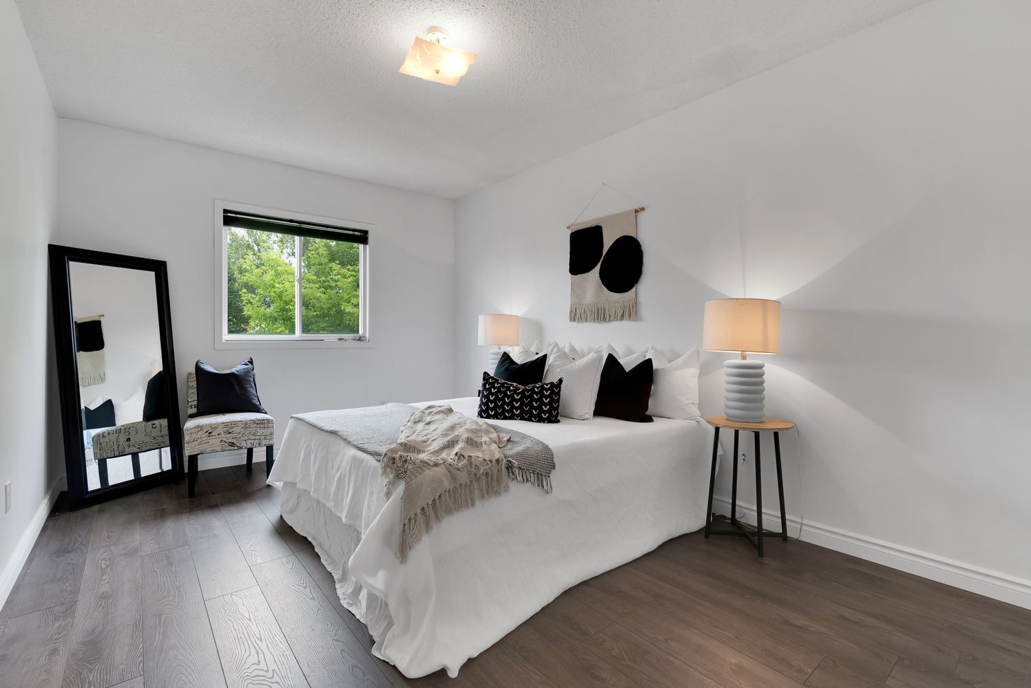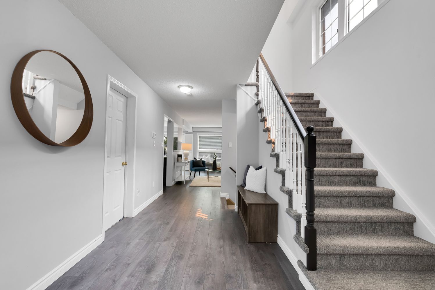 You would never know this beautiful home was a Townhouse! Spacious end unit has room for the whole family. Main floor foyer opens up to bright open concept living room with fireplace, eat-in kitchen with stainless steel appliances, plenty of cupboard space, and walk-out to backyard, with gate access. Upstairs features 3 well-appointed bedrooms, including a very large primary bdrm with walk in closet and 4pc ensuite. Basement features a tastefully finished in-law suite complete with open kitchen, ss appliances, 3pc bath and large bedroom.Upgrades include: Fresh paint throughout (2023), Carpet on stairs (2023), Main & upper flooring (2022), Basement renovation (2017)