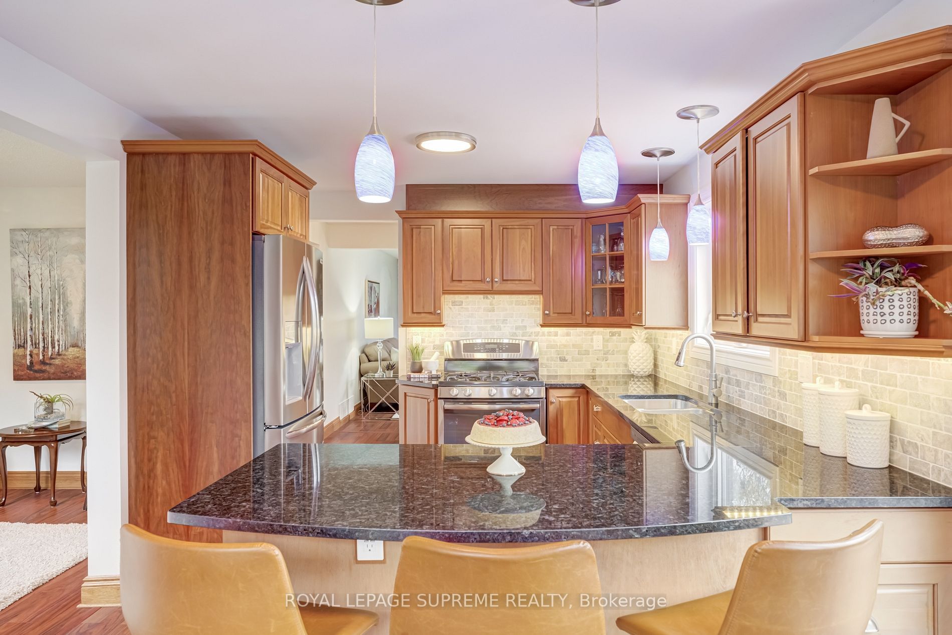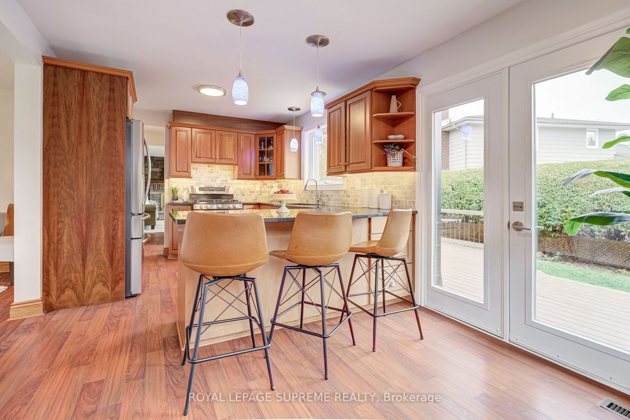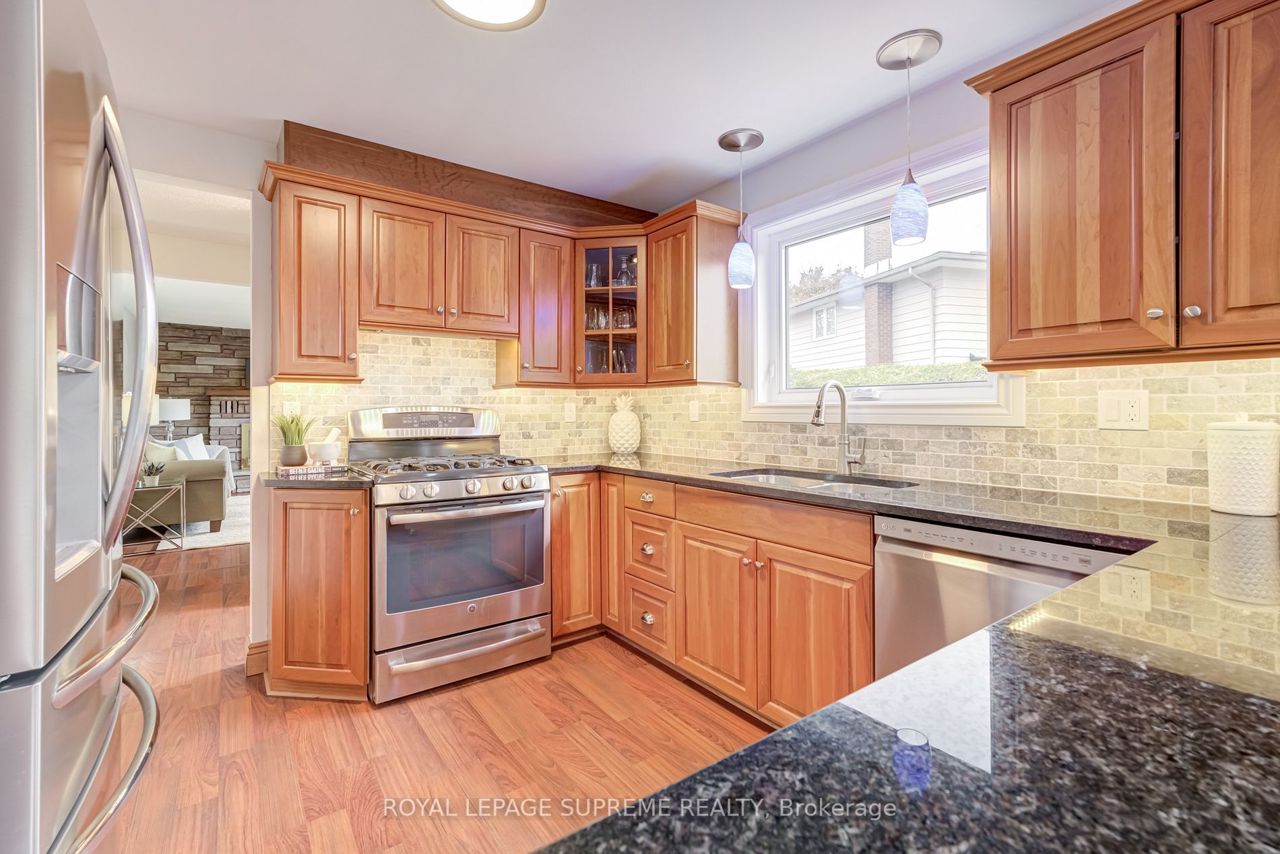 Introducing a stunning detached home in the desirable Eastdale neighborhood. This meticulously maintained detached home, built in 1982, exudes timeless elegance and offers a unparalleled living experience. Nestles on a tranquil cul-de-sac, this property boasts a generous irregular lot with an impressive 66' frontage, providing ample space and privacy. Recently renovated kitchen and bathrooms in 2021. Granite countertops add a touch of opulence, creating a culinary haven for the aspiring chef. Indulge in the comforts of the full rec room, with a cozy gas fireplace, perfect for unwinding after a long day or entertaining guests. The cantina/cold room offers a practical storage solution. The front and backyards have been professionally landscaped, creating a picturesque setting for outdoor activities and relaxation. Dog walkers & hikers will love the proximity to CLOCA lands just steps away. Come and experience the charm of this special Eastdale residence.Soundproofed basement ceiling, 200 amp electrical service, plenty of storage, roof reshingled approx.2015