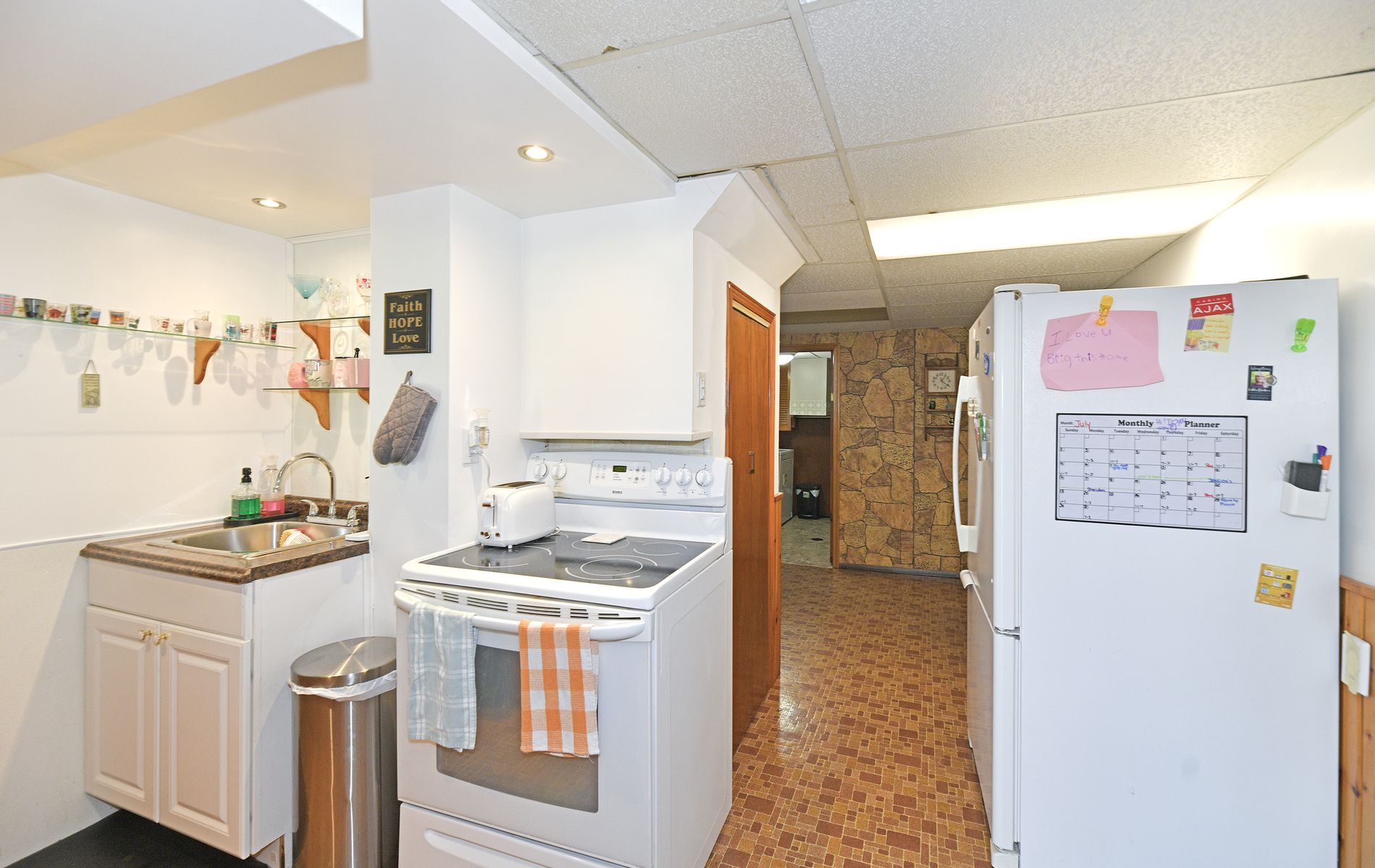 Charming bungalow situated on an extra large 45 foot by 223 foot lot, backing onto a park. Same owner since 1965. Main floor boasts a large kitchen/dining area with ample cupboard space and built in dishwasher, cook top stove and built in convection/microwave oven. There is a spacious separate living room with a large bay window, three good sized bedrooms and a four piece washroom. There is a side entrance leading upstairs and to the basement. Basement features a large laundry room combined with a three piece bathroom. Large bedroom with above grade window and laminate flooring. Also, a full kitchen with sink and breakfast bar as well as a massive living room with gas fireplace and sliding glass walkout to patio and deck. Open concept hallway with extra storage as well as a separate workroom/furnace room. Carport and extra long and wide driveway will provide sufficient space for up to 6 cars.Roof was reshingled in 2021. Central air 2021. New retaining wall in 2022. Property has central vac. Patio done in 2022. Gas BBQ hookup under the carport. Newer windows throughout.