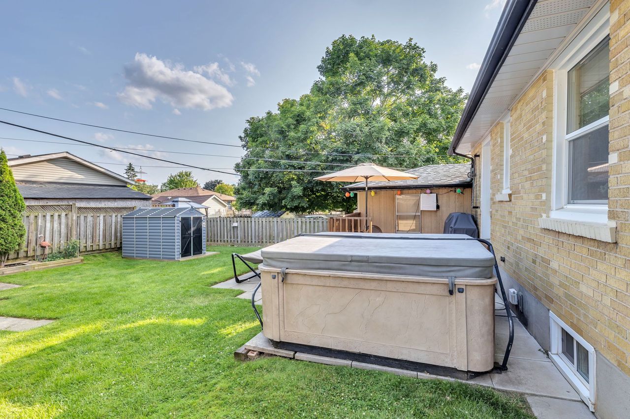 Cozy 3 bedroom bungalow close to lake and walking trail. Fenced in backyard with shed, hot tub & deck! This home has recent updates such as, windows 2015, new shingles 2019, a/c 2020, furnace 2019 and hot water tank 2017. Just move in and enjoy!