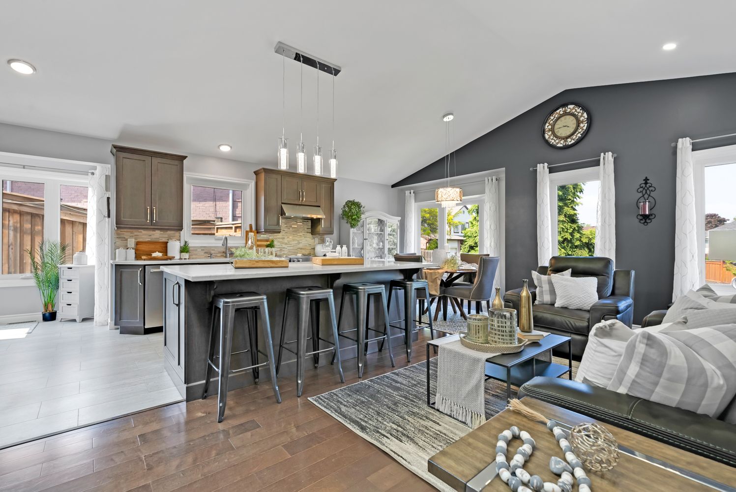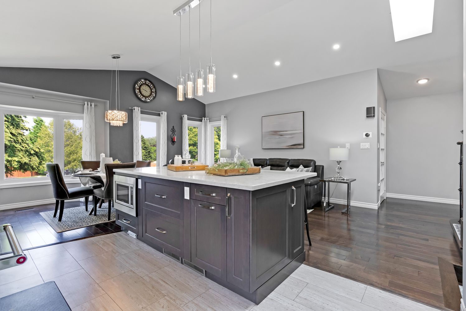 Hardwood Floor Vaulted Ceiling Open Concept