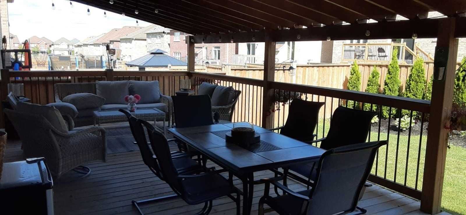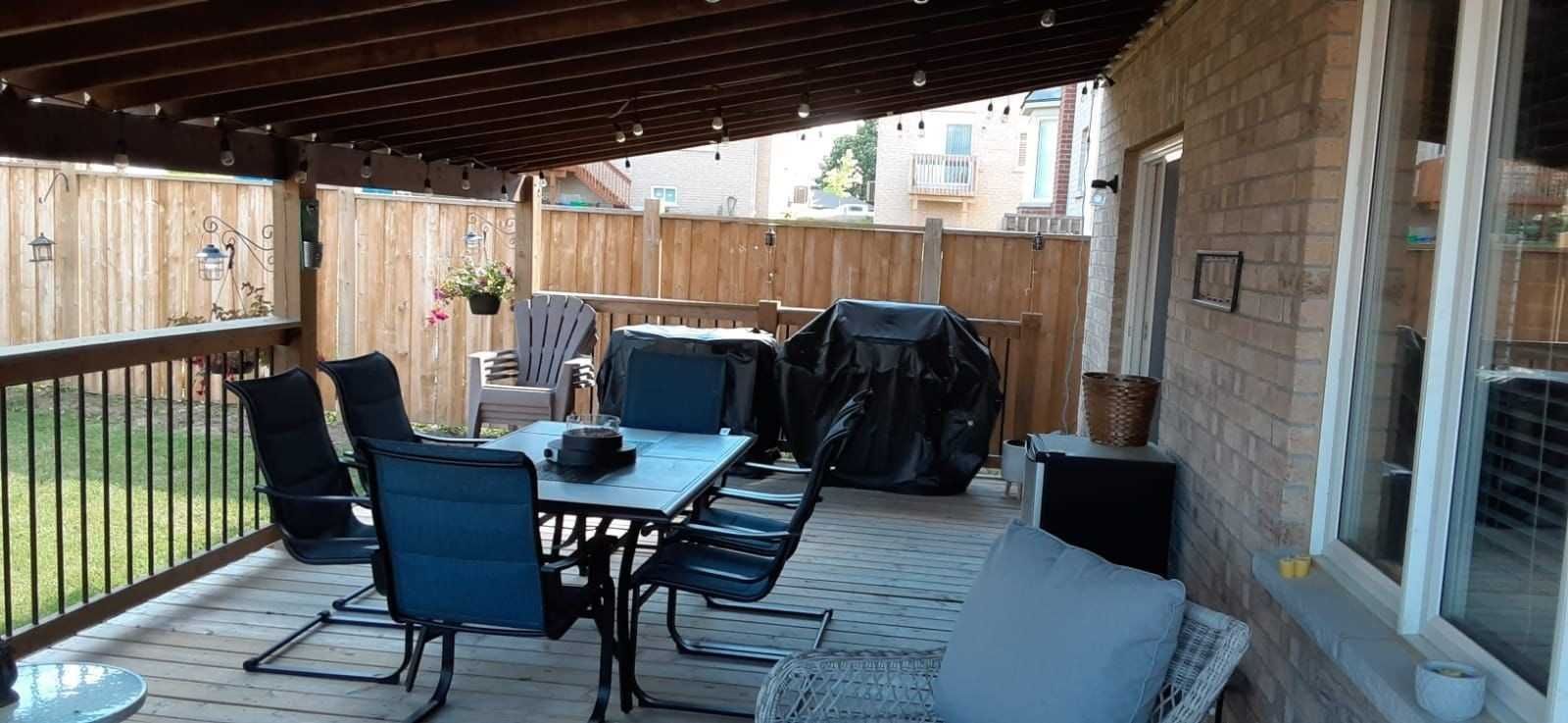 Welcome to this beautiful 5 bedroom detached all brick home. Main floor boasts hardwood, pot lights and wainscoting throughout. Kitchen comes with breakfast bar, granite countertop, S/S backsplash, S/S appliances and walkout to huge covered deck oasis. Also has 3 bedroom basement apartment with separate entrance and separate rec room to use as home gym. Walking distance to bus stop, groceries and restaurants.2 fridges, 2 stoves, dishwasher, 2 washers 2 driers, window blinds, gdo and remote, all electric light fixtures.