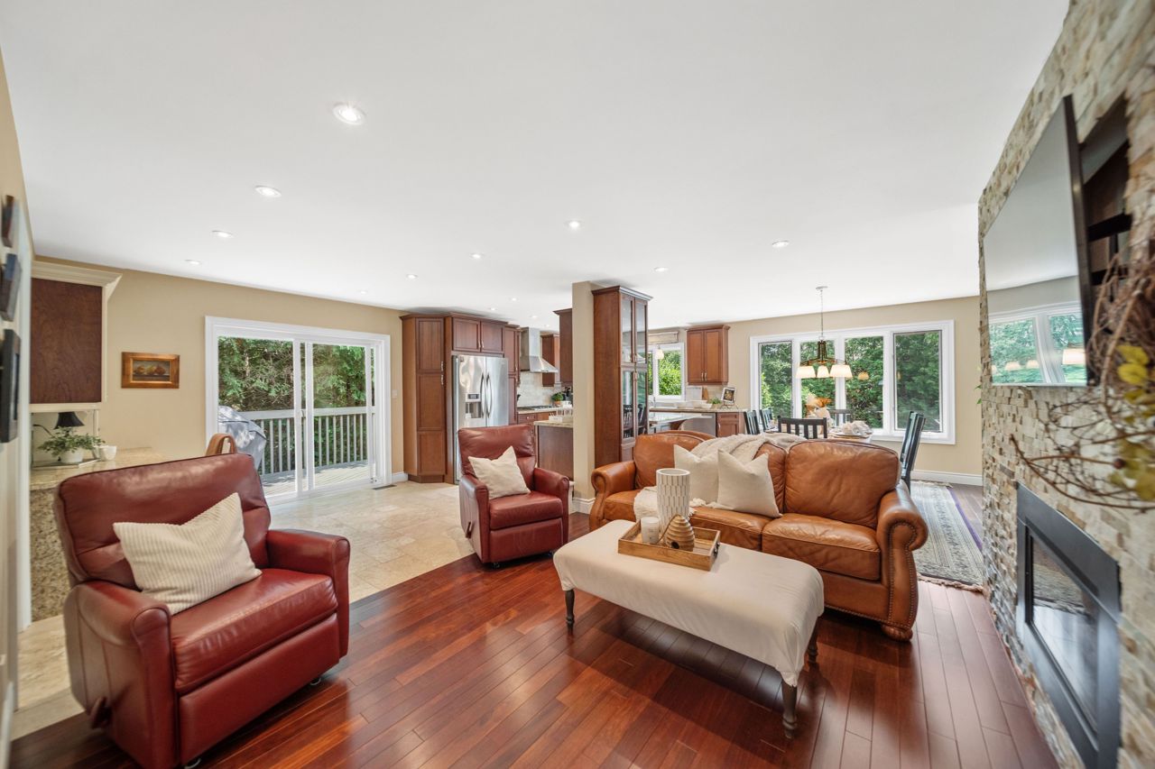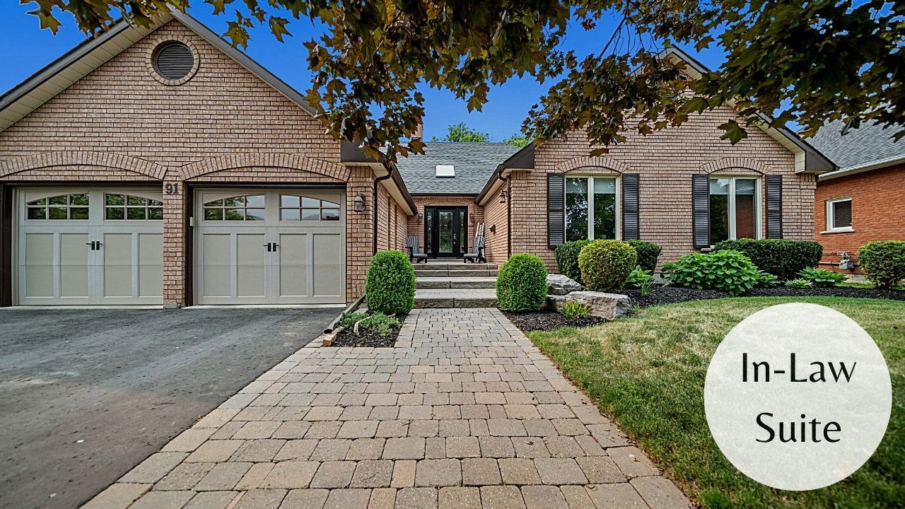 *IN-LAW SUITE* Stunning executive bungalow on quiet cul-de-sac with a 1-bedroom in-law suite. 2500+sqft main floor boasts a spacious front foyer that opens to bright family room w captivating cathedral ceilings & skylights that flood the space w natural light, creating an airy & inviting atmosphere. Complete w fp & w/o to deck, this space is designed to seamlessly connect to adjoining living & dining area providing an ideal setting for hosting & special occasions. Open concept dining/living w fireplace & gleaming hwd floors opens to beautiful modern kitchen w w/o to side deck. Spacious primary with spa-like 5pc ensuite. MF also offers 2 generous bedrooms, 3pc, 2pc, & laundry. Expansive lower level w AG windows & sep entrance features spacious 1-bed in-law suite complete w eat-in kitchen, living, 3pc & laundry access. Large rec room w fireplace, space for 5th bedroom, as well as huge storage room with potential for a second in-law space. Unwind on large deck overlooking privatebackyard oasis lined w mature trees, manicured gardens, gazebo & decorative pond. Conveniently located just mins from Durham College, shops, restaurants, parks, schools, 407 & North Oshawa amenities.