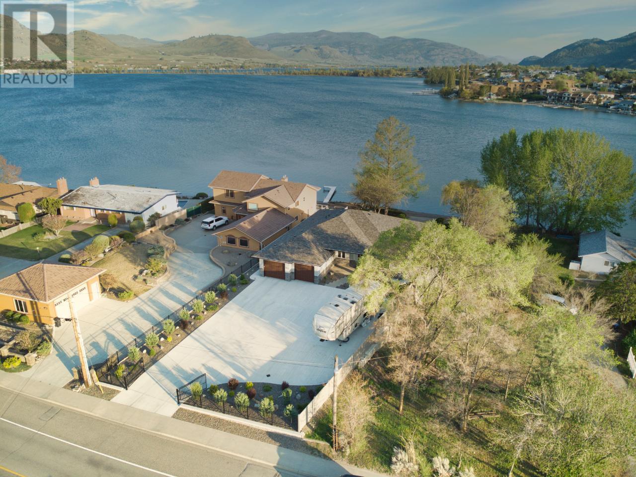 Welcome to the ultimate waterfront lifestyle! This stunning property is a dream come true for boat owners and lakefront enthusiasts. Imagine waking up every day to breathtaking views of Osoyoos Lake, with almost 100 feet of lakefront right in your backyard. Perfectly situated in the heart of downtown Osoyoos, this half-acre lot boasts almost 100 feet of lakefront and is just steps away from Main Street and all the amenities you need, a 5 min. drive to Golf and 15 min. drive to Area 27. Built in 2020, this contemporary home is practically brand new and features 5 bedrooms, 3 bathrooms, a gourmet kitchen, spacious living and dining rooms with a large deck and amazing lake views. The walk-out basement is perfect for hosting guests, with extra bedrooms, a kitchen, and a spacious rec room. You'll also love the over-sized double garage and gorgeous landscaping with underground irrigation - this property has it all! So why wait? Come and experience the ultimate lakefront lifestyle today! (id:22211)