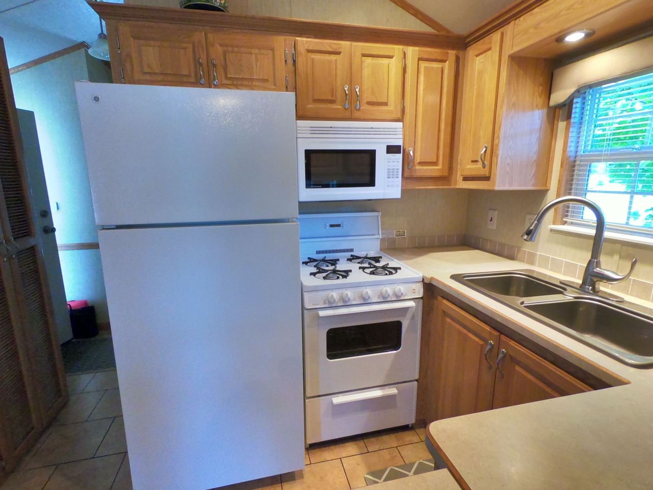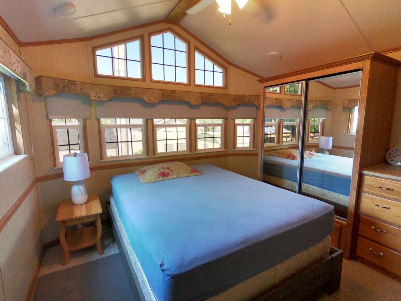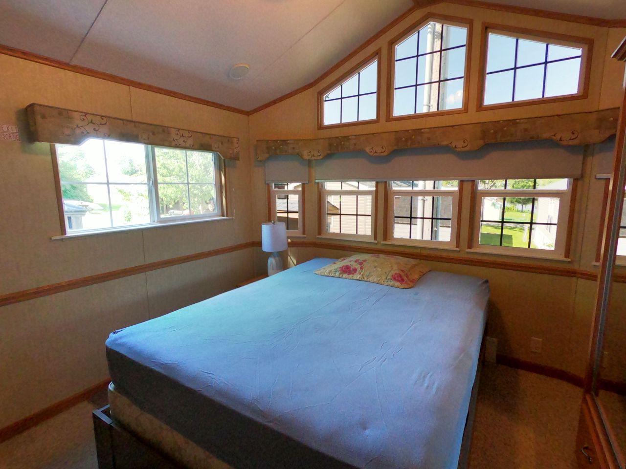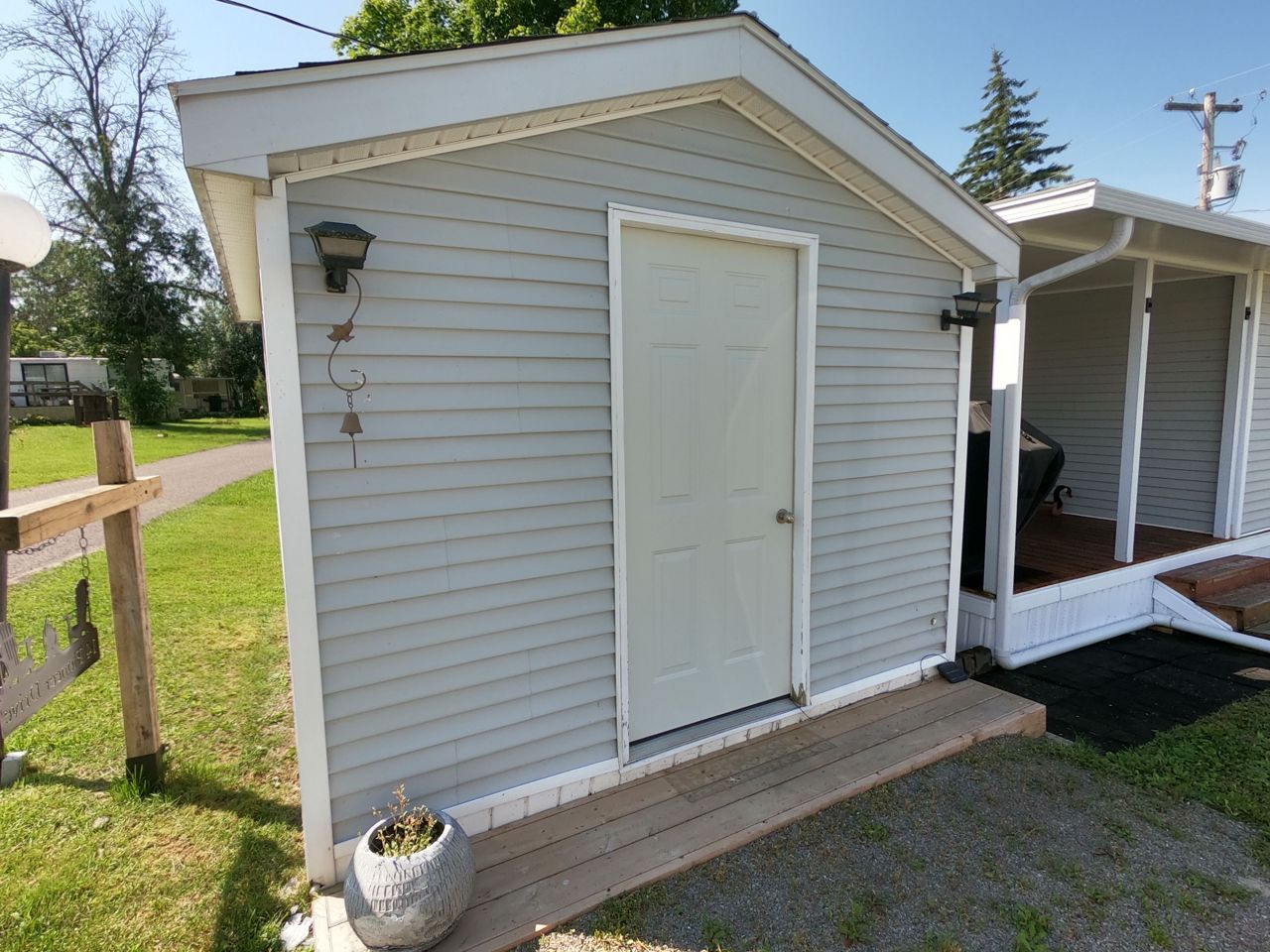 This 2 bedroom, 2 bathroom, 12 x 42 ft, 2006 spacious park model home with large 10 x 20 ft sunroom addition and walk outs to front and rear covered patio areas is meticulous and shows like brand new! Enjoy your May to October affordable home away from home in Shady Acres Park, less than 90 minutes from Toronto. Indulge in the numerous park activities or enjoy the quiet peaceful Rice Lake country life. Open concept living, dining & kitchen area with vaulted ceilings. Primary bedroom with 2 pc ensuite and plenty of storage. Guest bedroom with built in bunks. Main 4 pc bathroom. Shed. BBQ. Firepit. Enjoy the summer of 2024!