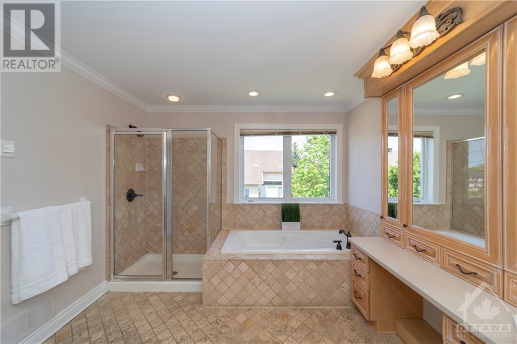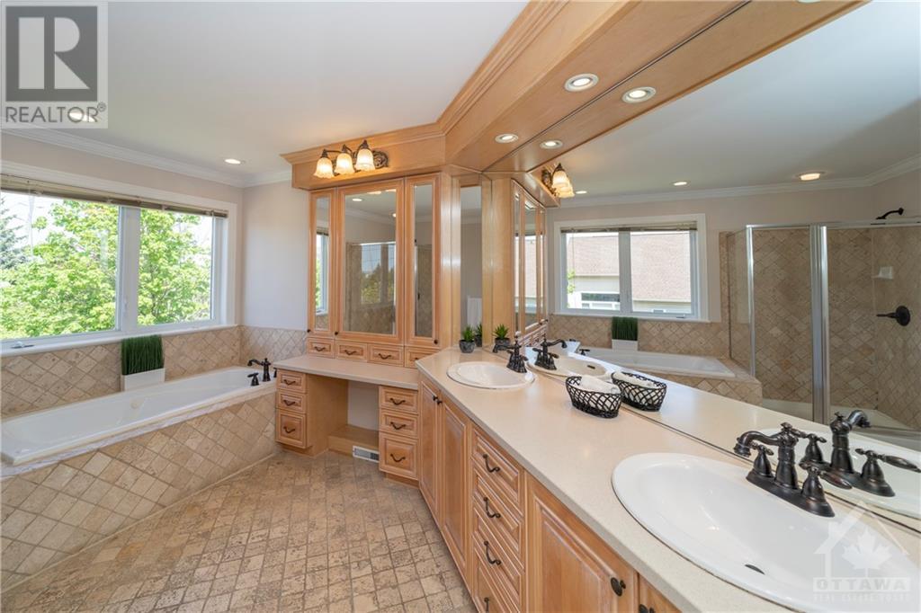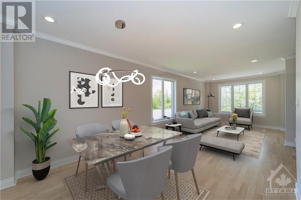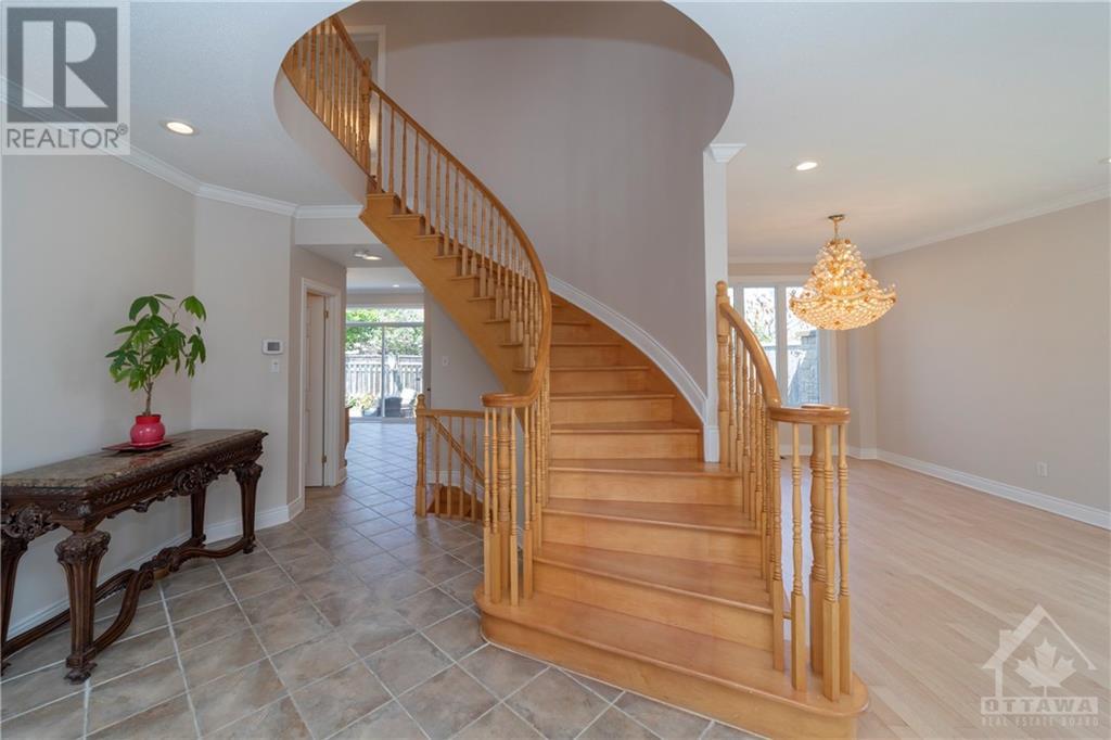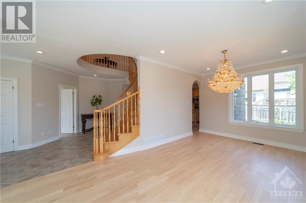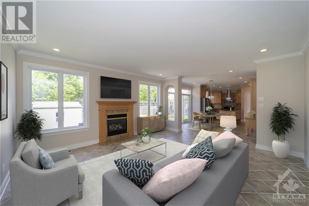 Former Minto model home was designed for family living with 4 bedrooms, 3.5 baths and a finished basement. Freshly painted in a contemporary, neutral tone, the home is filled with natural light creating a warm & welcoming atmosphere. The living/dining room is perfect for entertaining while the open-concept kitchen/family room provides a comfortable space for the family to gather. The patio door in the kitchen provides access to the backyard. The main floor office with built-in bookshelves is ideal for those who work from home. The laundry room has inside access to the two-car garage. Beautiful, curved hardwood staircase leads to the primary bedroom featuring a 2-sided gas fireplace, 5-piece ensuite & walk-in closet. Three other bedrooms & family bath complete the 2nd level. Fully finished basement with recreation rm, hobby rm & 3 piece bath. Steps to the Chapman Mills Conservation Area for nature & boating enthusiasts. Some photos are virtually staged. (id:22211)