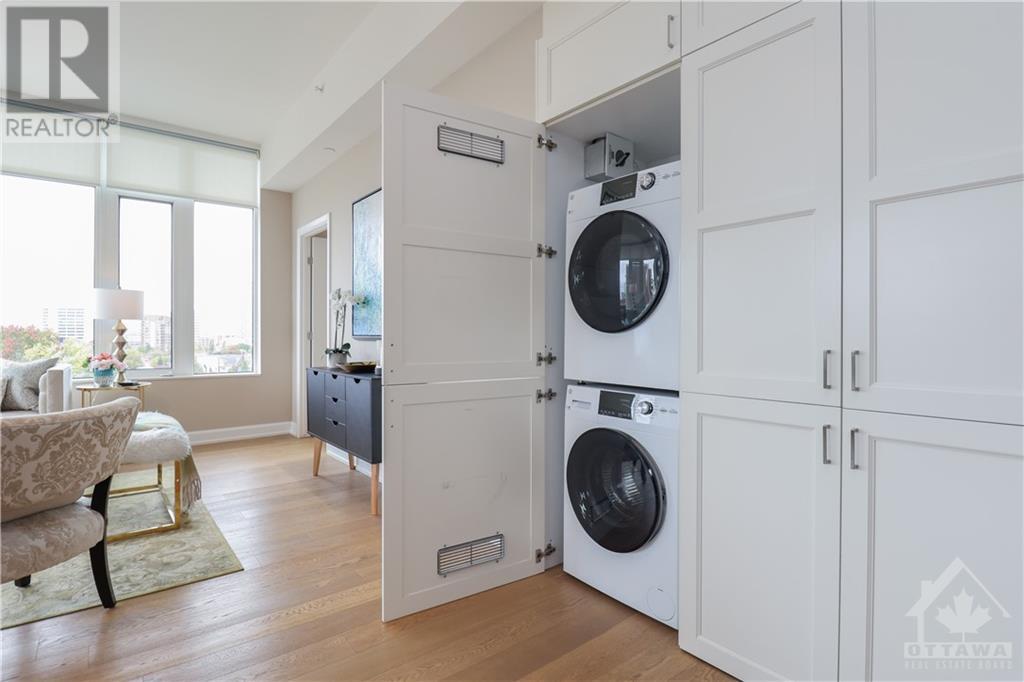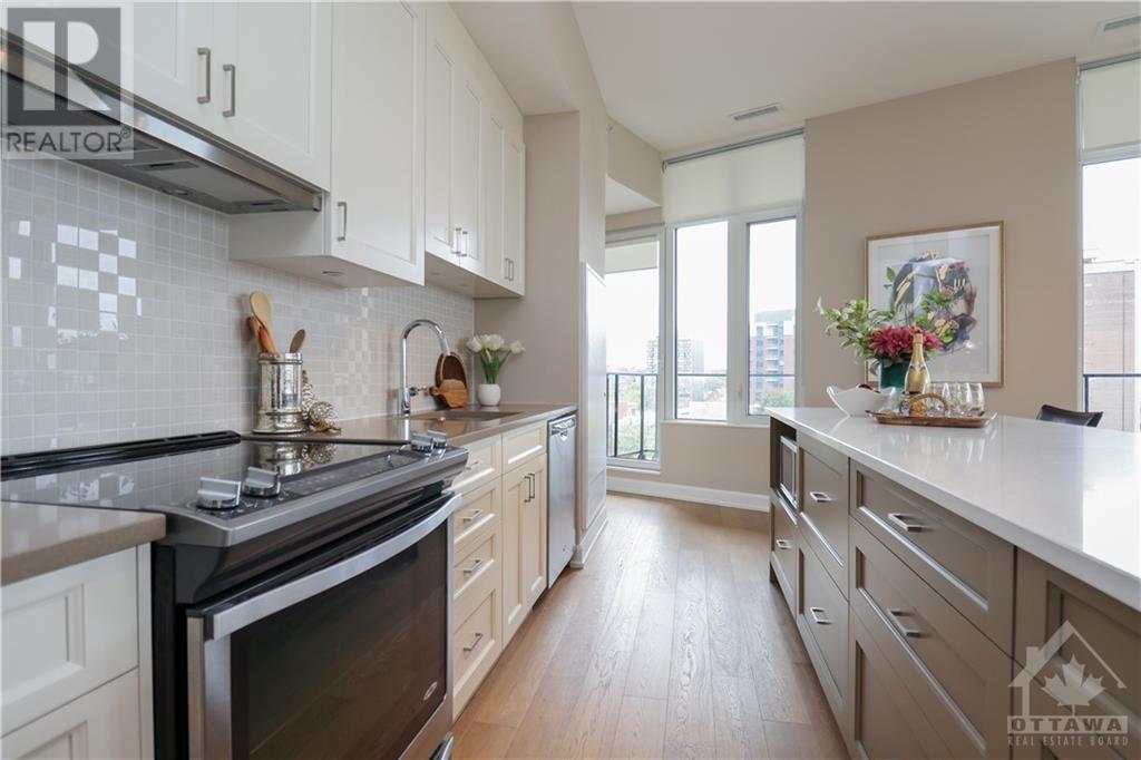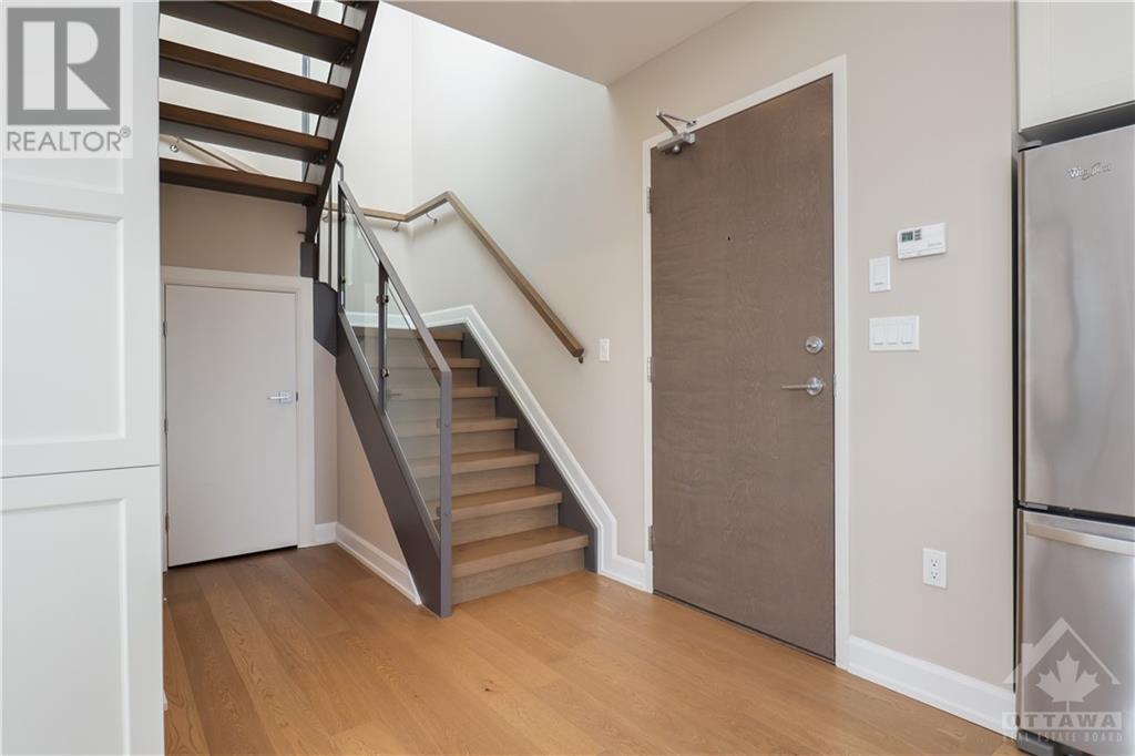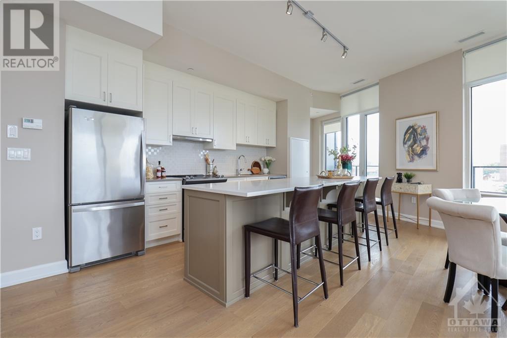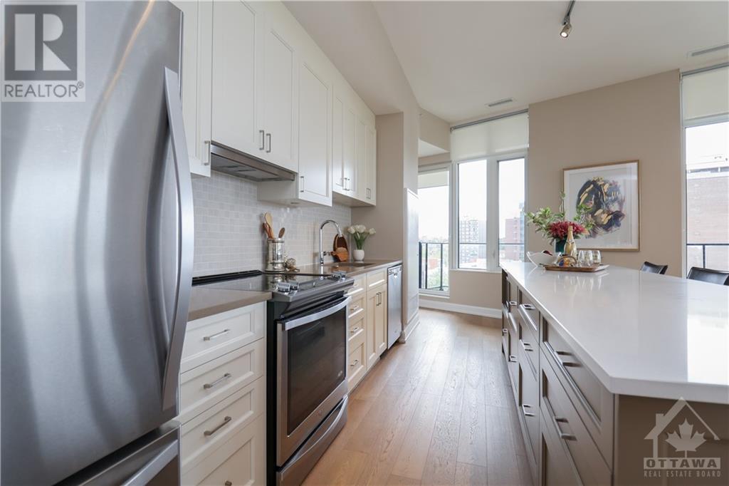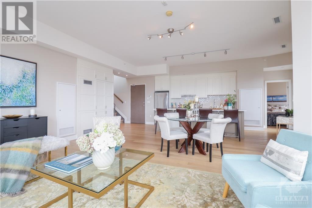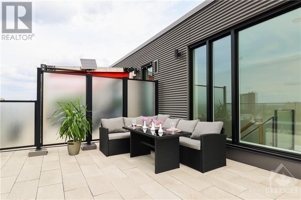 PENTHOUSE at Tamarack Wellington, luxurious living in the heart of Hintonburg. 1155 square feet of indoor living boasts a 2 bed, 2 bath boutique-style living with modern finishes. Stunning Kitchen, large island with quartz countertops with energy-efficient stainless-steel appliances. Open concept design with unbelievable views while entertaining. Master bedroom with a modern ensuite bath. Second great sized bedroom and convenient full bath in main living area. Cute storage area tucked under the stair case. Walk off balcony (100 square feet) off the Kitchen overlooking popular Wellington street. Walk up to your private rooftop terrace! 425 Square feet of amazing breathtaking views of downtown and the core....YES, 425 SQUARE FEET. Heated underground garage and storage locker included. Steps away from an eclectic mix of galleries, boutiques, and sought-after eateries. Call this Penthouse home and enjoy Ottawas hippest neighborhood. (id:22211)