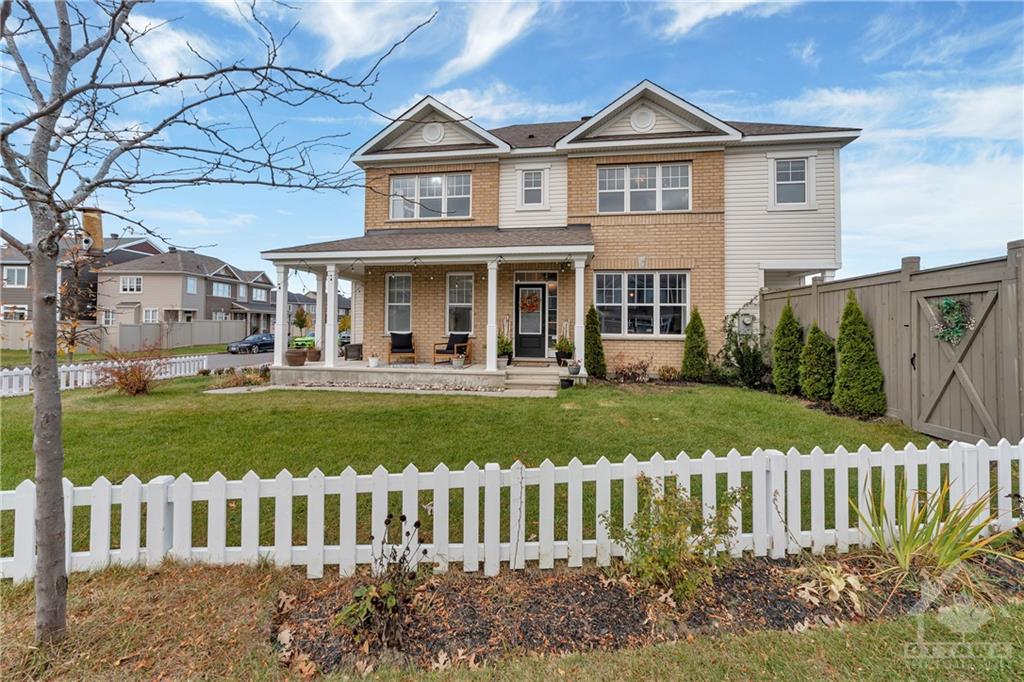 Stunning Single-Family Home on Oversized Corner Lot! Welcome to 100 Burbot Street in family-friendly Half Moon Bay. This gorgeous 3-bedroom + loft, 2.5-bath home is on an oversized corner lot with NO REAR NEIGHBOURS. A charming wrap-around porch invites you into the open-concept main floor, featuring hardwood flooring & upgraded fixtures for a warm atmosphere. The bright kitchen boasts white cabinetry, a tile backsplash, a center island, & stainless steel appliances. The sunny living room flows seamlessly into the dining area, perfect for entertaining, with a convenient 2pc bath completing this level. On the 2nd floor, find a spacious loft, 3 generously sized bedrooms, the primary suite with walk-in closet & 4pc ensuite. The finished basement offers a cozy family room & versatile flex space, plus ample storage. The professionally landscaped, fully fenced backyard provides total privacy. Walking distance to schools, parks, public transit, & just minutes to major amenities & HWY 416.