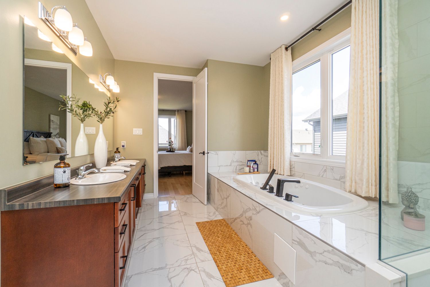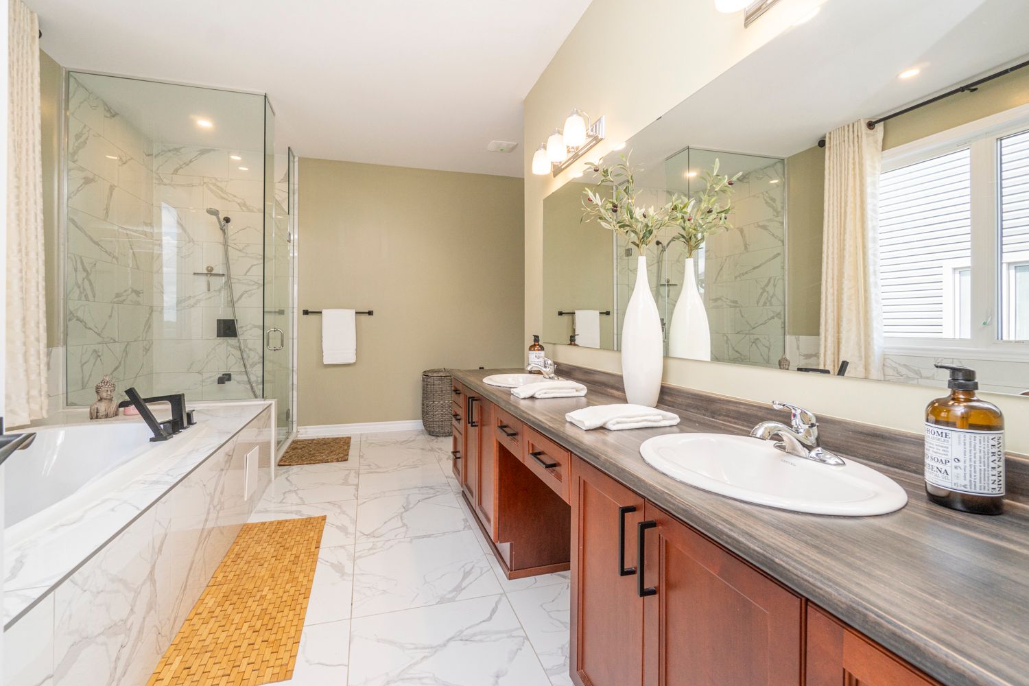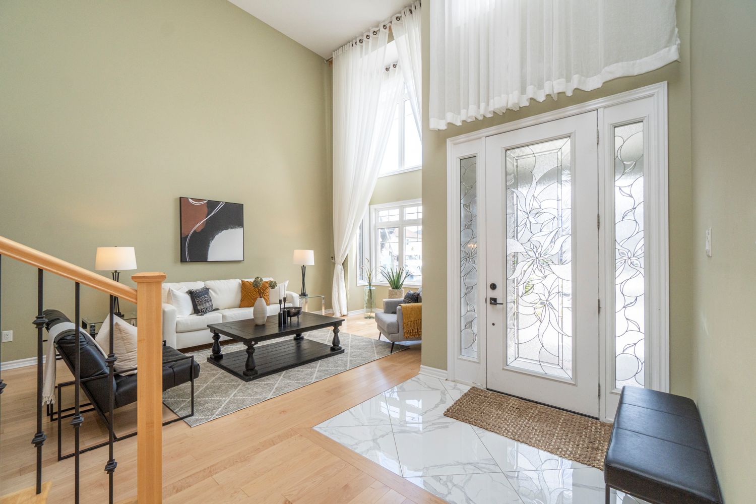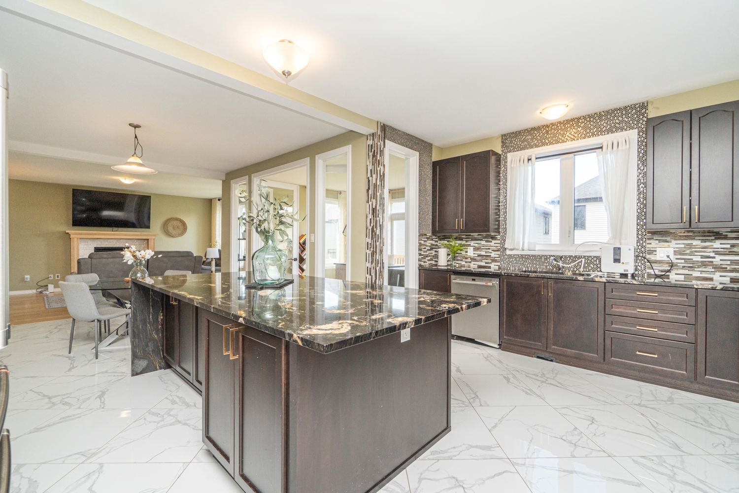 This Spacious, Well Designed Home Features Over 4200 Sqft With 5 Beds & 4 Full Baths (3 Ensuites). A Custom Stone Interlock Driveway & Walkway Lead You Up To This Sensational Home With Tasteful Upgrades Throughout. Soaring 9 Foot Ceilings + Thick Plank Maple Flooring Are Found Throughout The Main & 2nd. 2 Storey Sun-Filled LR W/ Huge Windows. Chef's Kitchen W/ Granite Waterfall Counters, Huge Centre Island & Pantry Opens Onto The Spectacular Sunroom. Cozy Family Room Boasts A Gas Fireplace W/ Stone Surround & Maple Mantle. Main Floor Bedroom W/ 3pc Ensuite Is A Great Space For Overnight Guests. Take The HW Staircase To The Expansive 2nd Floor To Find 9' Ceilings & 8' Doors. Primary Bed Boasts A Luxurious 5pc Ensuite & Built In Electric Fireplace Opening Onto A Handy 2nd Floor Den. Bed 2 Has The Luxury Of It's Own 3pc Ensuite. Beds 3 & 4 Share A Jack N' Jill 4pc Bath. HW Stairs Take You To The "Ready To Finish" LL W/ High Ceilings + 9 Large Windows. 24hr Notice For Showings-TenantedLightings & Draperies Included. 2000+ Sqft 9 Ft Look-Out Unfinished Basements With 2 Rough-In For Bathrooms & A Rough-In For Laundry Room & Plenty Of Large Windows.