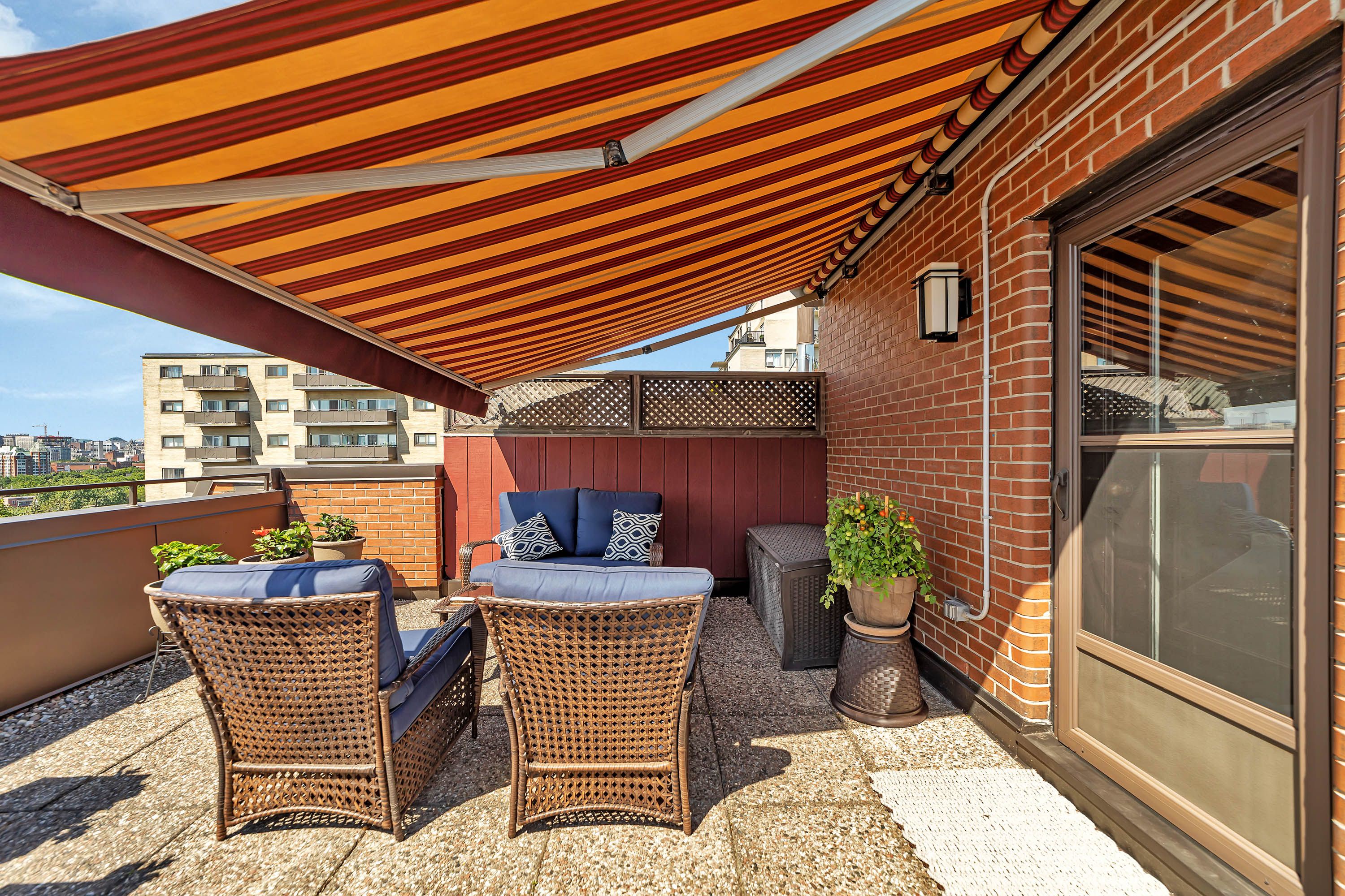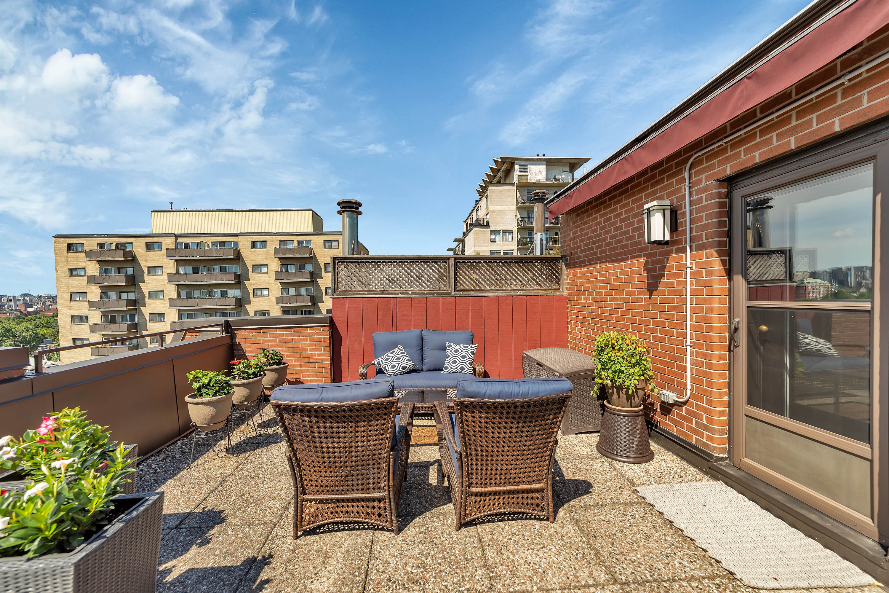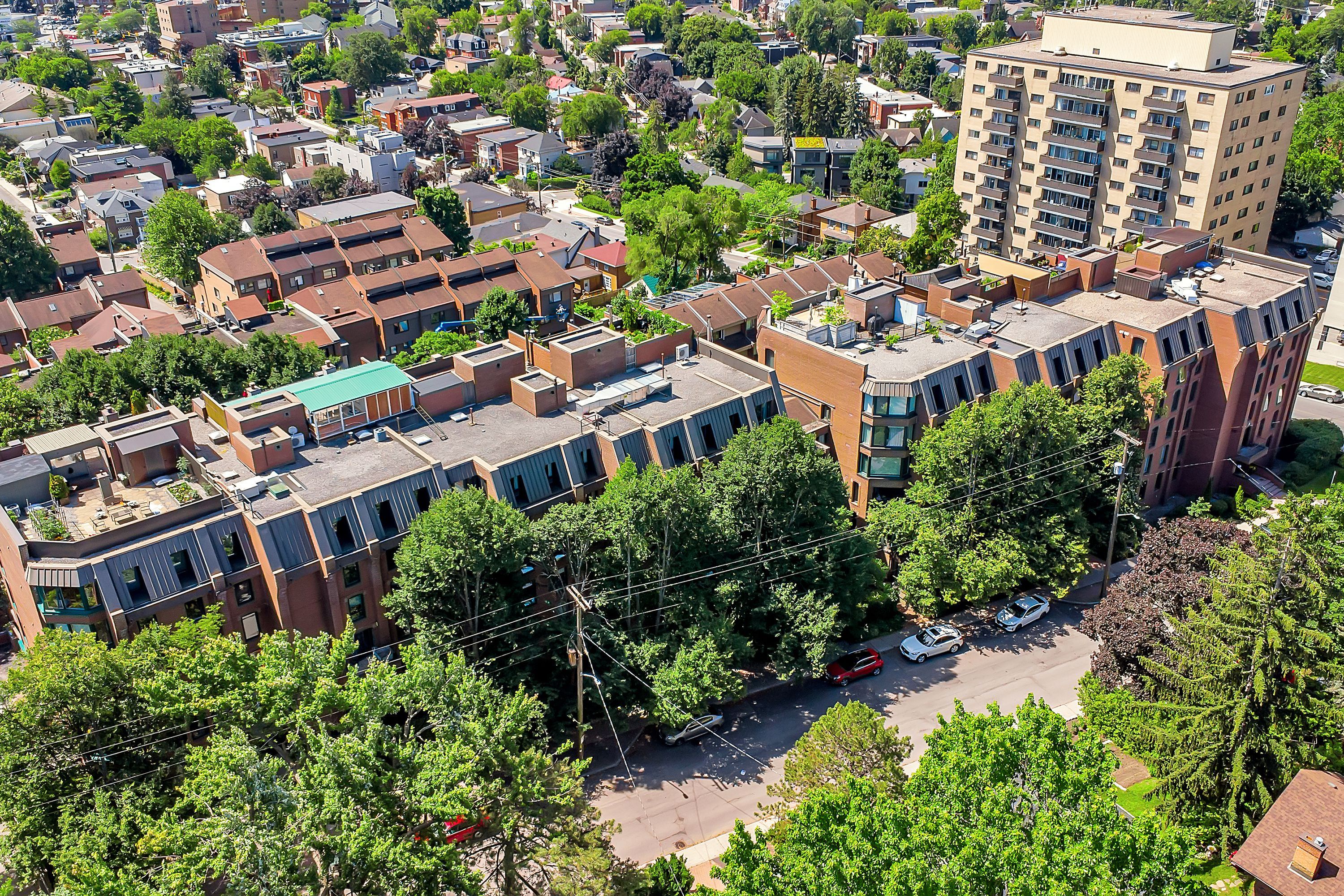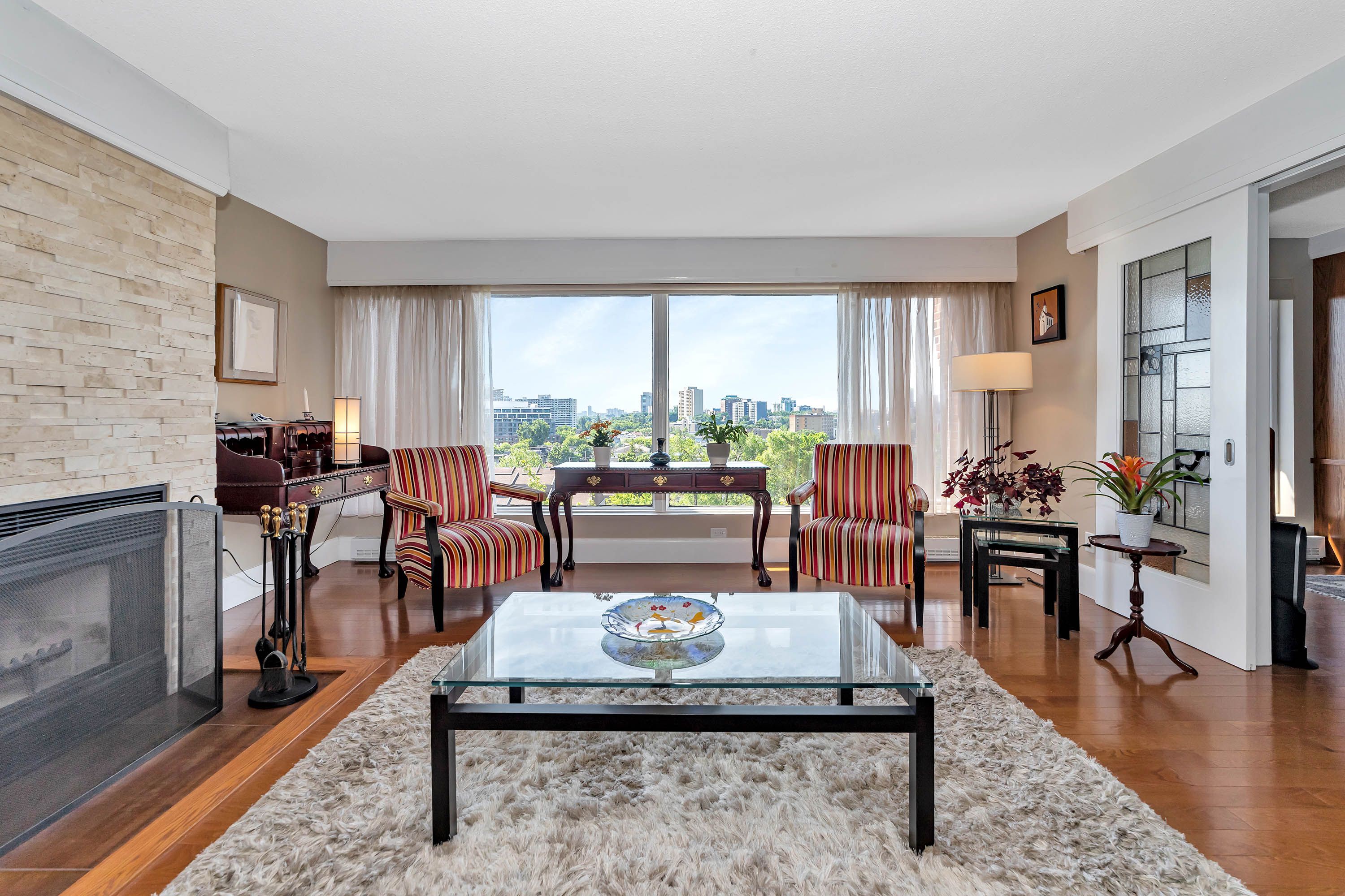 Immerse yourself in elevated living within this fully renovated 1800 sq ft penthouse where 2 BEDROOMS + DEN, 2 full baths, and a PRIVATE ROOF TOP TERRACE come together in one of Ottawa's most coveted neighbourhoods. This top-floor residence has been meticulously transformed from the studs out, blending expansive spaces, premium finishes, abundant natural light and unobstructed south-west views of the city. A skylit foyer welcomes you into the open-concept living and dining area where a breathtaking wall of windows invites natural light to pour in, framing sunsets over the skyline. At the heart of the space, a striking floor-to-ceiling stone fireplace creates an elegant focal point, while rich hardwood floors enhance the warmth and character throughout. Versatile den/office with its own sweeping views & custom built-ins easily doubles as 3rd bedroom. Kitchen is a chef's delight boasting granite counters, breakfast bar, high-end appliances, pantry & ample cabinetry. Generously sized primary with luxe 3pc ensuite is a serene retreat, 2nd spacious bedroom is served by a stylish main 4-piece bath. In-suite laundry. Upstairs, your private rooftop terrace awaits, an entertainer's dream with panoramic city views and a retractable awning, perfect for sunset cocktails or morning coffee in the fresh air. Tandem indoor parking for two cars and a storage locker complete the package. 100 Rideau Terrace is a well-managed, non-smoking, pet-friendly building perfectly positioned in the heart of Lindenlea. Just steps from the Beechwood Village, you'll enjoy a vibrant mix of boutique shops, acclaimed restaurants, and cozy cafes. The scenic Rideau River and waterfront pathways are only a short stroll away. With only two units per floor, this exclusive penthouse offers unparalleled privacy, exclusivity, and ultimate urban sophistication in one of Ottawa's most sought-after neighbourhoods