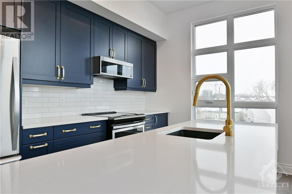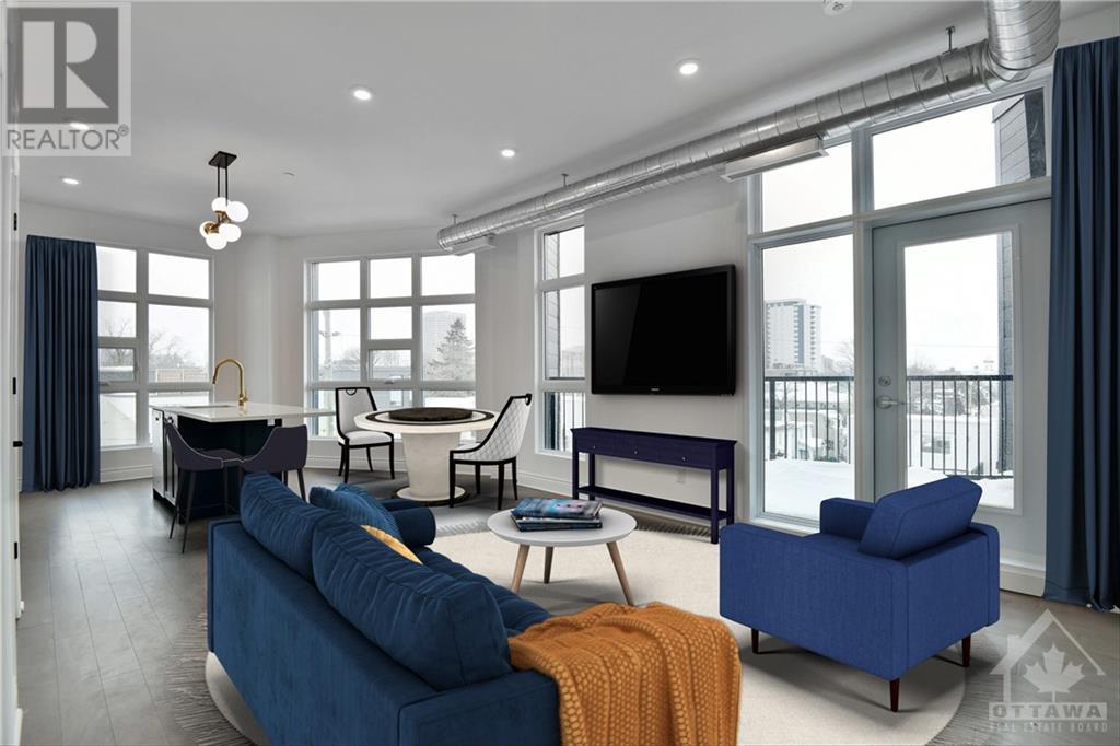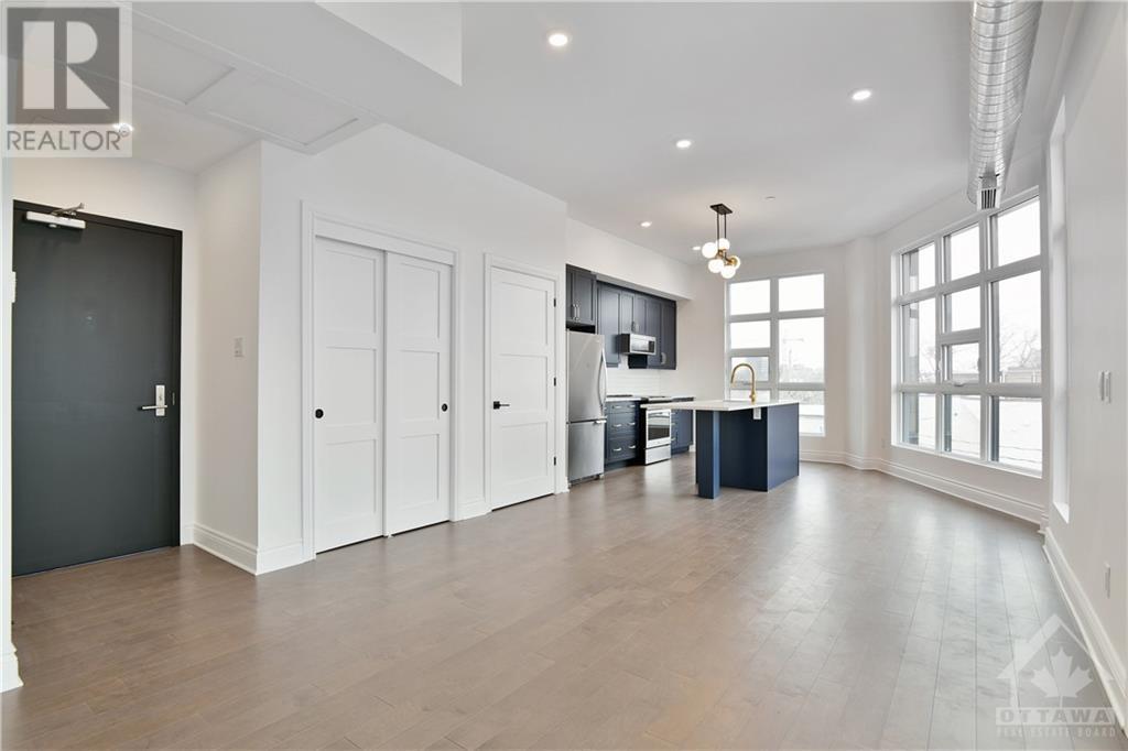 Some photos digitally staged. Only 5 units left at Kensington Lofts Hintonburg, a boutique 26 unit condo in the heart of Hintonburg. 401 is a 1bed + den, 1bath, with 10’ ceilings, huge windows, stainless steel appliances, open concept design, with bright & modern finishes. Relax on the private and covered balcony and watch the action of the neighbourhood with a few friends, or enjoy the rooftop views of the city from the living room/kitchen with stunning wall to wall and nearly floor to ceiling windows. Hintonburg boasts a huge variety of restaurants and cafes, eclectic shops, a mix of new and old architecture and quick access to downtown with the LRT. With Little Italy & Dows Lake, China town, Westboro and the Ottawa River paths just minutes away, no wonder Hintonburg is such an "it" neighbourhood! The Kensington Lofts features a rooftop terrace, pet wash station, and bicycle storage. (id:22211)