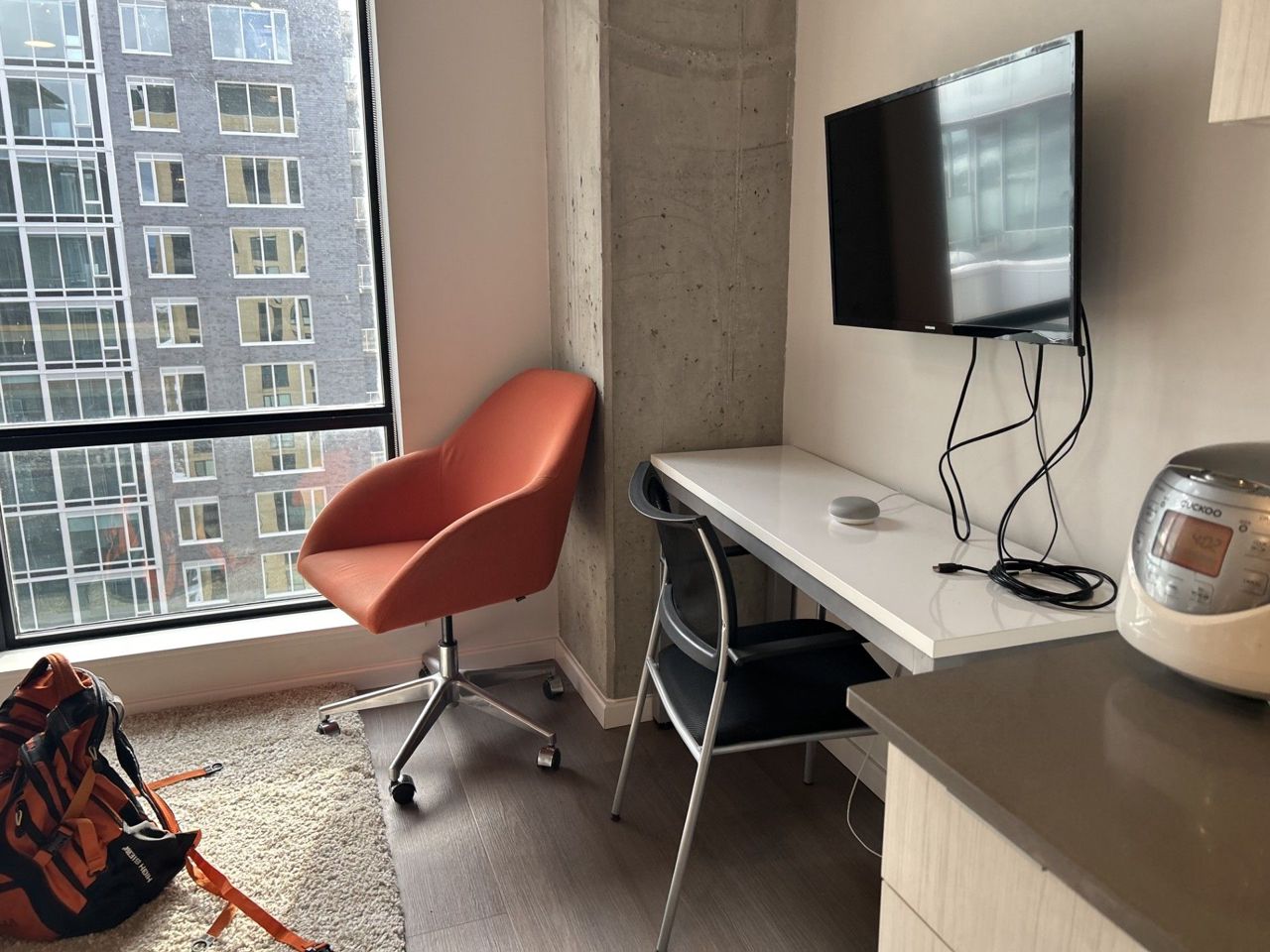 楼内设施:电梯、设备齐全的健身房和瑜伽室、带台球桌和美食厨房的顶层休息室、学习休息区、带座椅区的户外庭院、24/7安保及视频监控、前台服务、便利店、自行车存放室及无障碍通道。适合学生或年轻专业人士——靠近Carleton大学和Civic医院/心脏研究所、Dows湖、Westboro、Wellington Village和Hintonburg的时尚商店、餐厅和酒吧,以及MEC、The Superstore、Metro、Lululemon、LCBO、渥太华河自行车道,公共交通便利。几分钟可达市中心、Westgate购物中心、Westboro、Tunney's Pasture和实验农场。靠近Trillium线——O'Train及多条OC Transpo公交线路,楼旁有2、14、55、56、85路公交车站。禁止养宠物(服务性动物除外)。禁止吸烟(仅限指定户外区域)。无停车位——地下停车场可能可从物业管理公司租用。