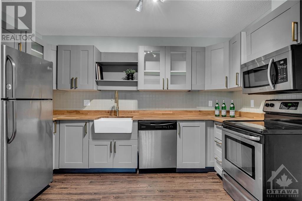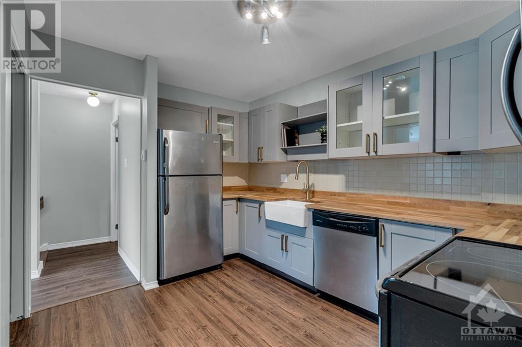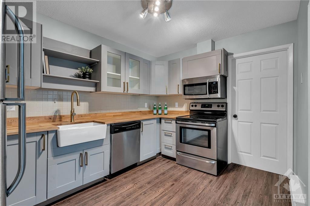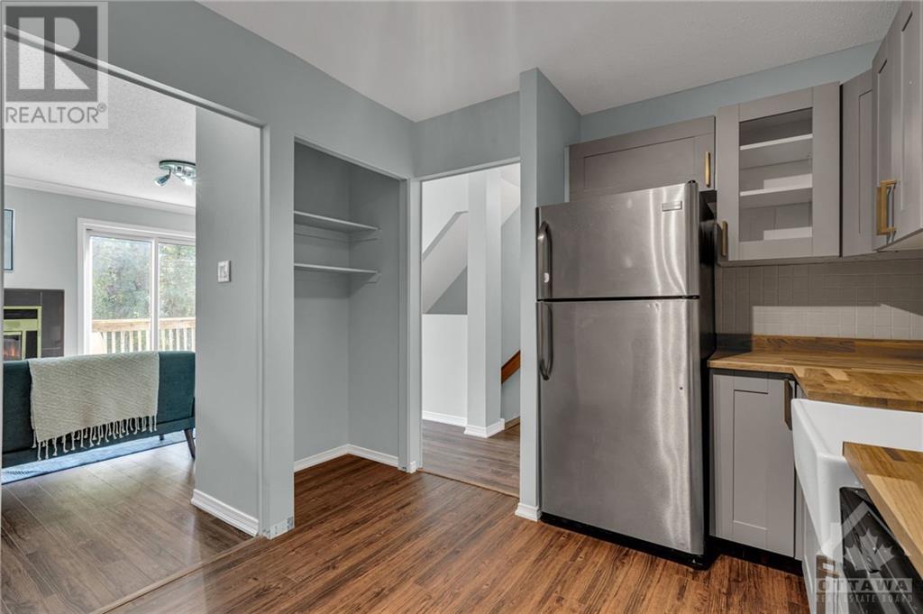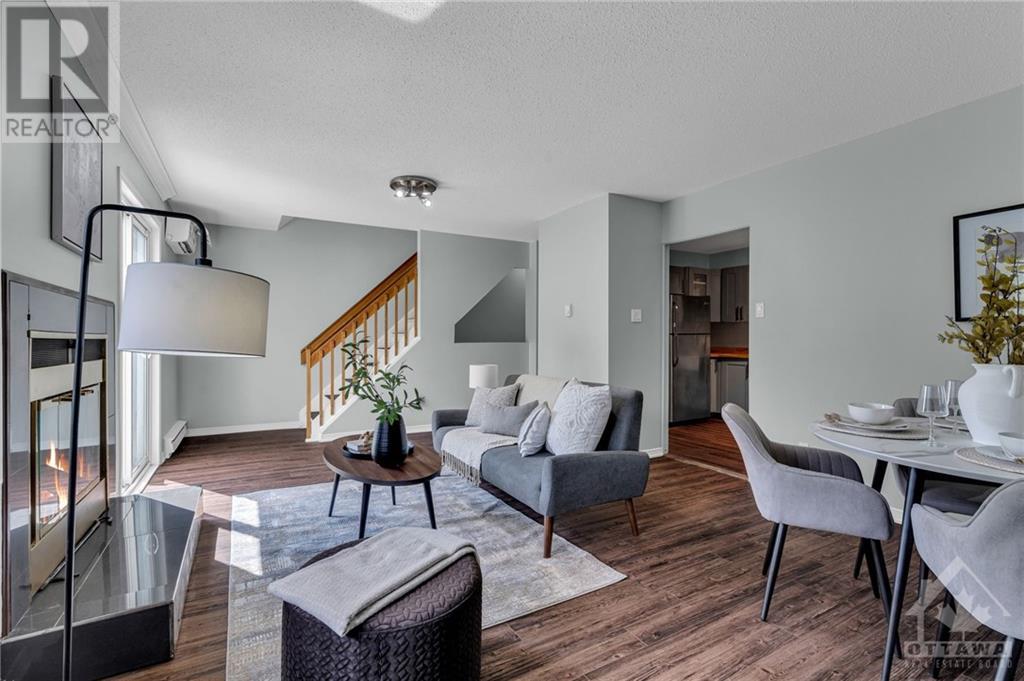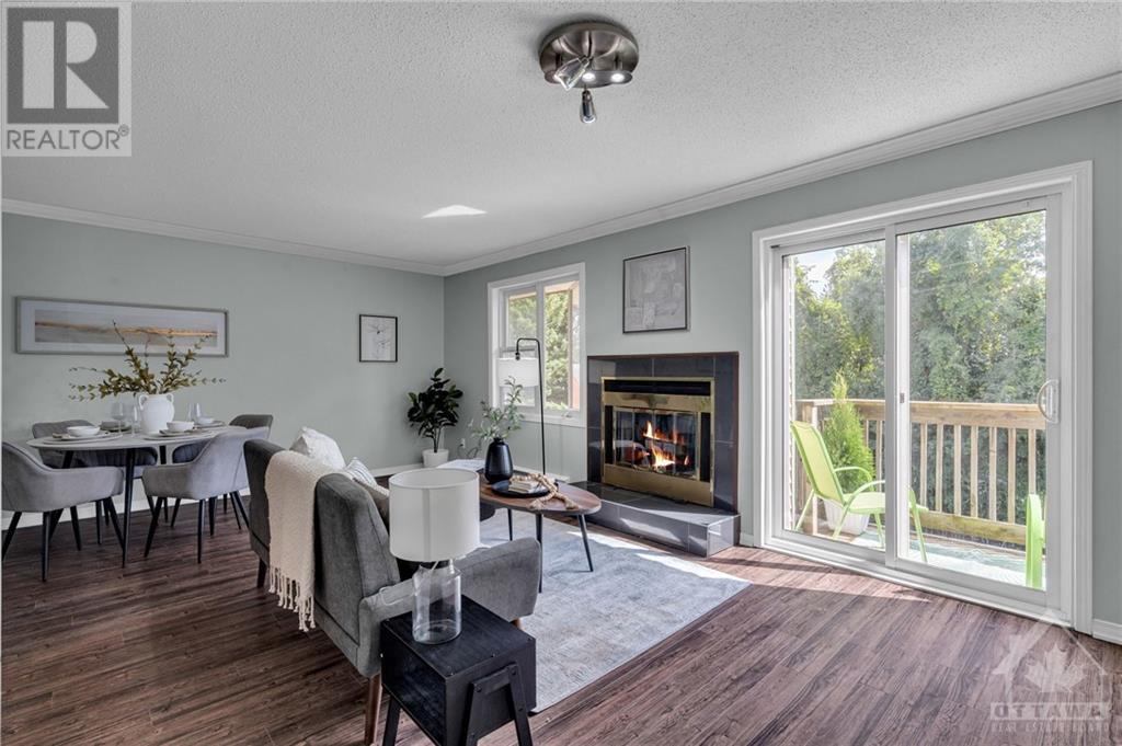 Spacious UPPER stacked condo in the popular neighbourhood of Westcliffe Estates. New kitchen with butcher block counter tops and apron front sink. Stylish gold hardware and stainless steel appliances. New flooring in open concept living room/dining room with cozy fireplace. Balcony off living room with plenty of greenspace to admire across the street. No front neighbours. Spacious laundry area off the kitchen. Oversized primary retreat with walk-in closet & updated ensuite. 2nd bedroom and full bath. New split duct system for economical climate control, heat and a/c. New fencing for privacy in your front yard. Convenient access to NCC trails, shops, restaurants & future LRT. Bedroom photos have been virtually staged. You will not want to miss this one. (id:22211)