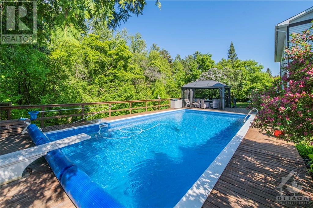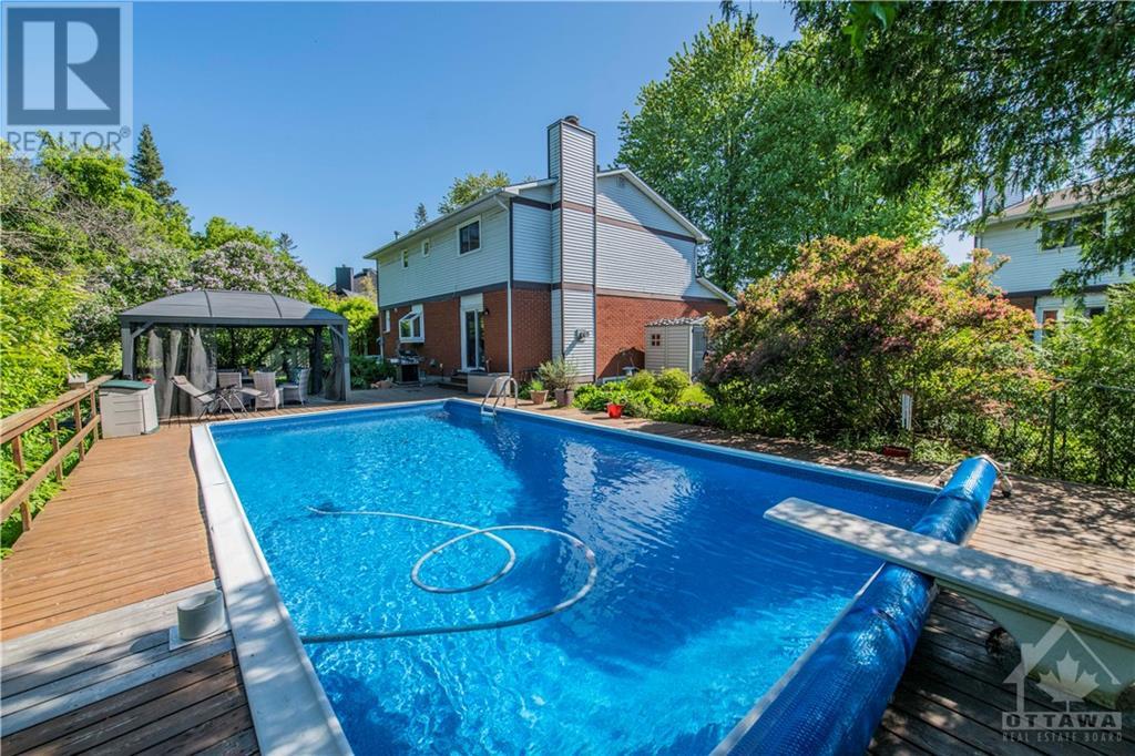 Great family home located in a quiet neighbourhood. This home is set back from the street, and has the added bonus of a large circle out in front, which is ideal for a pick up ball hockey or basketball game. Kid friendly Four + 1 bedrooms, and four bathrooms,loads of space to enjoy. Main floor laundry and man door from the generous 2 car garage. Close to the LRT, and bus route, ideal for students and commuters. Close to the airport and Ottawa Hunt Club Golf Course. Lovely backyard oasis awaits with an inground Saltwater pool, gazebo, and patio surrounded by a canopy of mature trees. Pack you bags and move in. Pictures of Lower family room are virtually staged (id:22211)