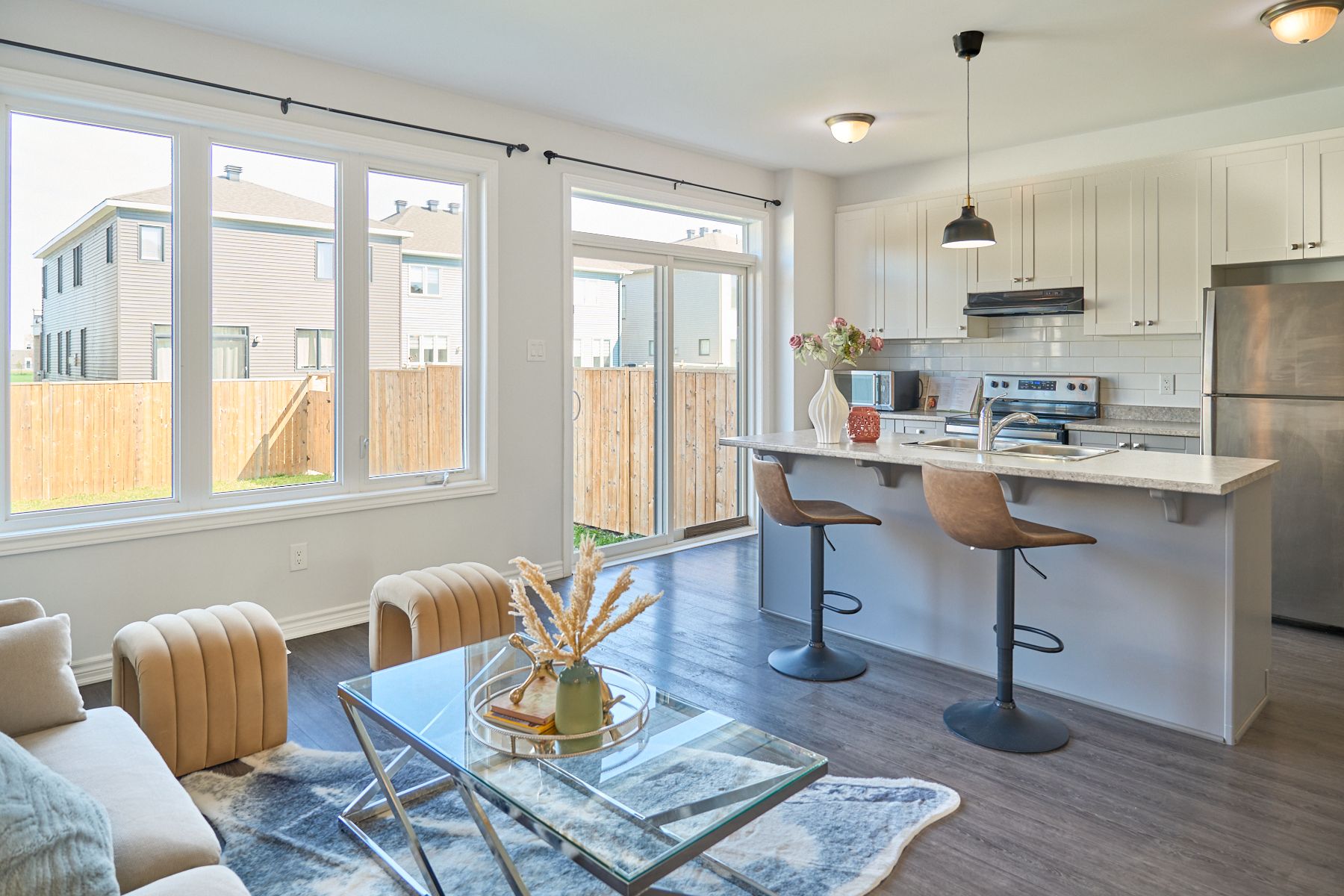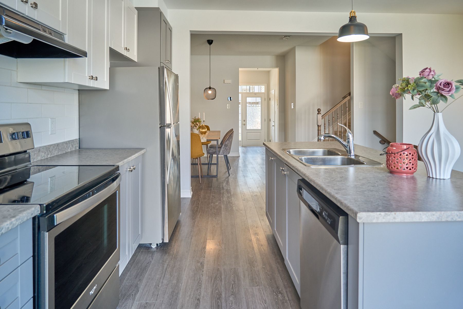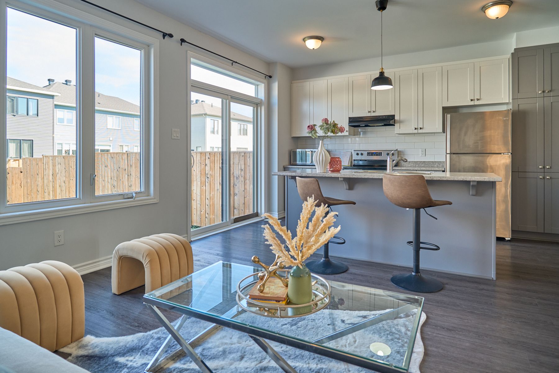 Move-In Ready! This 5-year-old home is located in the highly sought-after community of Kanata South. The main floor features an open-concept layout with a bright living room, dining area, and kitchen - all with durable laminate flooring. The kitchen offers ample PVC cabinetry, a convenient breakfast bar, and access to the fenced backyard through sliding patio doors. A ceramic-tiled entryway and a 2-piece powder room complete the main level. Upstairs, you'll find a spacious primary bedroom with a walk-in closet and a full ensuite bath, along with two additional well-sized bedrooms and a second full bathroom. The basement includes a laundry area and plenty of storage space. Conveniently located close to schools, public transit, restaurants, shopping, parks, and more - this home offers both comfort and convenience! Book your showing today!