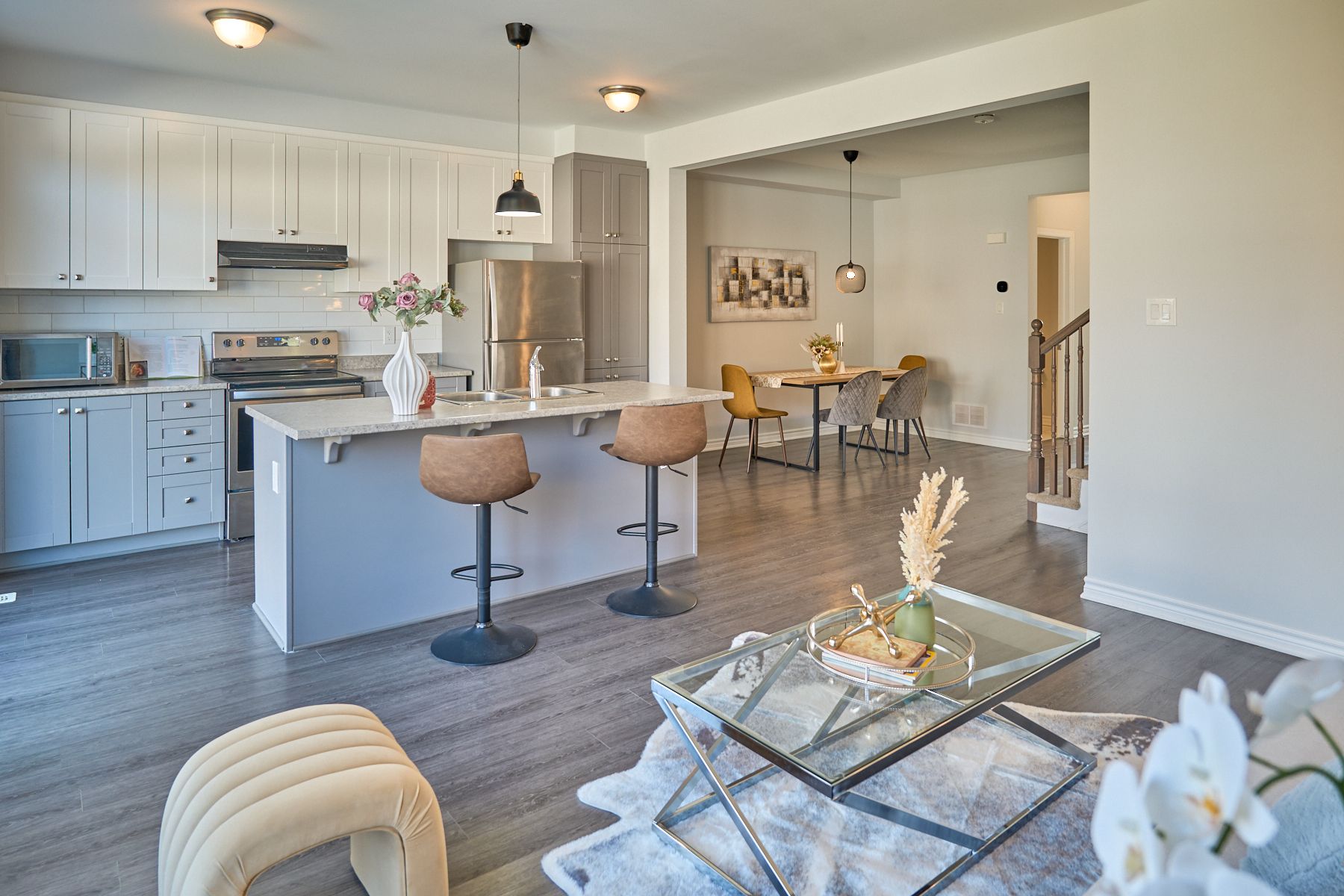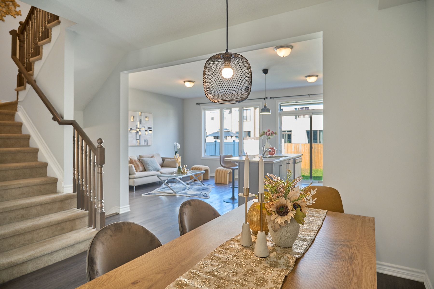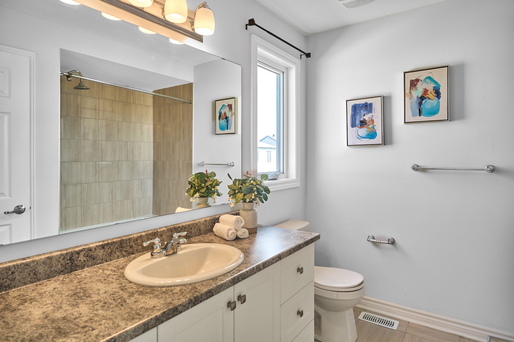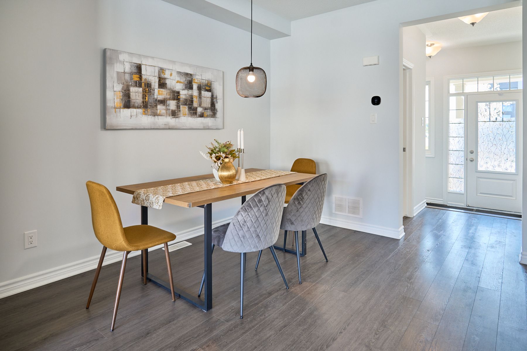 Move-In Ready! This 5-year-old home is located in the highly sought-after community of Kanata South. The main floor features an open-concept layout with a bright living room, dining area, and kitchen - all with durable laminate flooring. The kitchen offers ample PVC cabinetry, a convenient breakfast bar, and access to the fenced backyard through sliding patio doors. A ceramic-tiled entryway and a 2-piece powder room complete the main level. Upstairs, you'll find a spacious primary bedroom with a walk-in closet and a full ensuite bath, along with two additional well-sized bedrooms and a second full bathroom. The basement includes a laundry area and plenty of storage space. Conveniently located close to schools, public transit, restaurants, shopping, parks, and more - this home offers both comfort and convenience! Book your showing today!