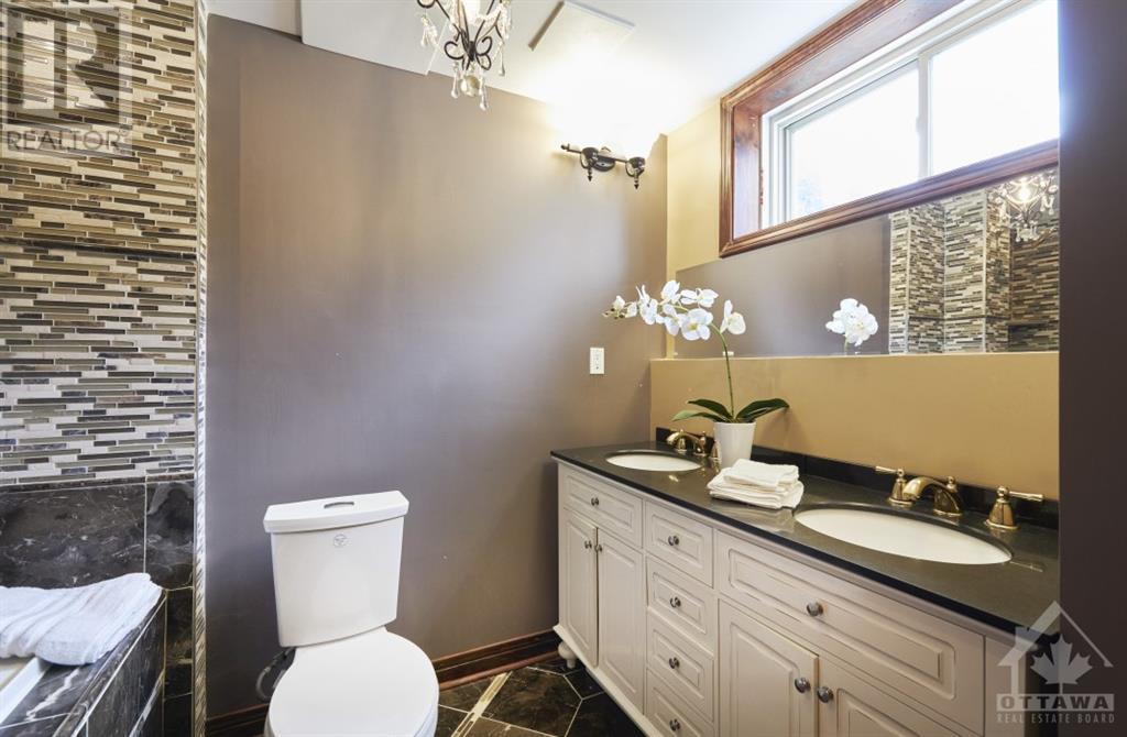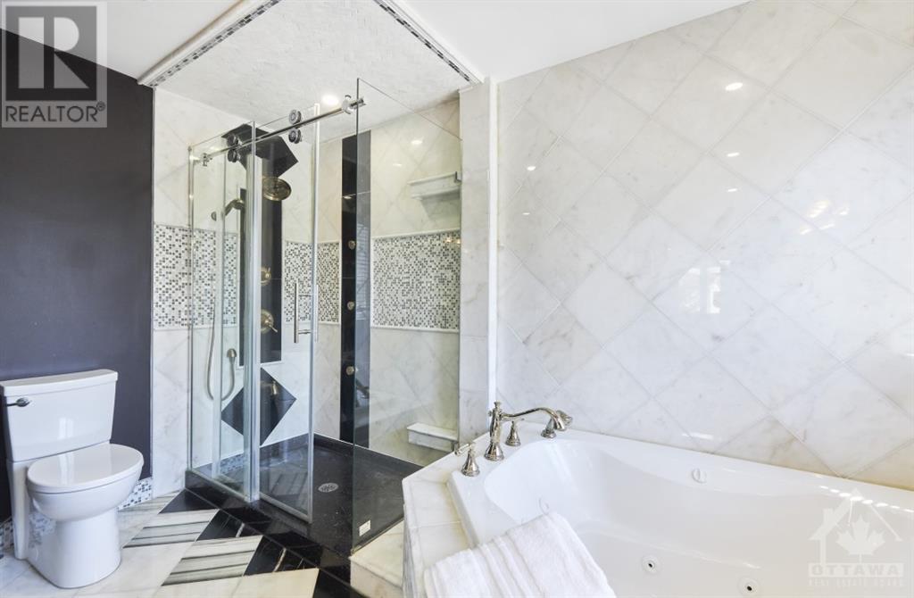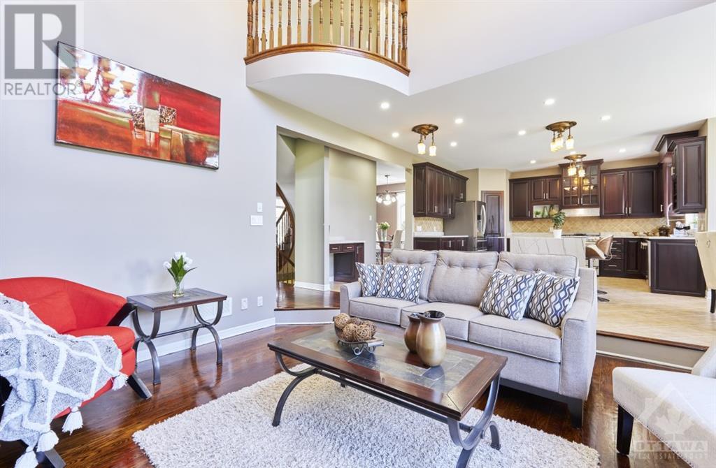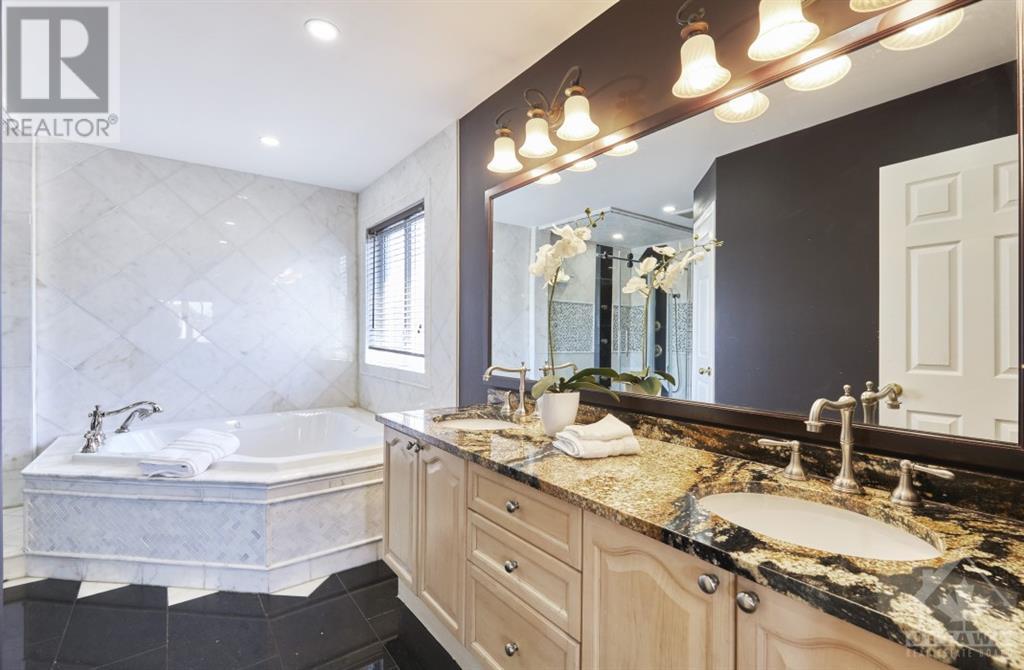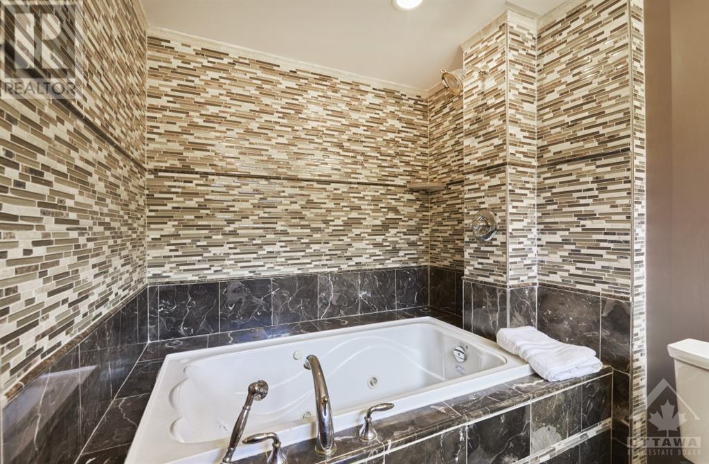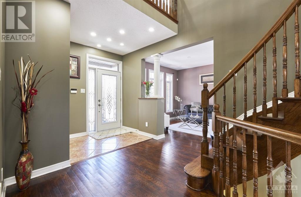 In the tranquil and mature neighbourhood of Bridlewood in Kanata, you will find this gorgeous Claridge-built single home with elegant landscaping and luxurious finishes. It is a 47’ model built on an oversized pie lot, offering over 4000 sqft of living space. Entering the great room, you'll be greeted with soaring 2-storey ceilings that add to the grandeur of this home. With hardwood floors throughout, the property exudes an air of luxury. The huge and tastefully upgraded gourmet kitchen features quartzite counters, maple cabinets, high-end appliances, and a walk-in pantry. Large breakfast space with oversized windows overlooks the backyard. The curved staircase leads us to the 2nd floor that offers 4 spacious bdrms and 2 full bathrooms. Both bathrooms feature granite counters, natural stone and marble-tiled floors and walls, custom glass walk-in-shower, and high-end faucets. Fully finished basement is extra insulated, and has a luxury bathroom with jacuzzi. (id:22211)