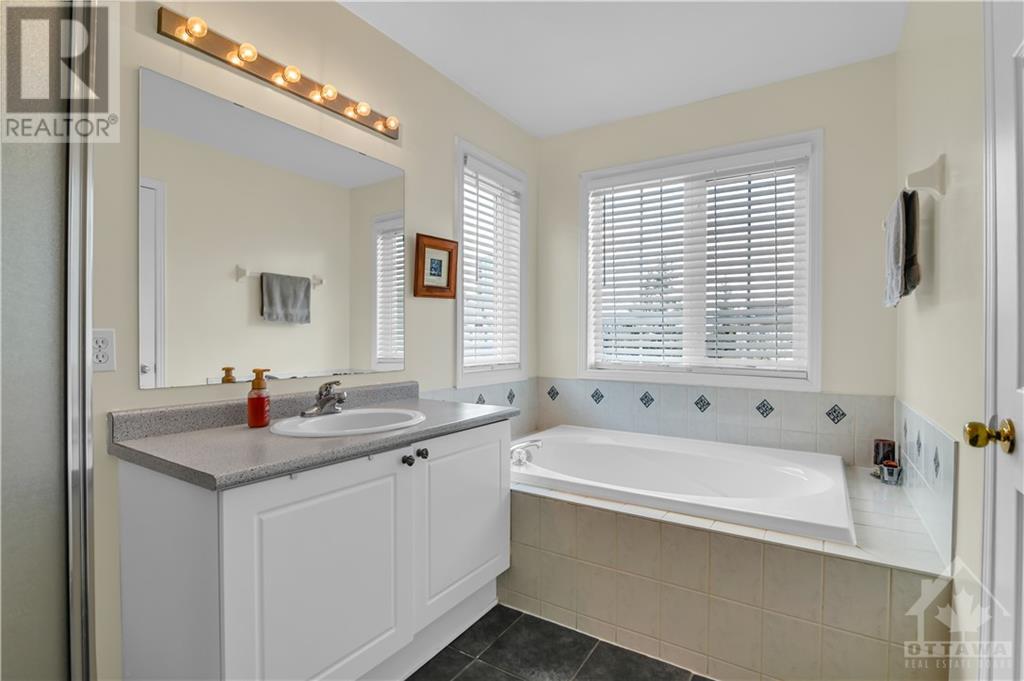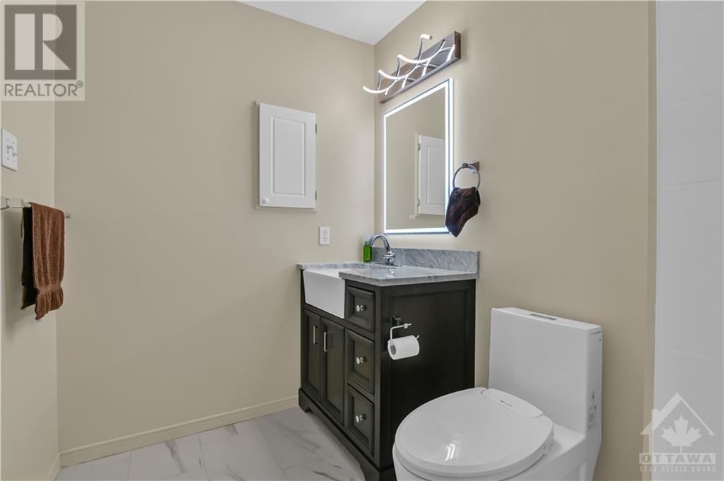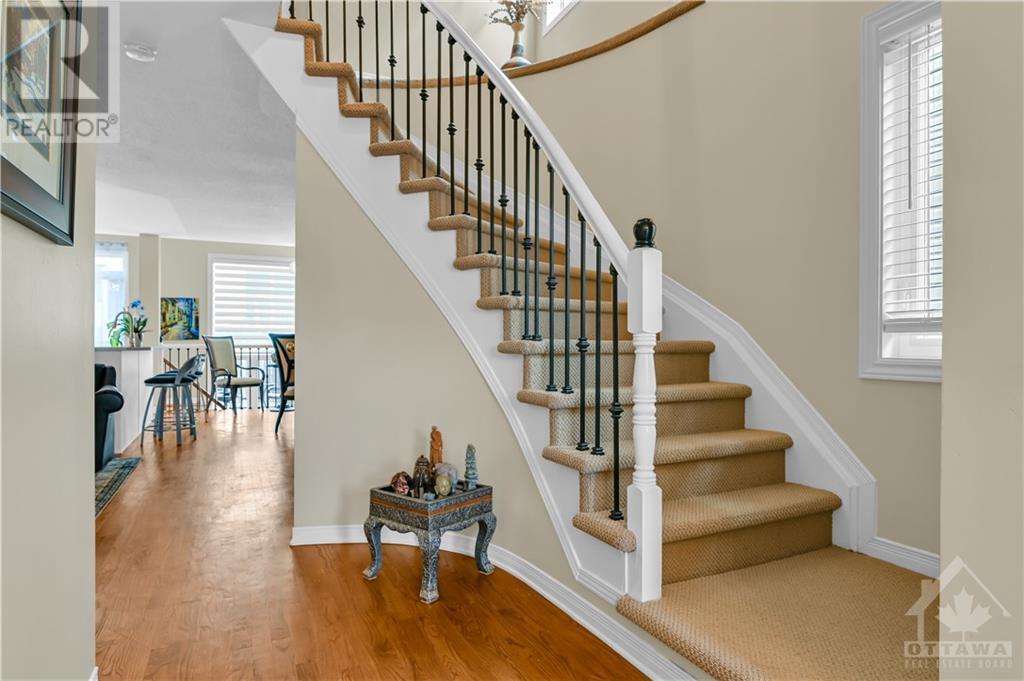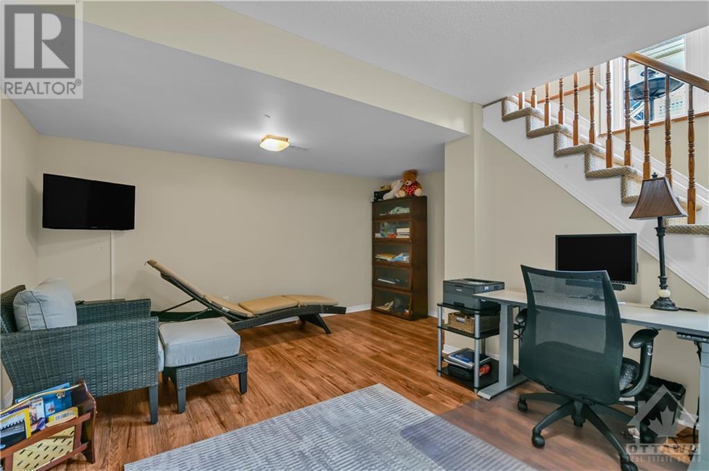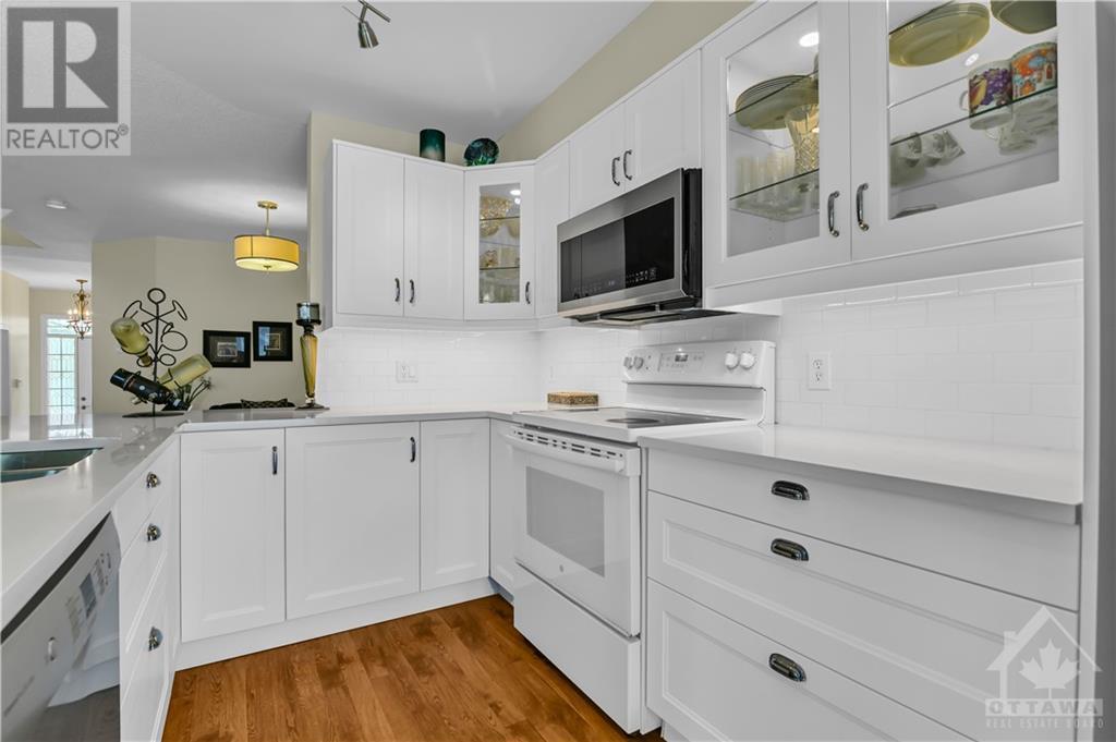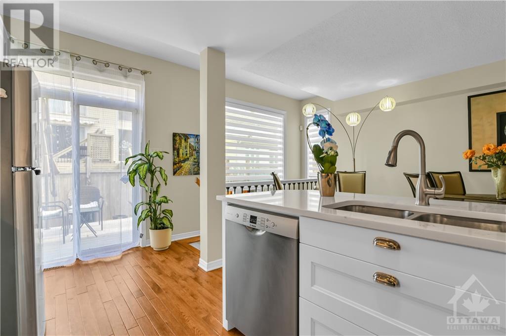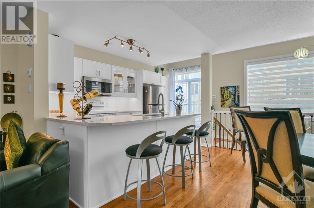 Welcome to this stunningly upgraded and recently renovated end rowunit that is central to everything -- CHEO, the General Hospital, Trainyards shopping, Via Rail station, etc. The sparkling kitchen was recently reconfigured to make best use of the space & includes a pantry tucked away under the stairs, self-closing pot drawers, 2 lazy susans, hi-quality SS appliances, gleaming Quartz heat-resistant countertop on island with seating.3 bedrooms and 3 baths, w/laminate flooring, hardwood on the main floor, and Berber carpet on stairs. The lwr lvl is finished with a rec room and a spacious storage area. Most railings have been updated, the family bath is fully renovated, and the ensuite has a soaker tub, separate shower, sink, toilet.Freshly painted throughout! Single car garage with opener.Plenty of visitor parking nearby. Many thousands in upgrades 2021/2022/23! Just move in & enjoy! Must See! $83/mo Association fee includes road maintenance, snow removal & common area landscaping. (id:22211)