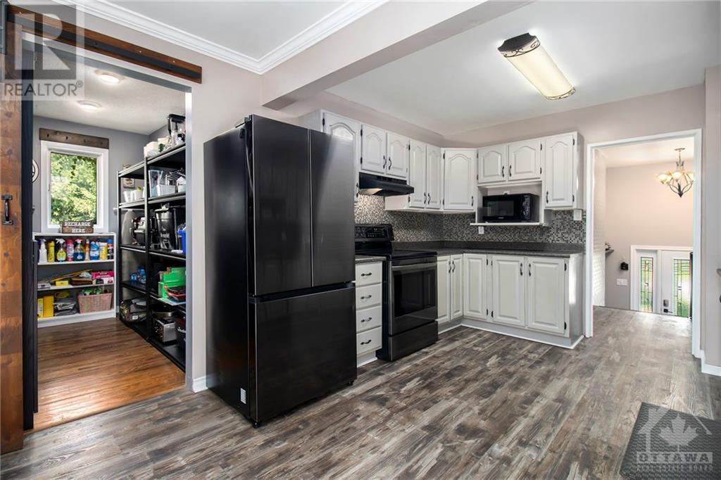 Spacious 4 bedroom 2 bath hi-ranch on a family-friendly street in the Glen Cairn neighbourhood of Kanata. The house has been expanded in the rear for a dinning area off the kitchen, pantry, and mudroom. Dark S/S appliances, lots of counter & cabinet space. Den off the living room makes a perfect home office. The finished basement has a rec room, 2 bedrooms, another full bathroom, plus a storage and laundry room in the addition. The 69' x 111' lot allows for a large backyard, fully fenced and private (currently 1/3 is fenced off for the dogs). Thanks to split stairs at the entrance, this hi ranch is easily converted into a duplex or a rental suite in the lower level. Parking for 5 cars, including the garage with inside entry. Short walk to parks with tennis courts, outdoor pool, hockey rink, soccer field, baseball & softball diamond, community centre, public library, public & catholic schools, etc! Bus stop & all your shopping needs on Hazeldean Rd - great Walkscore for a suburban home! (id:22211)