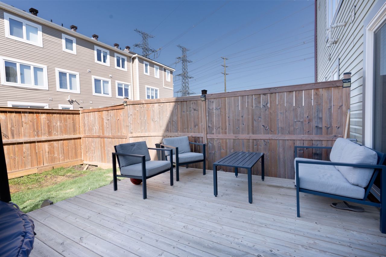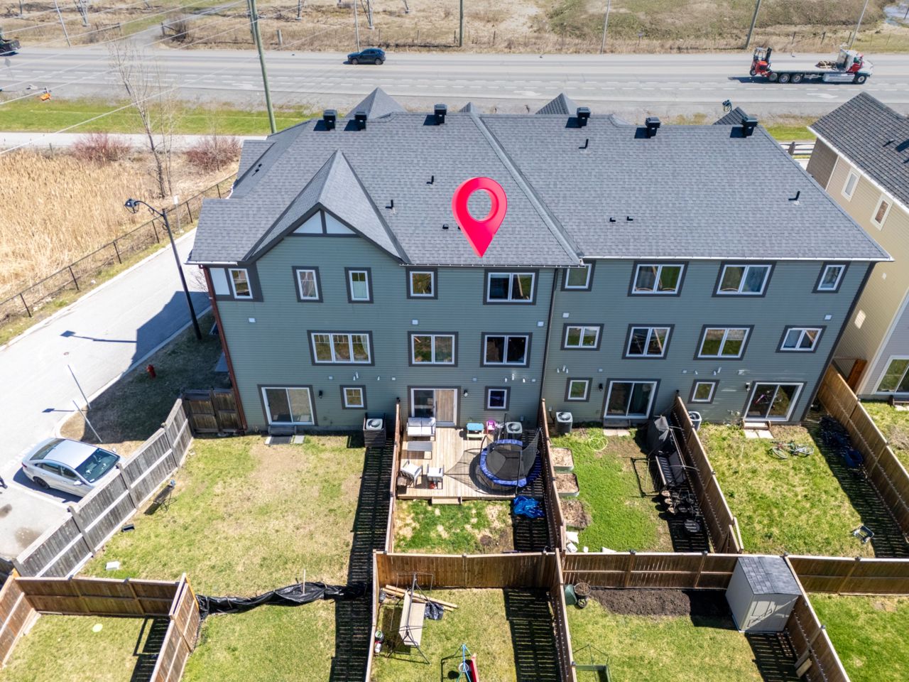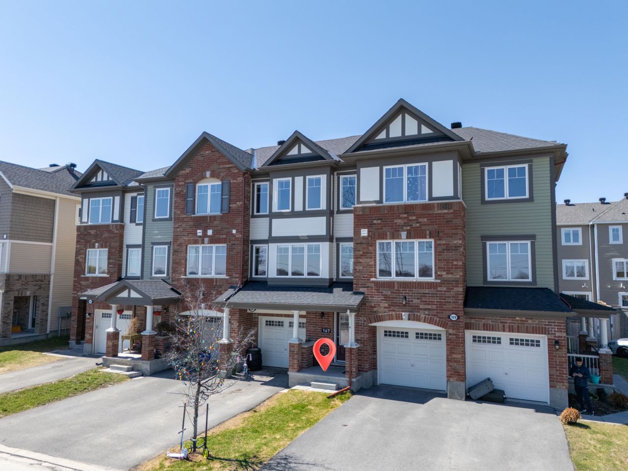 Welcome to this stunning 3-bedroom + den townhouse located in one of Ottawa's most desirable and family-friendly communities. Built in 2018, this modern home offers a spacious, sun-filled layout with hardwood flooring throughout and a thoughtfully designed floor plan perfect for everyday living and entertaining. The main floor features a bright open-concept living/dining area with large windows and (no front neighbours), offering extra privacy and beautiful views. The upgraded chef's kitchen boasts (marble countertops), a large island, and stainless steel appliances ideal for family meals or hosting guests. A den on the second level provides a flexible space for a home office or study nook. Downstairs, the finished main level includes an (additional recreational room) with direct access to a (private, fully fenced deck), perfect for BBQs or outdoor relaxation. Upstairs, the primary bedroom includes (his & hers walk-in closets), and all three bedrooms are filled with natural light and offer great closet space. The home includes 2.5 bathrooms and is thoughtfully updated to suit modern living. Located just steps to a large shopping plaza with Walmart, banks, restaurants, schools (on a school route), public transit, parks, and with easy access to major highways. This is a growing neighbourhood with ongoing development great for long-term value. (Parking for 3 cars) (1 garage + 2 driveway). Monthly association fee of $120 covers outdoor maintenance so no need to street about the maintenance. Perfect for families or professionals looking for space, comfort and community.