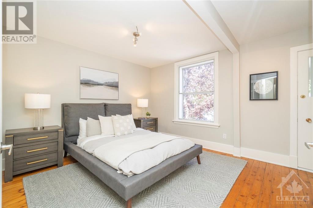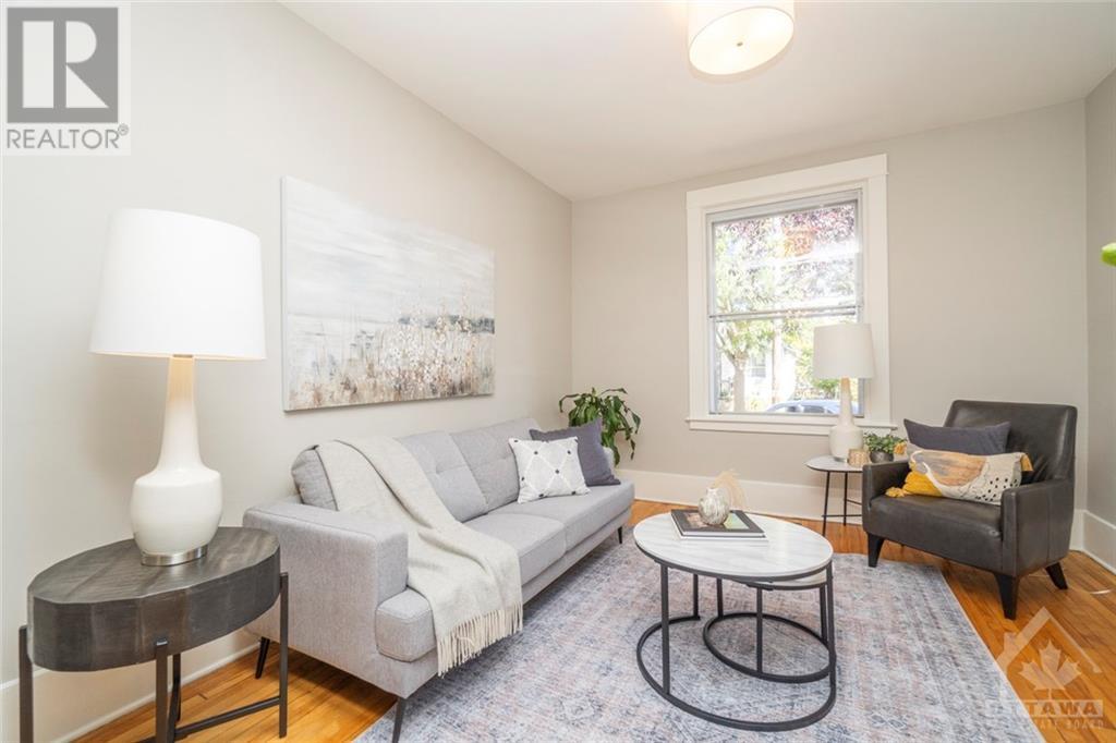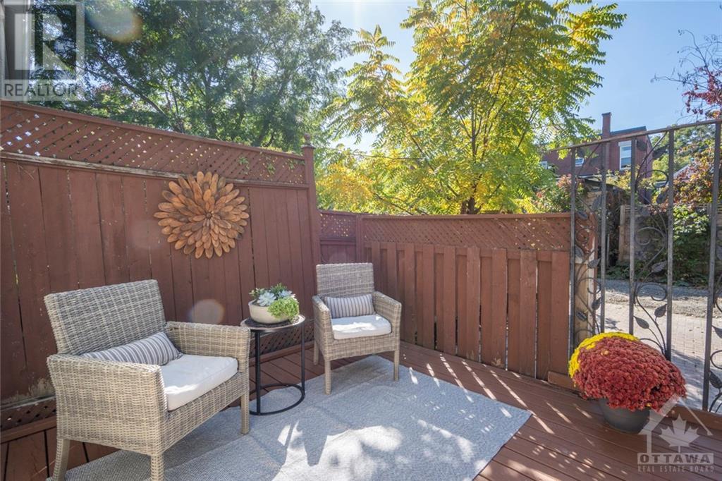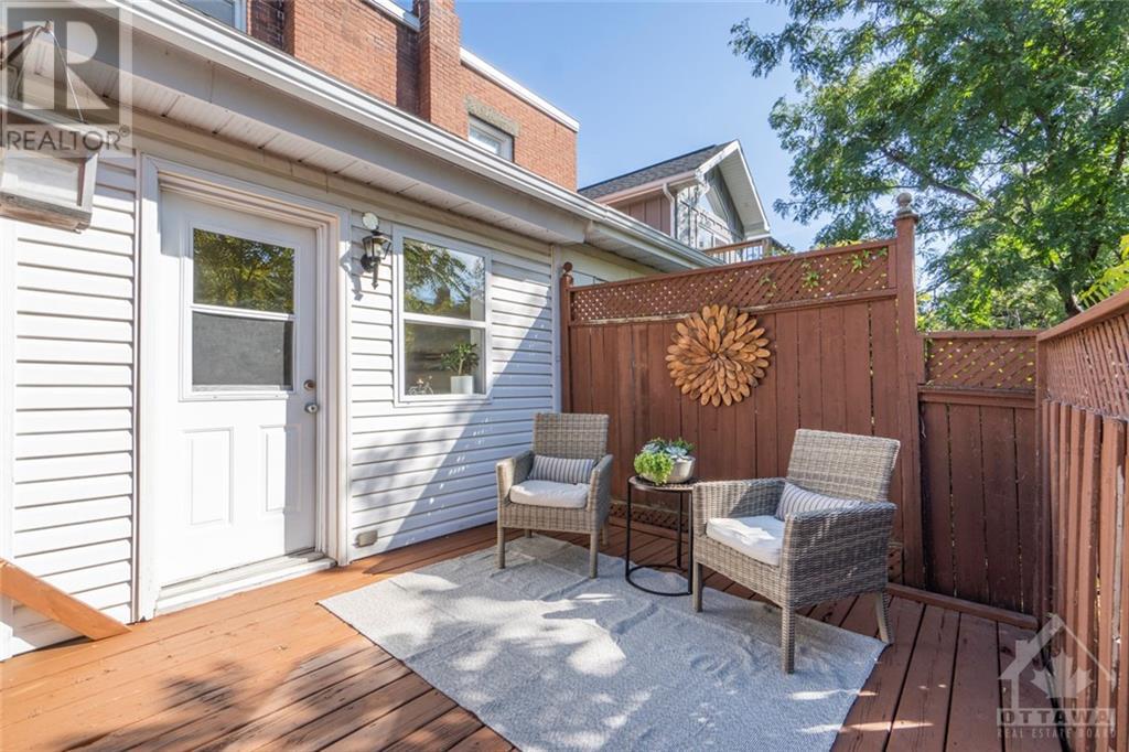 Welcome home to the vibrant community of Old Ottawa East! Perfectly situated btwn Canal & Rideau River, this 3 bedrm + den row exudes classic charm & character of yesteryear! Accents of high ceilings, wood floors, deep baseboards & big windows highlight the generously proportioned spaces. Adjacent living/dining rms present comfortable spaces for private enjoyment or sizeable gatherings. Anchored by a centre island, the roomy kitchen features ample storage & counter space. With views onto the back deck, the den is accented by a vaulted ceiling & skylight-a sunny space for home office or reading nook. Second level offers the spacious primary bedrm w/large closet, dressing nook & access to covered porch. Two additional bedrms & bath complete this level. West facing deck for outdoor enjoyment & parking off lane. Steps to Springhurst Pk, paths along Rideau River, restaurants, cafés & shops along Main, Lady Evelyn School, LRT & so much more! Be a part of this exciting community! 24 hr irrev. (id:22211)