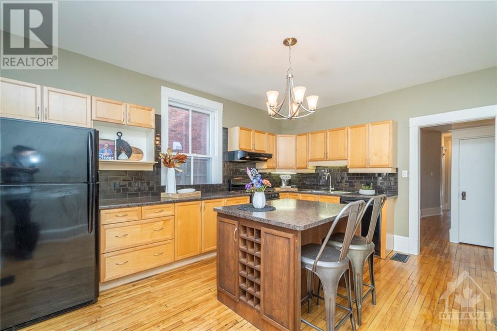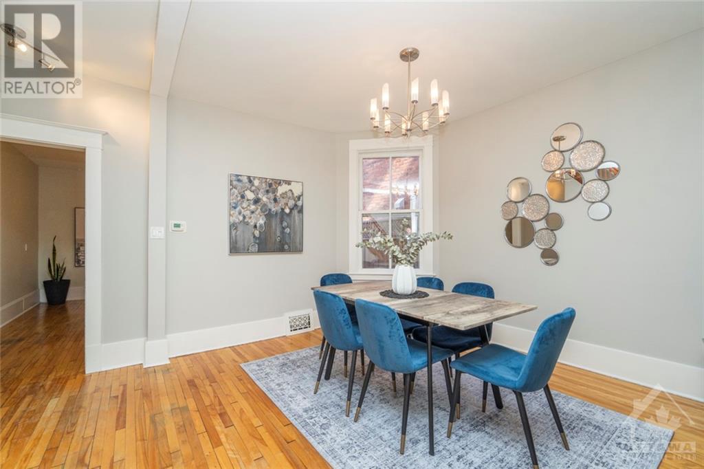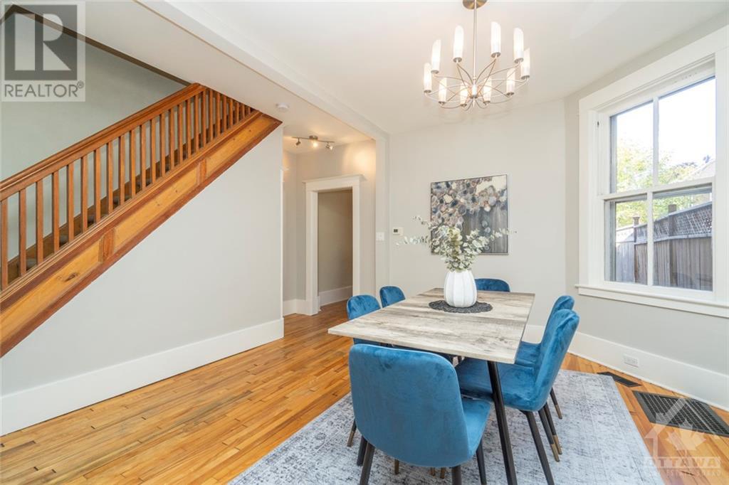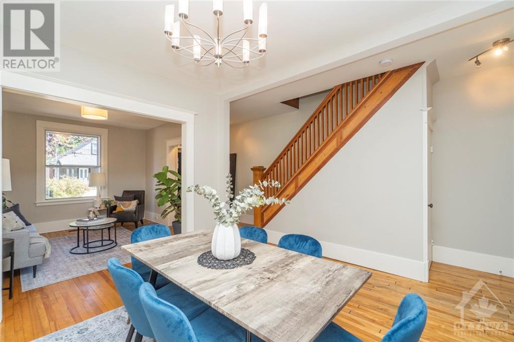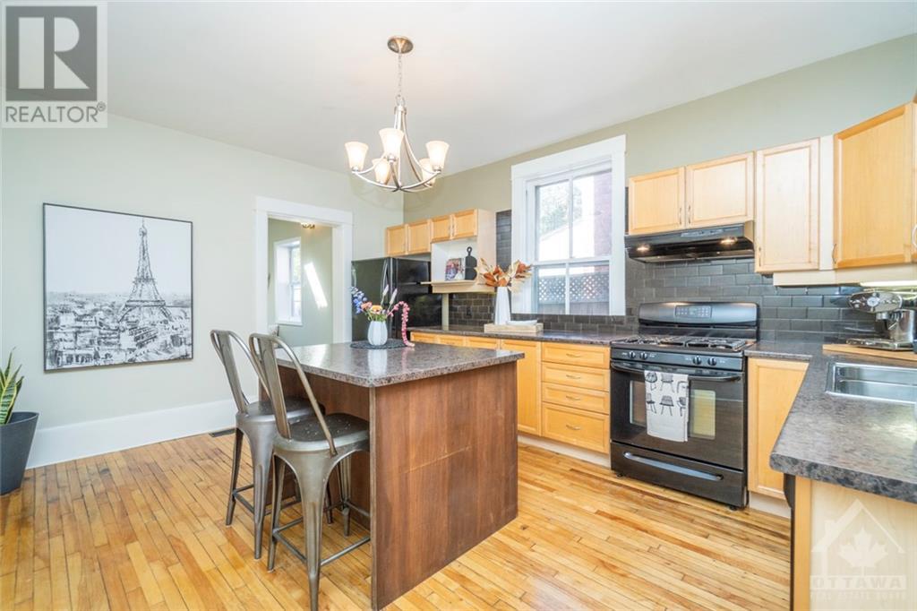 Welcome home to the vibrant community of Old Ottawa East! Perfectly situated btwn Canal & Rideau River, this 3 bedrm + den row exudes classic charm & character of yesteryear! Accents of high ceilings, wood floors, deep baseboards & big windows highlight the generously proportioned spaces. Adjacent living/dining rms present comfortable spaces for private enjoyment or sizeable gatherings. Anchored by a centre island, the roomy kitchen features ample storage & counter space. With views onto the back deck, the den is accented by a vaulted ceiling & skylight-a sunny space for home office or reading nook. Second level offers the spacious primary bedrm w/large closet, dressing nook & access to covered porch. Two additional bedrms & bath complete this level. West facing deck for outdoor enjoyment & parking off lane. Steps to Springhurst Pk, paths along Rideau River, restaurants, cafés & shops along Main, Lady Evelyn School, LRT & so much more! Be a part of this exciting community! 24 hr irrev. (id:22211)