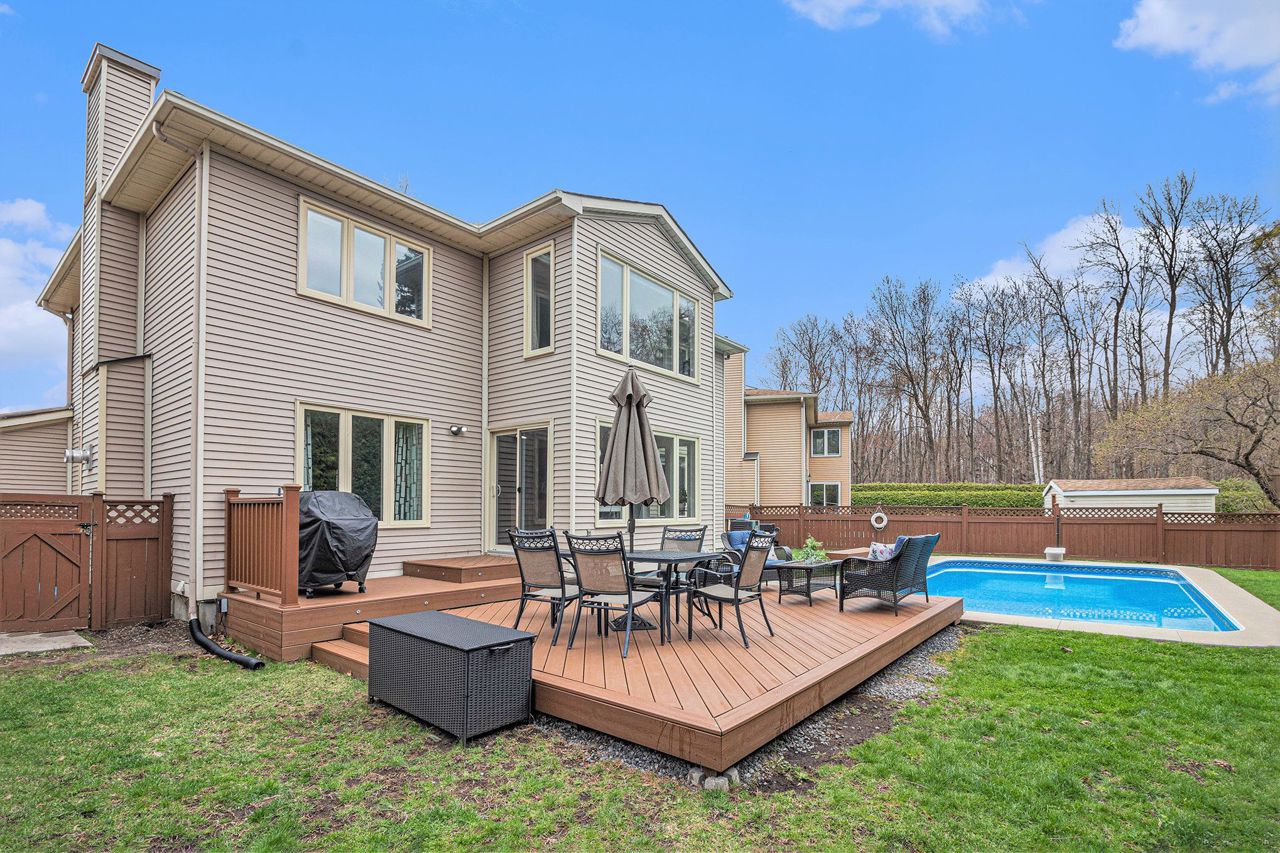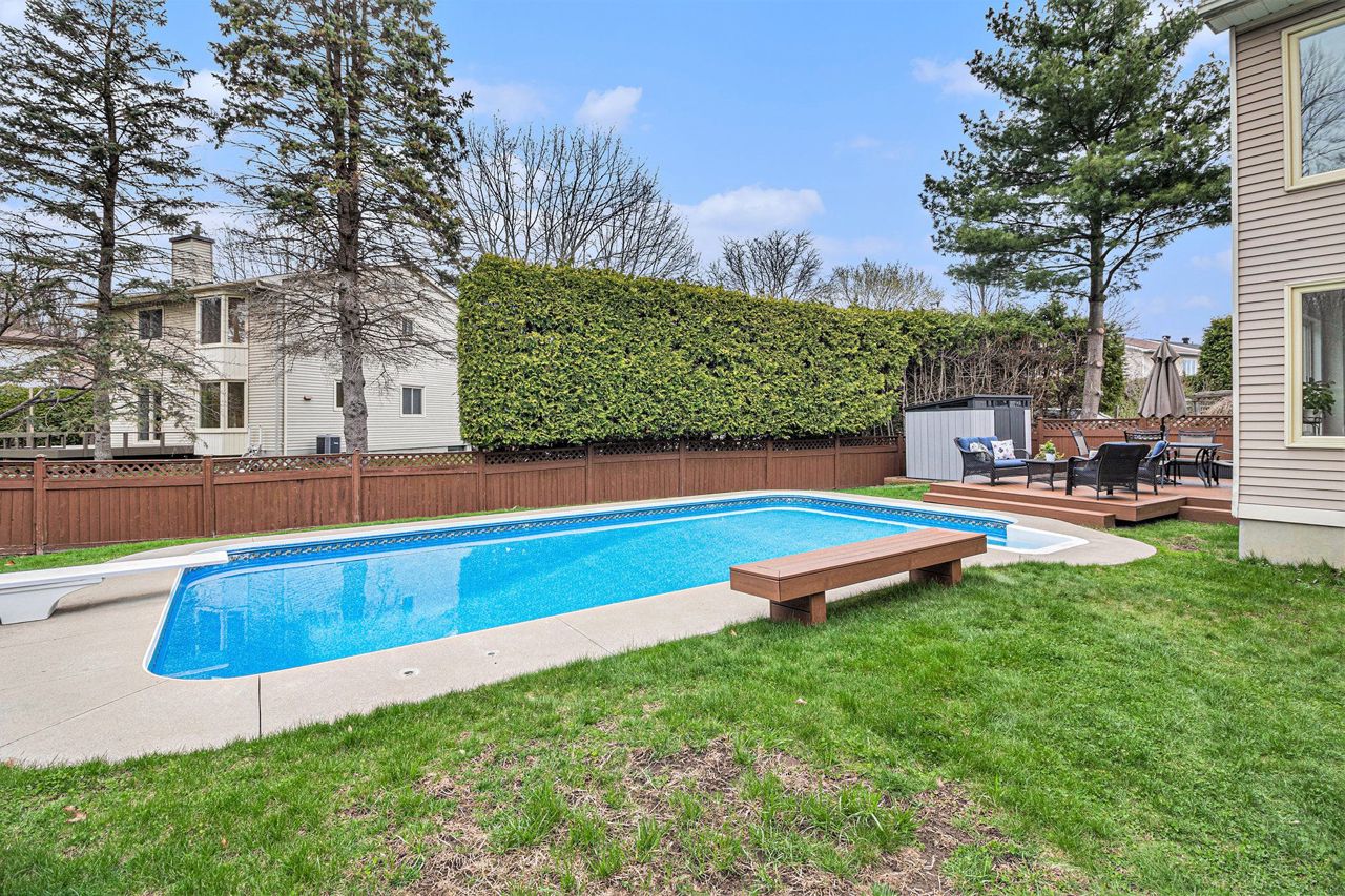 Available 24 August 2025. 18 min from downtown Ottawa in the sougth-after community of Chapel Hill on a very quiet street, close to Greenbelt NCC trail, many parks and schools. 4 bed/3 bath, inground pool settled in a very private, fenced and pie shaped backyard, with a 400 sq ft composite deck. Approximately 2,600 sq ft of living space + basement. Central VAC. Security System. Programmable thermostat. Main floor has hardwood and tile, with conveniently located laundry/mud room. Oversize family room has a cozy fireplace. Kitchen has SS appliances, double sink, wall to wall cabinets. Circular staircase brings you to 2nd floor with an extra large master bedroom, with a spatious ensuite (standing shower glass and Jacuzzi bathtub) and walk-in closet. 3 secondary large bedrooms and a family bathroom complete the 2nd floor with lots of natural light. Living and Dining rooms have Crown Moulding. Rolling blinds in all bedrooms, living and dining rooms. Basement offers open space and plenty of room for games and storage. Backyard has heated Inground Pool and a Storage Shed. Interactive floor plan available on the multimedia link. No smoking of anything. Landlords strongly prefer no pets. Required for offer: complete, current and signed "confirmation of Employment " document stating salary and length of employment, recent and complete "very good" credit report, very good credit score (Min 725 for Equifax), two most recent pay stubs, ID (drivers' licence) and Rental Application Form which must include the names of employers, salary, names of supervisors with phone #. References should be professional or personal, not family, not current owners. All references will be contacted and must be reachable.