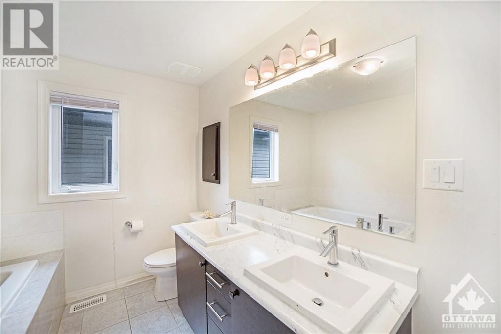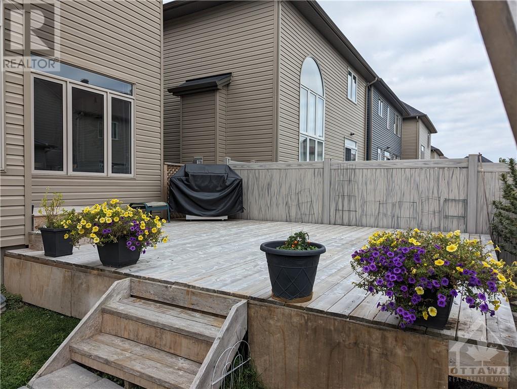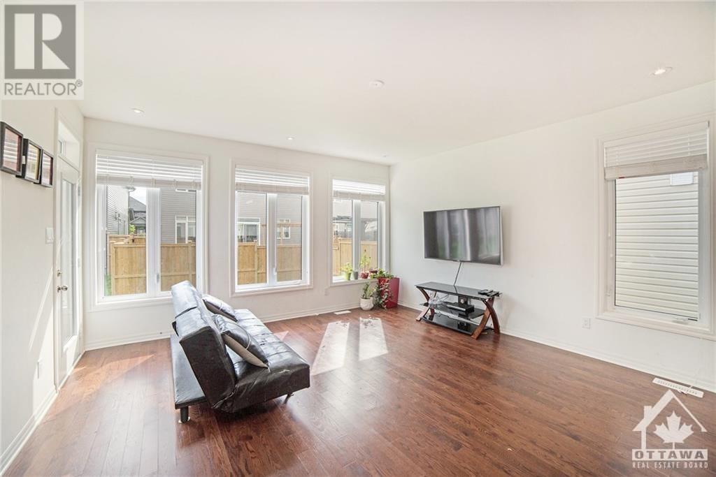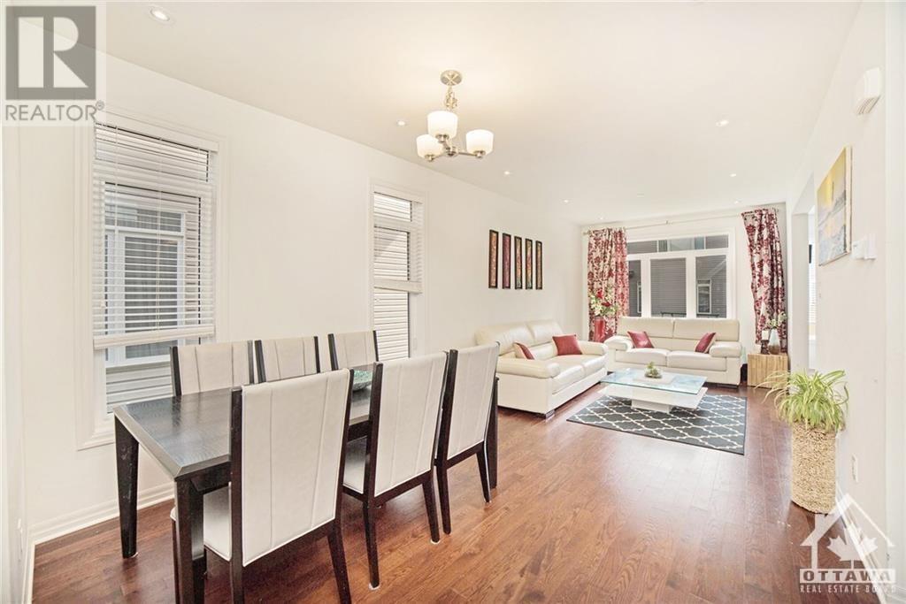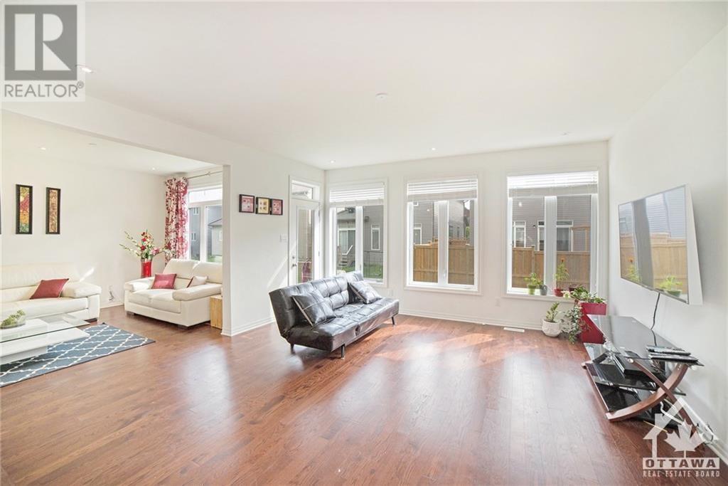 Welcome home to this nearly new 4 bed, 3bath single family home in one of Ottawa's most desirable communities. The main floor of this open concept homes boast beautiful hardwood floors, 9 ft ceiling, tons of windows, pot lights, open concept kitchen with huge island, stainless steel appliances, granite counters, tons of cabinets. Separate living/dining room. The 2nd level of this homes features 4 large bedrooms including a huge master bedroom with massive walk in closet, ensuite bath with double vanity, stand alone tub and stand up shower. The finished lower level offers a lovely gas fireplace and is a perfect retreat for the kids! Tons of storage. The backyard is fenced and has a large deck perfect for entertaining. Don't miss this opportunity! Close to schools, shopping, public transportation and more. (id:22211)
