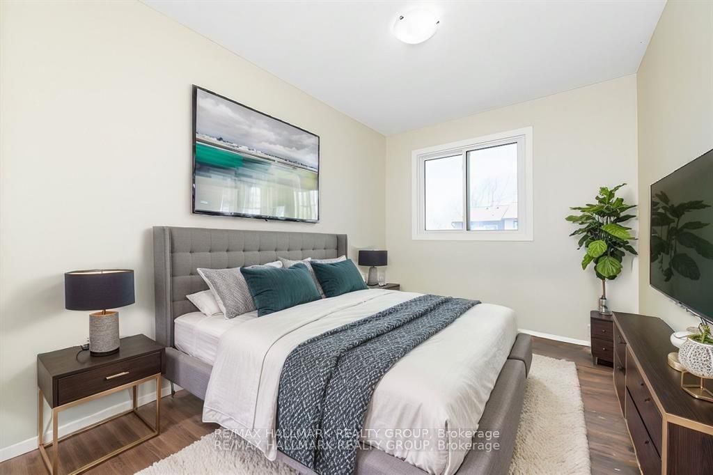 Welcome to this delightful 3-bedroom, 2-bathroom end-unit condo townhome, perfectly situated in a highly desirable neighborhood with convenient access to public transit, schools, and parks. Ideal for first-time homebuyers or savvy investors, this affordable home offers fantastic value. Upon entering, You'll be greeted by an open-concept dining area, creating a spacious and inviting atmosphere. The kitchen boasts a functional layout that seamlessly connects to the dining space, making it perfect for both everyday living and entertaining. The bright and airy living room provides easy access to your fully fenced backyard, offering a private outdoor retreat ideal for relaxation or outdoor play. The second level features three generously sized bedrooms, including a master suite with ample closet space. Two additional well-proportioned bedrooms complete the upper floor. The layout of the property has been thoughtfully designed to maximize space and comfort for all. Monthly condo fees cover building insurance, water and sewer, lawn maintenance, parking/road , reserve fund contributions, and exterior unit maintenance providing peace of mind and ease of living. This condo townhome offers a wonderful opportunity for affordable homeownership in a family-friendly, well-connected location. Freshly painted , Updated full bathroom, new flooring in the kitchen. Mudroom custom cabinets freshly built in November 2024. Kitchen Blinds, Dishwasher installation and Refrigerator (2020). Washer(2023)/Dryer(2024),Living room blinds, Pot lights in living room, Custom cabinets in two bedrooms. Newly created standing shower (2022).24-Hour Irrevocable on all offers as per Form 244. Some Photos are Virtually staged.