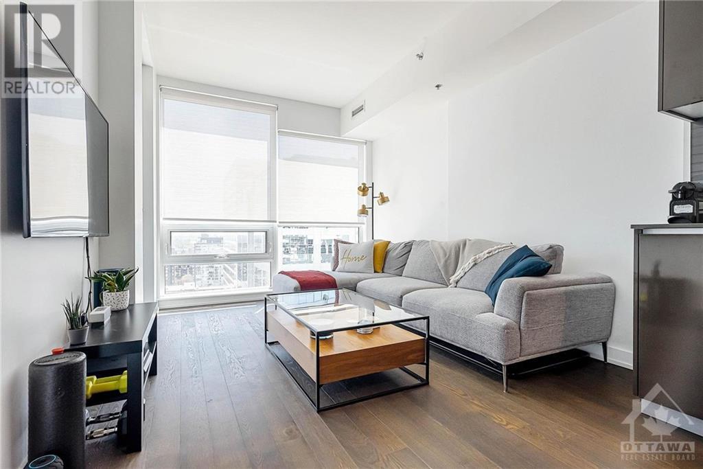 The iconic Slater coming in hot with a 21st-floor stunner. Smack dab in the center of the Financial District, surrounded by retail and restaurant, The Slater perfectly embodies all that this vibrant community has to offer. Live it up and take it all in, this beauty features southwest-facing views of the city, floor-to-ceiling windows, and a private balcony. Two bedrooms, two full baths all laid out with a minimalist, contemporary feel. Open concept with high-end stainless steel appliances, sleek cabinetry, and modern finishes. The Slater also serves up luxury on a silver platter when it comes to the building amenities. Private theatre, party room, billiards, full gym, and outdoor hot tub. In-unit laundry, storage locker, and underground parking are all included. Walking distance to Rideau Centre, Independent, Farm Boy, LCBO, Shoppers, LRT, and Parliament Hill. (id:22211)