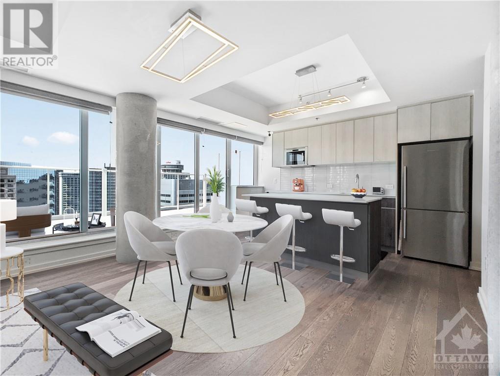 Some photos virtually staged. Spectacular sought-after two-storey Luxury Penthouse in downtown Ottawa. This open-concept penthouse found in "The Slater" is thoughtfully designed with clean lines, high-end stainless steel appliances & granite countertops; including island great for entertaining guests. This space boasts engineered hardwood throughout & floor-to-ceiling windows, creating a bright, luxurious space with a minimalist touch. The primary bedroom ensuite features marble floors, a spacious walk-in shower, double vanity & bidet toilet. With the added touches of custom blinds, separate thermostats on each floor & murphy bed (2022) in 2nd bedroom; this Penthouse brings together style with contemporary functionality & convenience. Natural gas hookup to BBQ on a huge full-width terrace promises a comfortable space fit for unwinding & entertaining outdoors. Amenities: Concierge Service, Exercise Room, Multi-Use Room, Patio, Theatre Room, Whirlpool, Pool table. (id:22211)