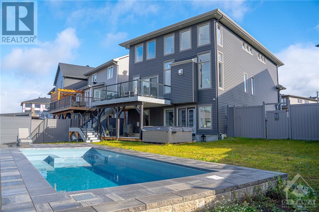 Stunning detached 4 bed, 3.5 bath single-family home with a true double car garage. Impeccable design featuring hardwood and tile flooring throughout. The main level boasts a powder room, a dining area with a stylish divider accent wall overlooking the living space with high ceilings, abundant natural light and cozy gas fireplace. Enjoy the well-appointed kitchen with ample cabinetry, stainless steel appliances, large quartz island plus patio doors leading to the deck. Upstairs, discover a loft, primary bedroom with a walk-in closet and a luxurious 5-piece ensuite, two spacious bedrooms, a full bathroom, and a convenient laundry room. The walk-out basement hosts a potential income-generating in-law suite with one bedroom, a full kitchen, a bath, a dedicated entrance, and a private laundry room. Step into the fully fenced oasis with an inground pool, hot tub and interlocking on a premium size lot —a perfect blend of luxury and functionality. (id:22211)