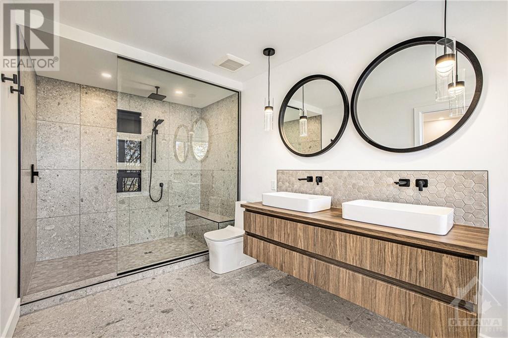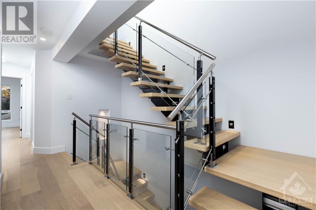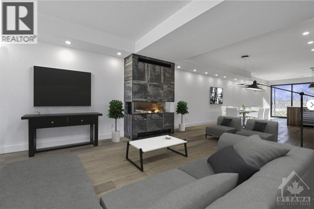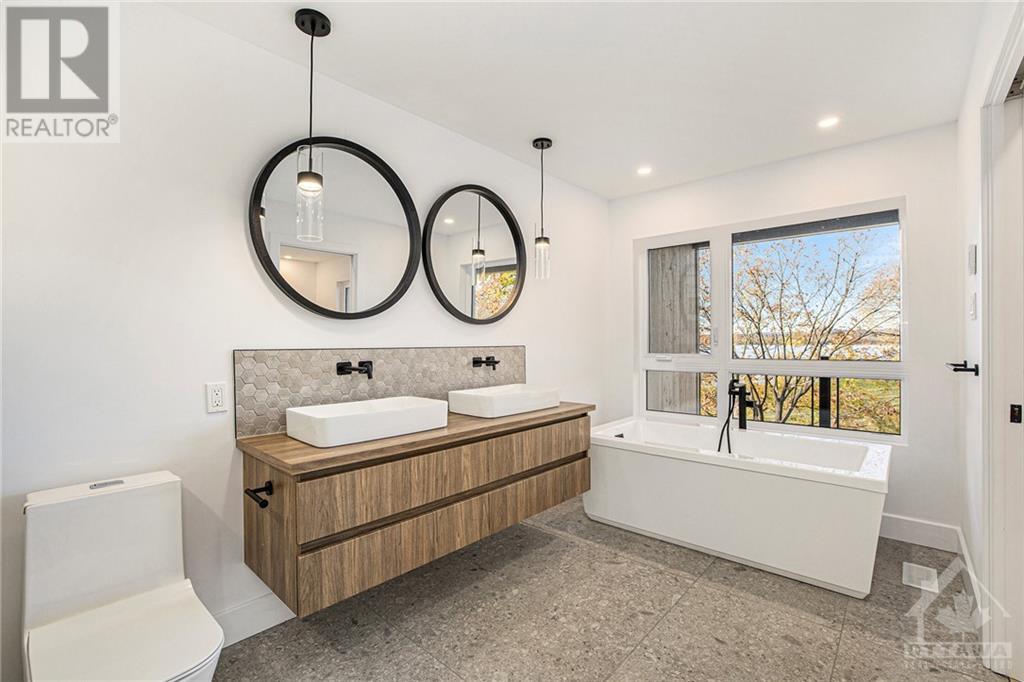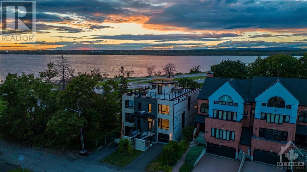 Last one left! Unique High End Semi-detached home with an amazing view of the Ottawa River & NCC parkland! 4 bedroom home with many quality features. (see attached list). Garage with space for a workshop & storage area, leads to a full bath, bedroom & family room with walkout door to the back yard. Spacious Open Concept main level has a living room with a 3 sided gas fireplace, dining room & kitchen with 5'x8' quartz island. Plenty of PVC kitchen cabinets with built-in appliances overlooking the Ottawa River. Eye catching modern staircase goes up to the 2nd floor where we find the primary bedroom, walk-in closet including built-in cabinets, ensuite with a tub, 2 sinks & huge shower all with a River View. Down the hall, 2 bedrooms, full bath & laundry room. Go up a to the spectacular rooftop terrace with a hot tub, fire table & million dollar view of the Ottawa River & Parkway to relax and enjoy life! Large balconies with aluminum flooring & glass railings, fenced lot & paved driveway. (id:22211)