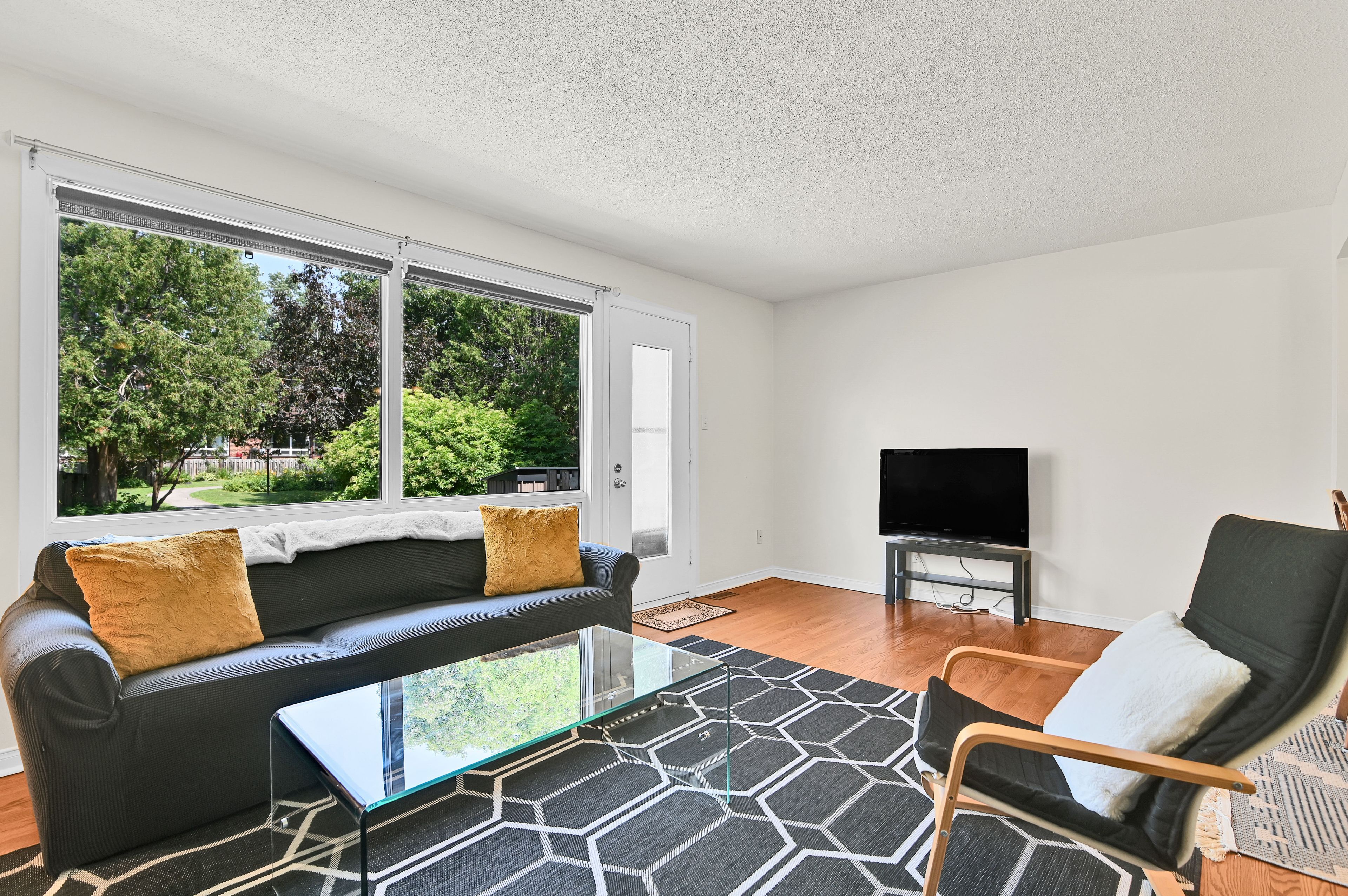 Fantastic entry-level opportunity for first-time home buyers, investors, or parents with students attending Carleton or the University of Ottawa! This spacious and bright garden home is ideally located near the Airport Parkway with easy access to transit, including express routes to both campuses. The main floor features an open-concept living/dining area with beautiful hardwood floors, an fully updated kitchen with SS appliances, Quartz countertops and new flooring, and a convenient powder room. Upstairs offers three generous bedrooms and an updated family bathroom. The finished basement includes a new full bathroom, laundry area, and two versatile rooms perfect for additional bedrooms, a study space, or home office. Private patio backs onto a quiet courtyard. Close to shopping, schools, parks, and all amenities!