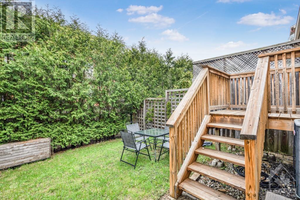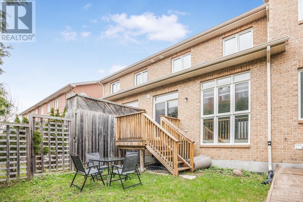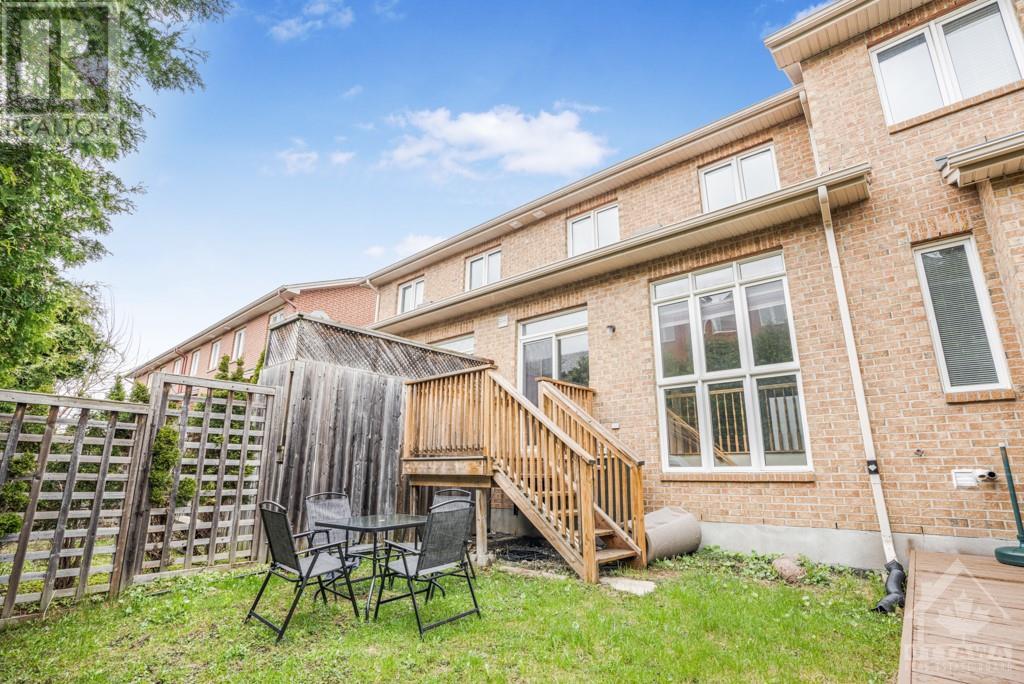 Move-in ready 3 bed 3 bath townhome in sought after neighborhood, walking distance to CHEO & the General Hospital. Rare Double Wide Driveway takes you into the tiled foyer which is steps away from the main floor powder room. Hardwood floors throughout the living room (with gas fireplace) & dinning room leads you to the kitchen, complete with tiled floors & ample counter & cupboard space. Move over to the Eating area overlooking the private backyard with newer deck which is perfect for those summer evenings. Second Level Offers 3 spacious bedrooms including huge master with cathedral ceiling, 4 piece ensuite (including soaker tub), & walk-in closet. Also On second is convenient full bath. Lower level is flooded with natural light, & offers Family room, laundry, & tons of storage. Perfect to call home, or to add to your investment portfolio desired by medical students. Assoc Fee ($88) covers road maintenance, snow removal & grass cutting in common areas. Go and Show (id:22211)