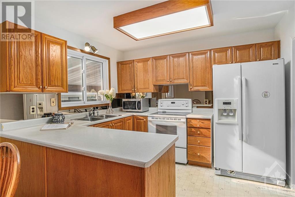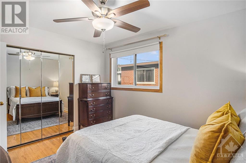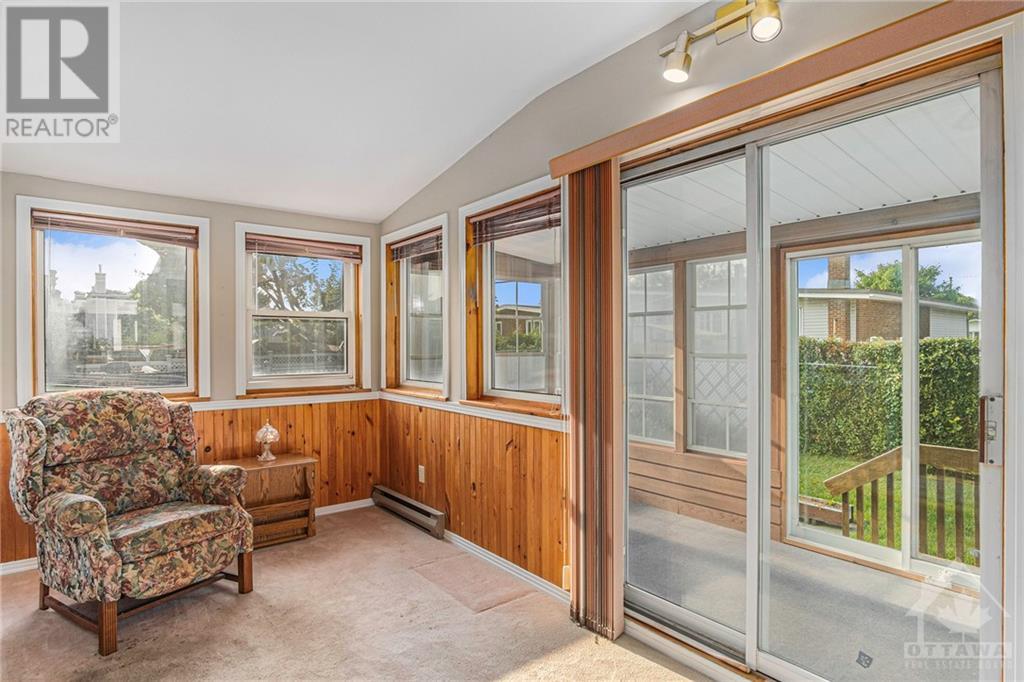 Situated along a quiet tree-lined curve in the family friendly community of Brookfield Gardens, you will find a charming mid-century bungalow. Past a timeless brick exterior & landscaped flower beds, enter to discover a thoughtful floor plan, abundant in natural light. A well appointed kitchen welcomes you with a neutral colour palette & oak wood details. Move effortlessly into the living rm with large picture windows & gas fireplace. Just down the hall you will find 3 nicely sized bedrms & a full bathrm. Step out through glass French doors into a 4-season sunrm. In warmer months, enjoy your morning coffee in an enclosed porch with view of the backyard. Down the stairs you will pass a side door to the laneway & arrive to a large basement with office, bathrm, family rm & plenty of storage. Memories are made on movie or game night with drinks served from the bar. A short drive to Mooney’s Bay, schools, parks & Bank St, it’s no wonder this neighbourhood is cherished by so many. (id:22211)