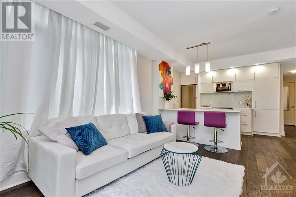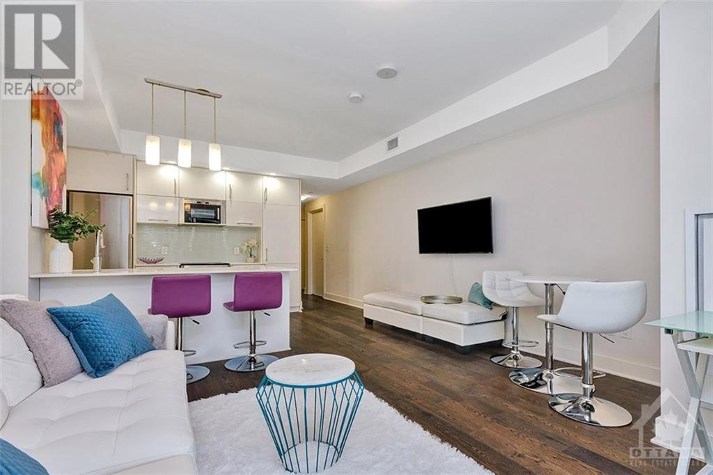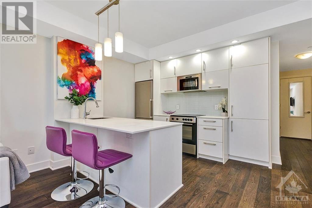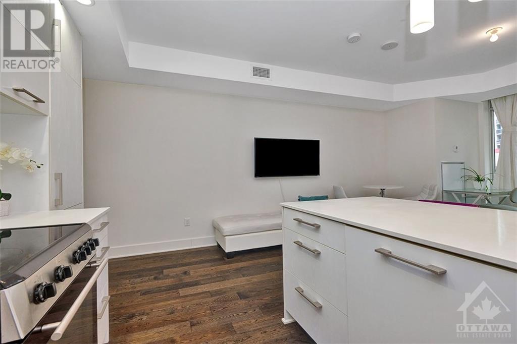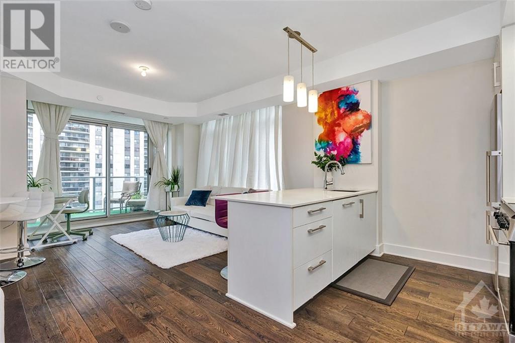 This beautiful, bright and functional one bedroom condo includes parking and in suite laundry! The location in Centretown is excellent. It's situated in a quiet neighbourhood that is just a few steps from Transit, Parliament, Shopping and Restaurants. The quality of a Richcraft build is evident throughout. The large windows in this corner unit create a spacious and sunny home. The balcony offers a lovely outdoor space. There is plenty of storage with large closets and a locker is also included. Building amenities are superior and you'll love the 18th floor lounge, meeting room, party room, rooftop terrace, gym, indoor pool and sauna. There are also guest suites available for your guests at a reasonable nightly rate. The Bowery is an excellent, well run condominium that you will be proud to call home. Schedule a showing today! Kitchen measurements included with living/dining. (id:22211)