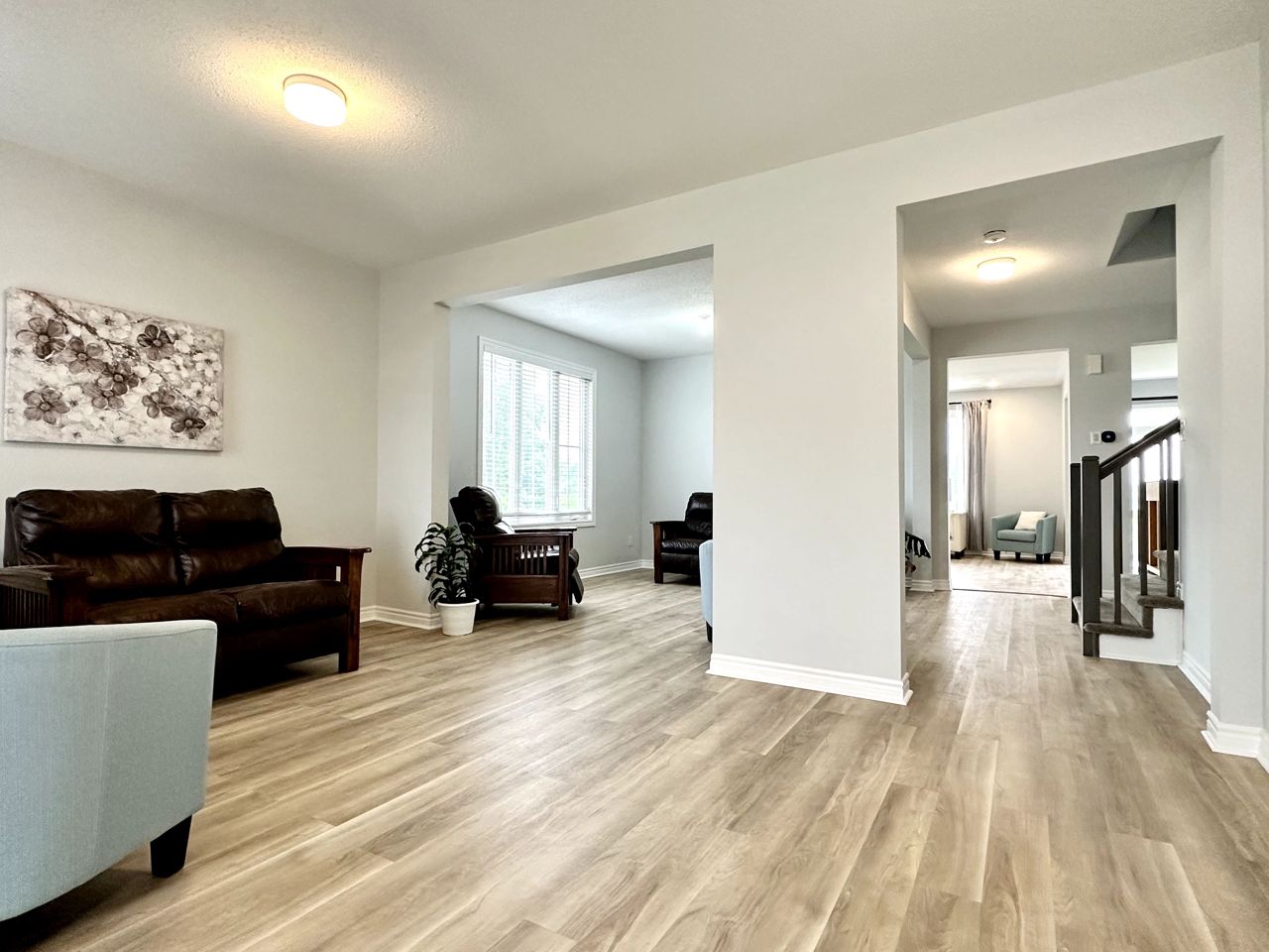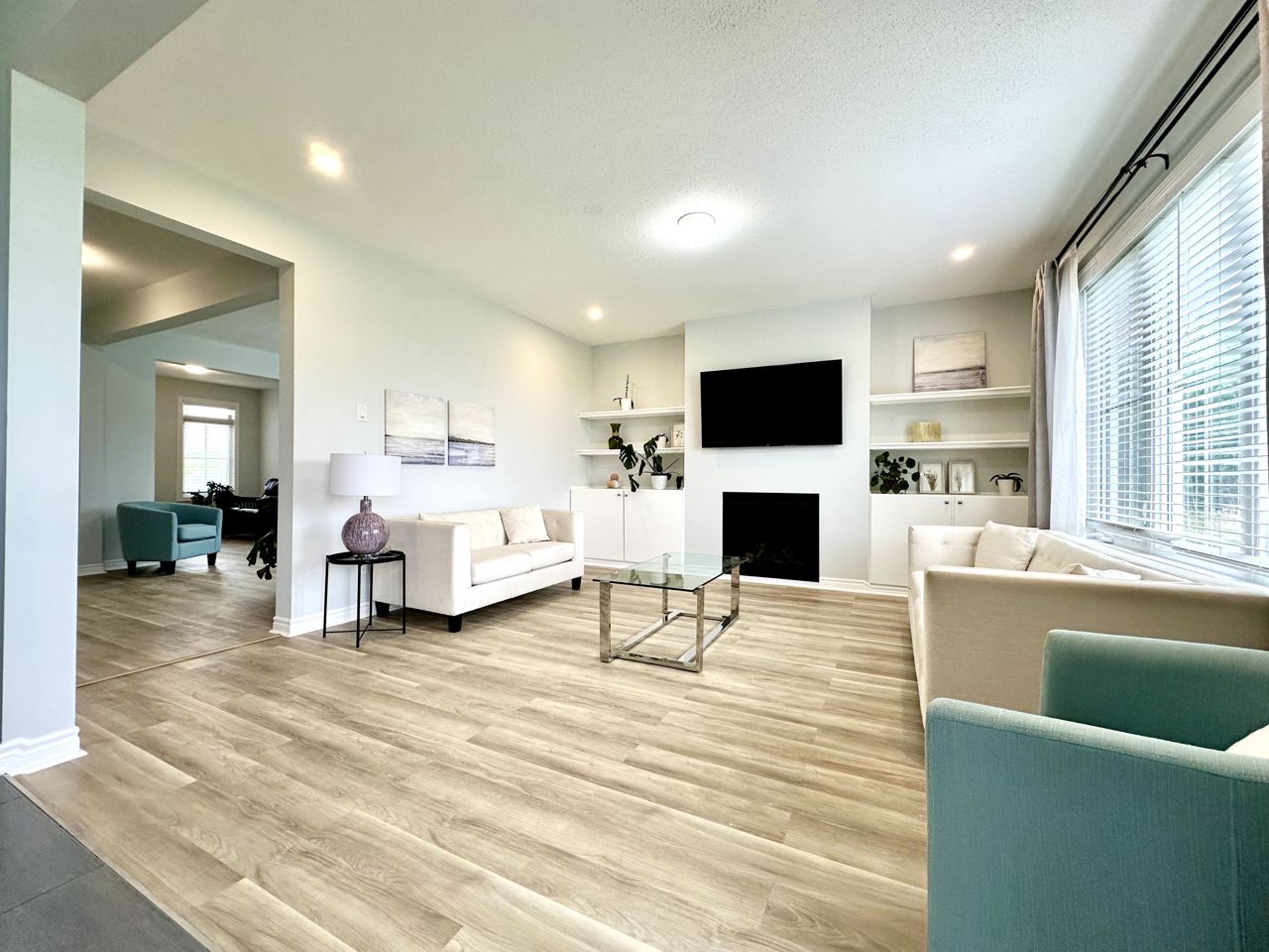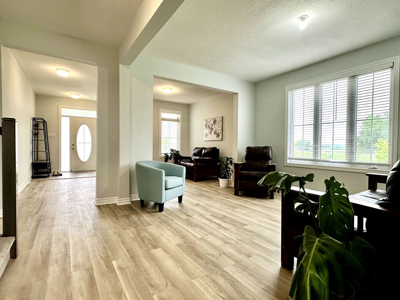 步入室内,明亮的开放式布局令人眼前一亮,餐厅与客厅区域相连,非常适合招待宾客。毗邻的是配备不锈钢电器、宽敞备餐岛及专用早餐区的现代厨房。大型窗户将自然光线引入室内,窗外宁静绿地的美景尽收眼底。