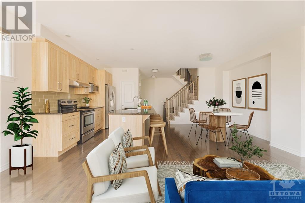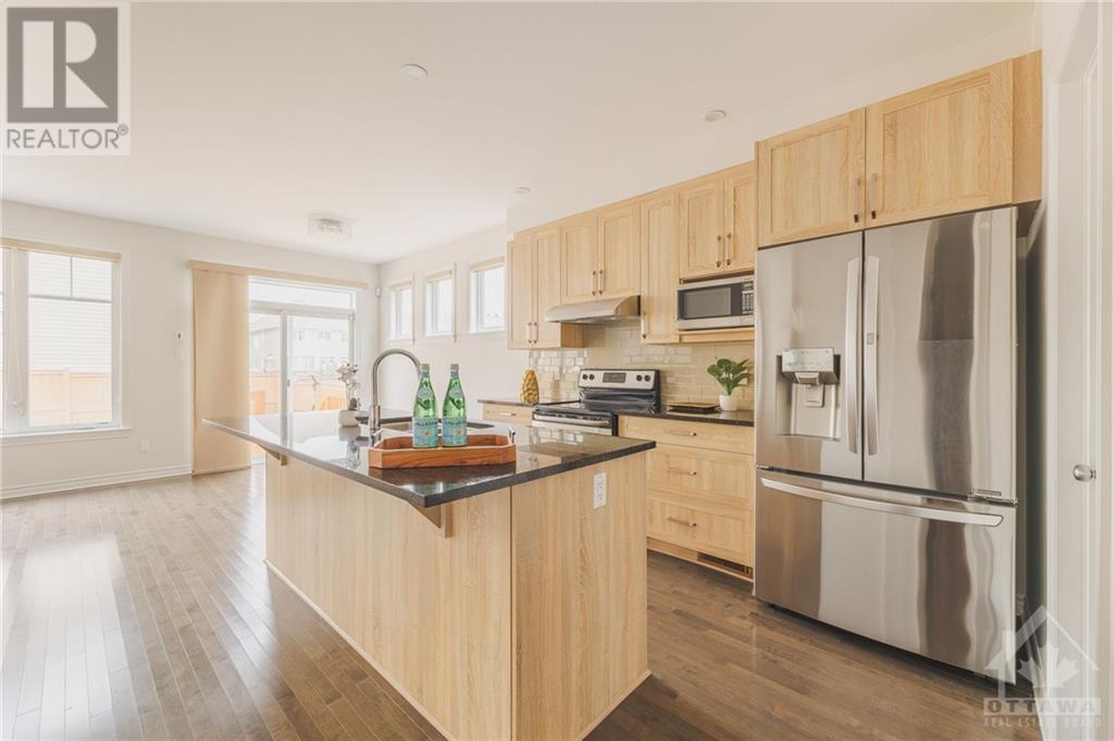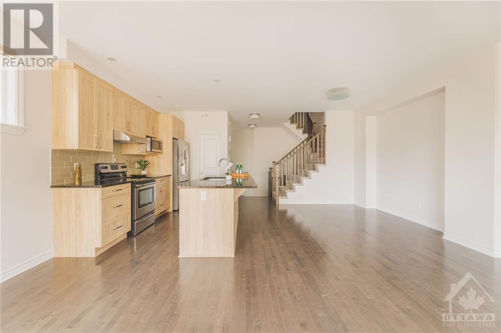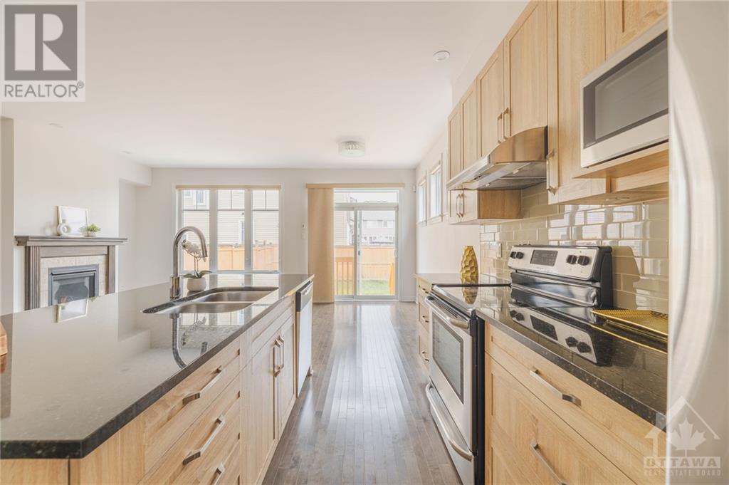 END UNIT True Gem, boasting 3 beds/2.5 baths. Nestled in the fast-growing Findlay Creek area; offers a perfect blend of functionality/modern living. Open concept dining/living room & kitchen ft. hardwood flooring, creating a warm & inviting atmosphere. Modern kitchen complete w/granite countertops, soft-close doors/drawers, stainless steel appliances, pot lights, & walk in pantry. Gas fireplace/Living area is brightened by a wall of windows, allowing natural light to flood the space. 2nd level; a generously sized master bed which ft a walk-in closet, 2 additional closets, ensuite bathroom. Two other bedrooms on this level are spacious/accommodating. 2nd level laundry room. Lower level, finished basement, for Rec/additional living space. Storage room w/ample space. Oversized Garage/Landscaped/Fenced yard offers privacy. Enjoy easy access to a plethora of amenities, ensuring that everyday conveniences are just moments away. Experience, the comfort/convenience this property has to offer. (id:22211)