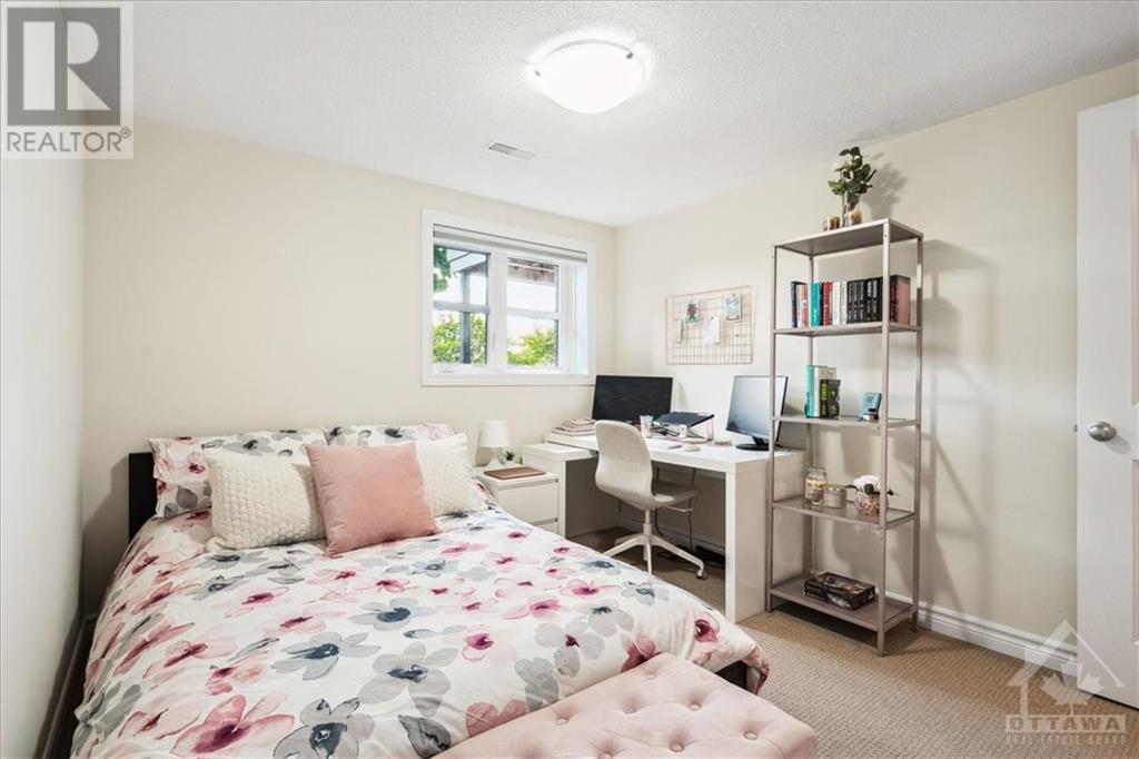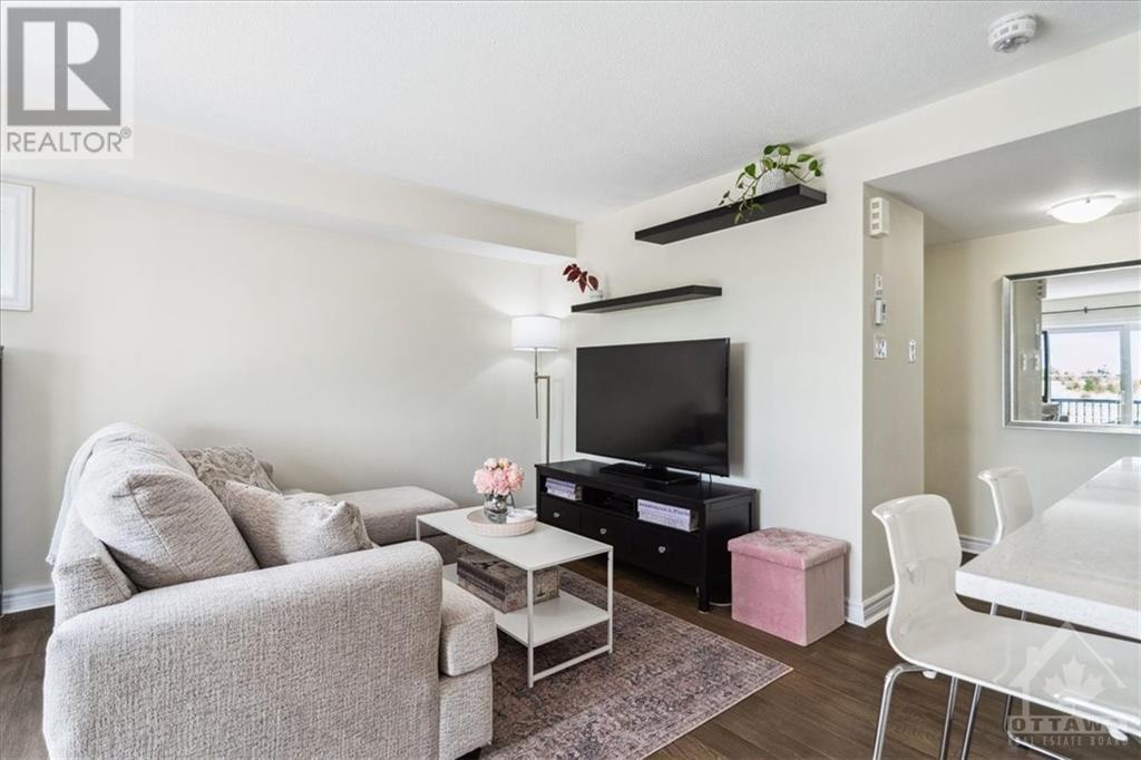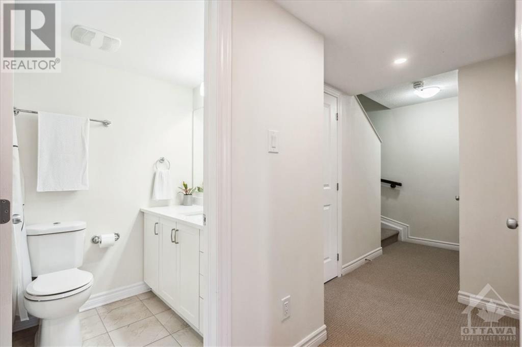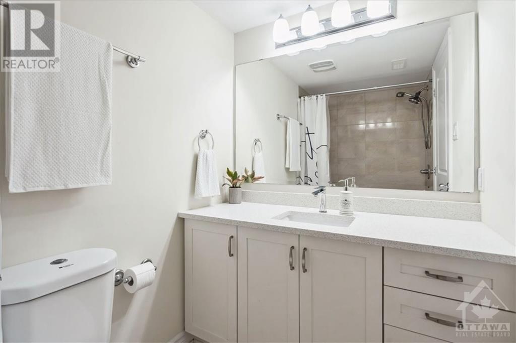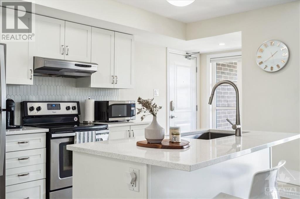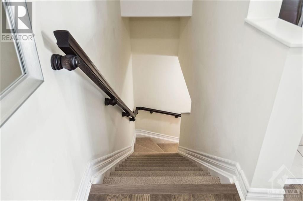 Discover modern living in this stylish 2-bedroom stacked townhouse nestled in Barrhaven, steps away from public transit. Step into an open-concept main floor featuring an upgraded kitchen (2021) w/ceramic tile floor, breakfast bar island, quartz countertops, & a pantry for added convenience. Enhanced by upgraded engineered hardwood flooring, the living/dining room opens up to a large private balcony through patio doors. The lower level, with two well-sized bedrooms boasts quality carpeting, large windows with custom blinds & generous closet space. The stylish main bathroom (upgraded in 2021) offers a soaker tub, quartz countertops & ceramic tile flooring. Laundry needs are easily met with the included laundry closet while an ample storage room provides space for your belongings. This property stands out with its modern upgrades & features, providing an appealing & comfortable living space in the heart of Barrhaven. Don't miss this one! (id:22211)