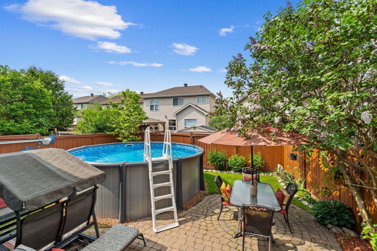 Welcome to this exceptional 4-bedroom, 4-bathroom family home in the heart of Longfields, Barrhaven. Spacious foyer with soaring 17ft ceilings and a multi-level floor-plan with abundant living space. Large windows, 9ft ceilings and an open-concept floor plan provide a feeling of spaciousness. The main floor features a formal living room with cozy gas fireplace, a formal dining room, a kitchen with a family eating area and powder room. The updated kitchen has granite countertops, all stainless steel appliances and a convenient walk-in pantry. On the intermediate level, you'll find a large family room with vaulted ceilings, a wall of windows and a glass door leading to the spectacular covered front deck. The upper level boasts a sizable primary suite with walk-in closet, spa-like 4-piece ensuite with a granite vanity and a soaker tub. Two more bedrooms with another 4-piece bathroom with a granite vanity and a linen closet round out this floor. The lower level offers 9ft ceilings with a rec room perfect for a home gym or work-from-home space, a 4th bedroom, another 4-piece bathroom and laundry area along with ample storage and workshop space. Fully fenced backyard with an interlock patio, newer heated above-ground pool [2019] with a newer heater [2021] for family fun and cooling off on hot summer days. Attached 2-car garage with inside entry and a handy storage area for pool equipment under the front porch. Updated kitchen, bathrooms, flooring, roof shingles [2014], washer and dryer less than 5 years old, central vacuum with central sweep in the kitchen, fireplace glass [2024] and brand new furnace, with humidifier, and air conditioner [2025]. And what a location! Public, Catholic and French elementary and high schools all within walking distance. Shopping, parks and trails close by too. Updated, turn key and an ideal family location. 48 hour irrevocable on all offers. Come make 275 Berrigan Drive your new address!