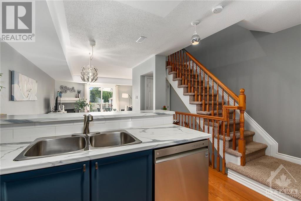Absolutely adorable & affordable condo in a very central location with TWO parking spots. Inside this sought after UPPER unit you will find it very bright, clean, spacious and updated. The kitchen is modern with fresh counters, backsplash, stainless appliances, breakfast bar and ample cupboard/counter spaces. The living room is spacious with a cozy gas fireplace & over looks the balcony area. Main floor also features a dining space, powder room & office that could easily be 3rd bedroom with added closet/wardrobe. The top floor features 2 very spacious and sun filled bedrooms, a main bathroom, laundry room with storage space & 2nd storage closet. Great location, walk to main transit routes, close to Algonquin, Carleton U, highway access, grocery stores, restaurants, parks, schools, hospital and much more! (freshly painted, kitchen updated 2022) Condo fees: $505.24, includes water, building insurance, lawn & building (exterior) maintenance, snow removal. (id:22211)