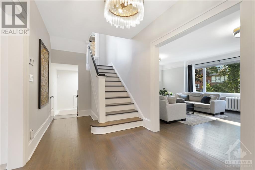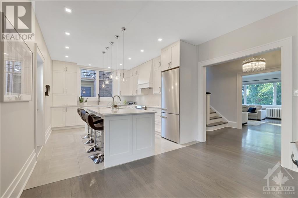 Amazing Glebe locale, beautifully designed and renovated home on Clemow Avenue! Immaculate, perfect blend of modern style yet maintaining the elegance and character of the build. Top craftsmanship & finishes throughout. Wonderful flow. Defined space with an open airy feel, perfect for both entertaining and everyday family living. Sun flooded gourmet kitchen with oversized island, great for the casual dining/mingling we have all come to love, open to dining room/sun room. Spacious living room, main floor powder room. Second floor is comprised of the primary bedroom with dressing room and spa-like ensuite (steam shower), 2 bedrooms, sunroom and full bath. Third floor offers wonderful at-home office, full bath and bedroom. Lower level has a family room, perfect for the kids/guests, full bath and a fabulous laundry room. 4+beds/5 baths. Complete list of upgrades attached. South facing backyard. Great schools, shops, amenities. Double garage. No conveyance of offers prior to Sept 21 @4pm (id:22211)