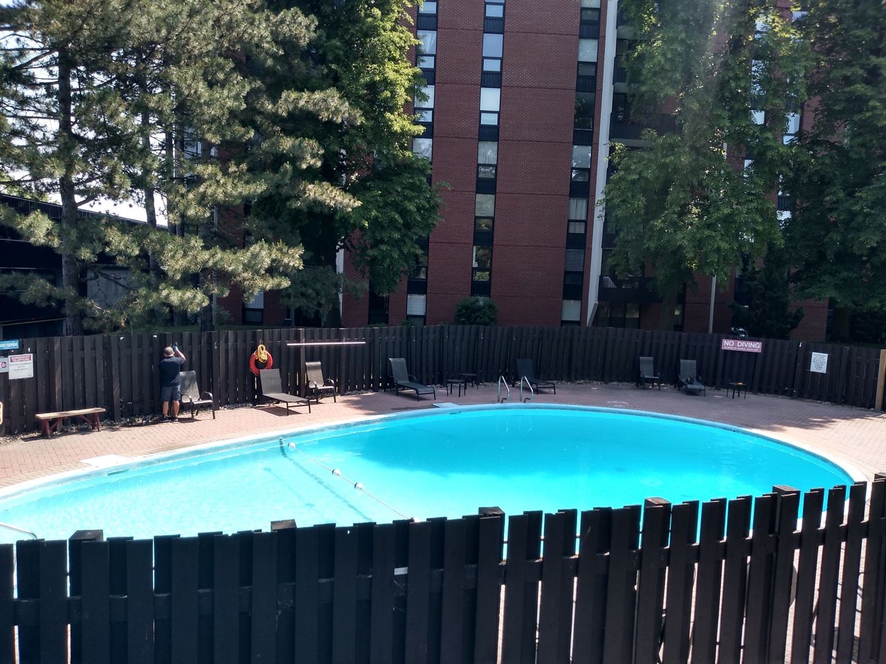 The Denbury, luxury condo building located across the road from Mooney’s Bay Beach. This is a large 1bed apartment, approx 750sqft, central air conditioning&heating. Large entrance closet, spacious L-shaped living and dining rooms, eat-in kitchen, extra large bedroom with wall to wall closet, very spacious bathroom, storage room, balcony off living room, 1 parking spot, storage room in the basement. Each floor has its own laundry room. The apartment is vacant and the following work has just been completed: sanded hardwood floors throughout, waterproof laminate floor in kitchen and storage room, ceramic floor in bathroom, countertop, sink&faucet in kitchen&bathroom, electrical plates, door handles. Painted throughout including kitchen and bathroom cabinets. Building has outdoor swimming pool, tennis court, exercise, games, bicycle rooms, guest parking, and guest suites rental. Luxury apartment building extremely well maintained located probably in one of the best locations in Ottawa.Condo Fee is $813.84 per month, plus Special Assessment $674.67 per month until December 2023 (roof replacement project and the structural repairs to the garage). Special Assessment will be paid by the Seller in full before closing.